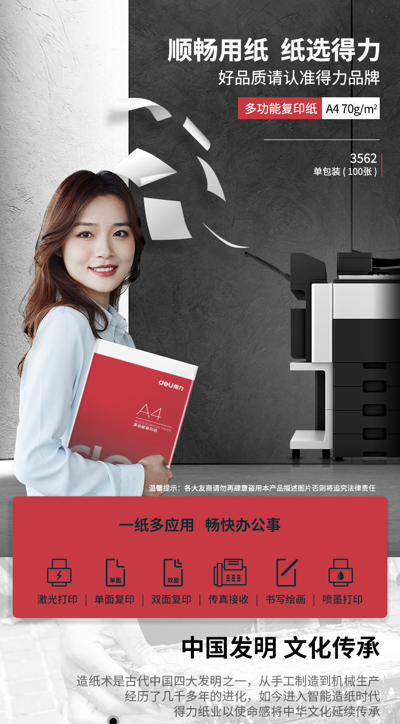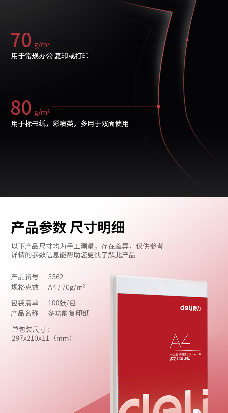 델리 a4 인쇄 종이 저렴한 복사 용지 프린터 a4 종이 백서 70g 단일 팩 100 초안 종이 도매스토어 가기