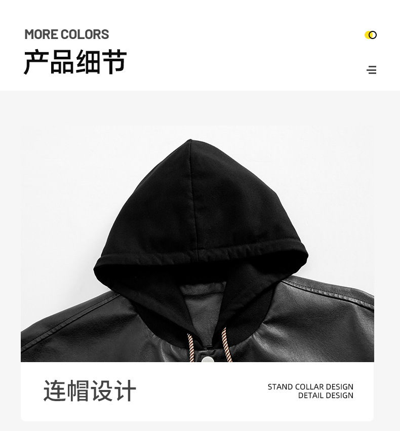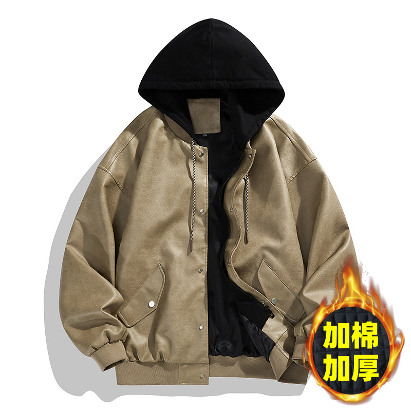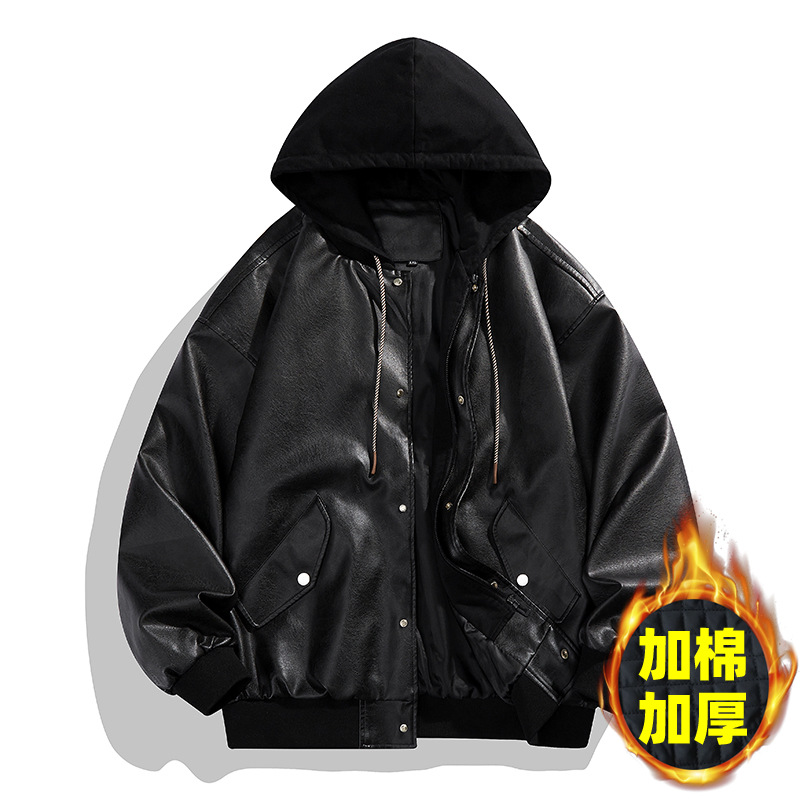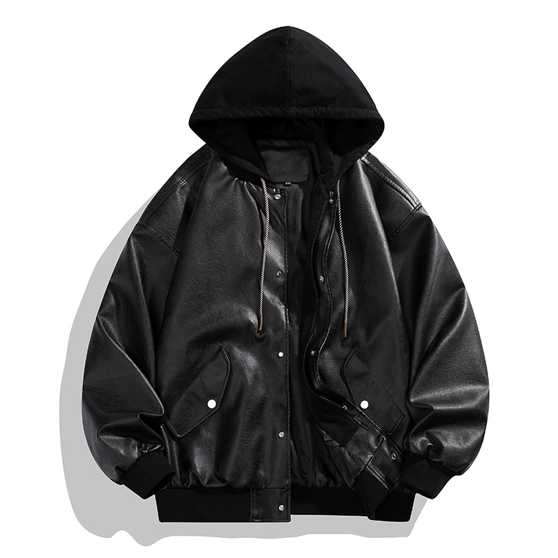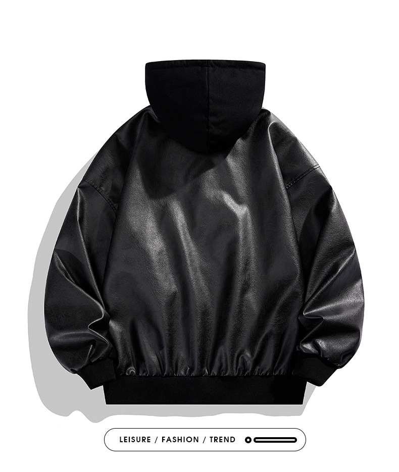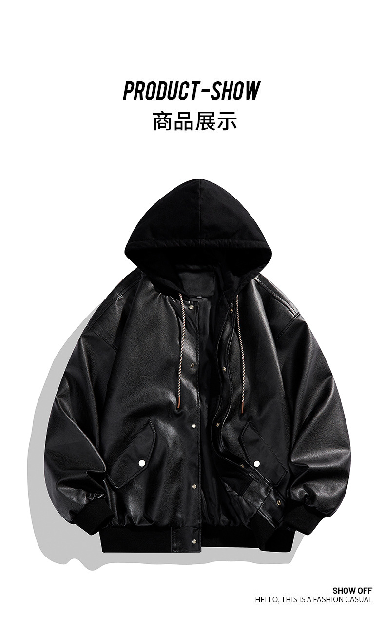 2024 새로운 가짜 투피스 가죽 남성용 패셔너블 한국식 루즈 핸섬 오토바이 가죽 자켓 더피 핸섬 후드 자켓스토어 가기