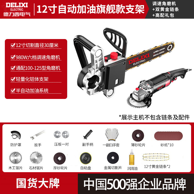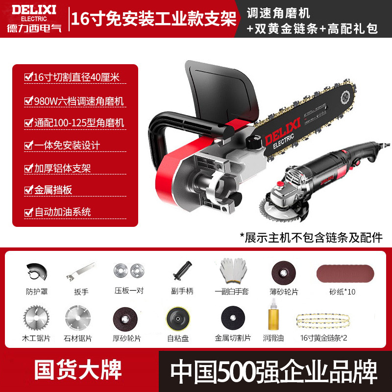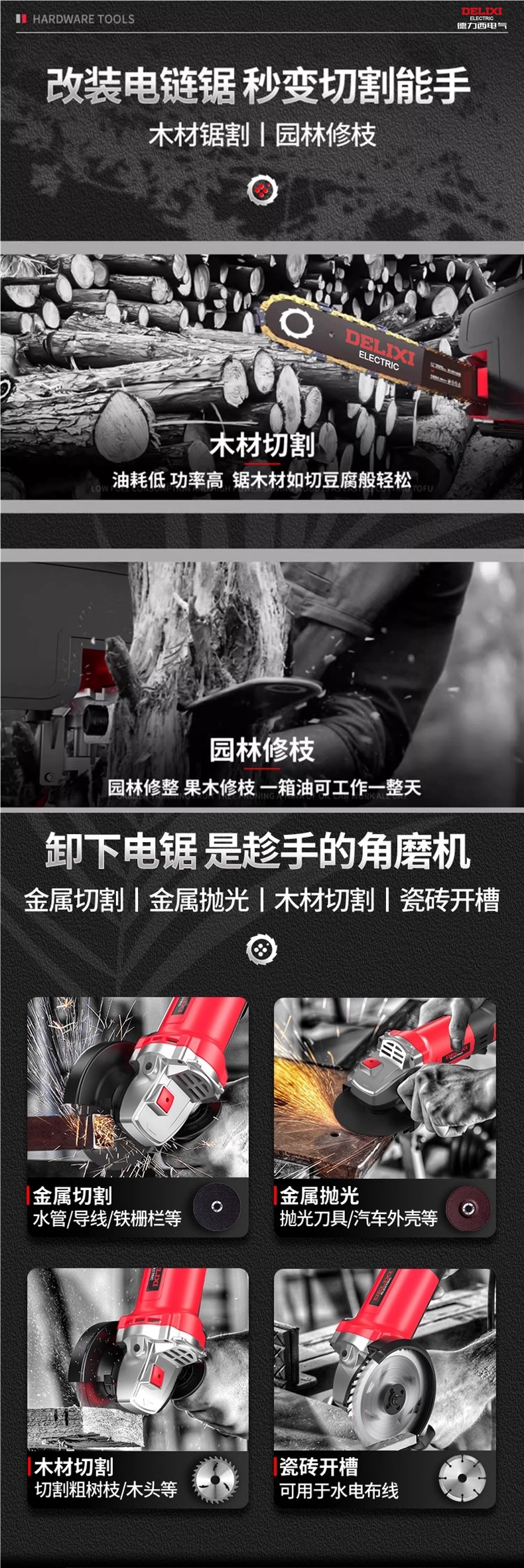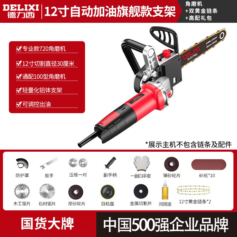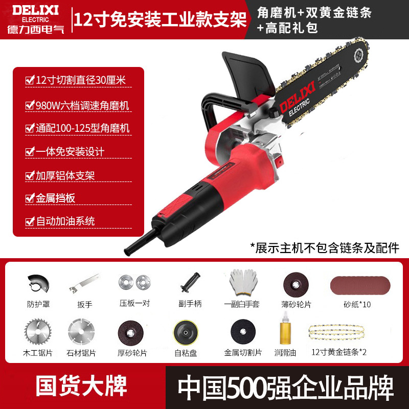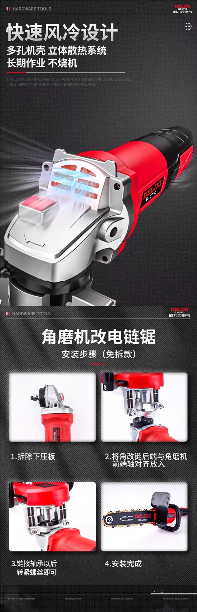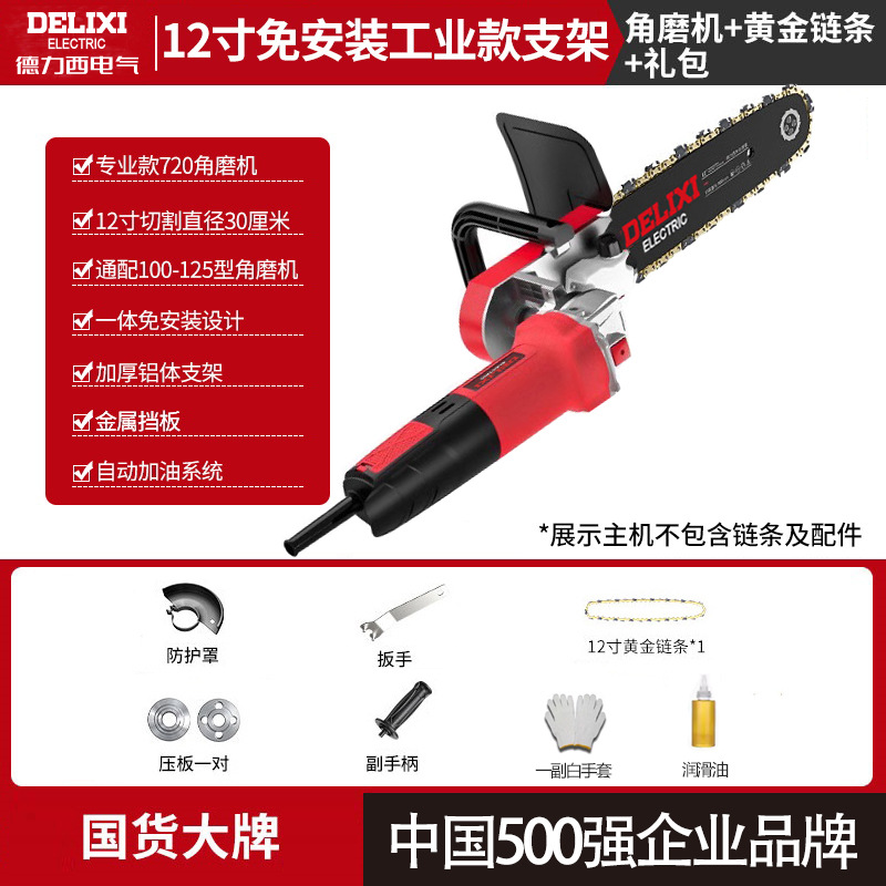Delixi 앵글 그라인더 개조 전기 체인 톱 전기 절단 목재 가구 작은 다기능 핸드 헬드 절단 체인스토어 가기