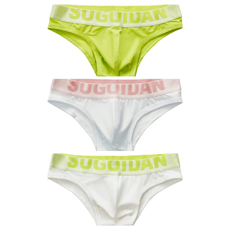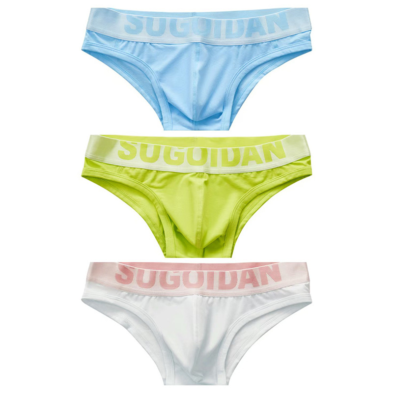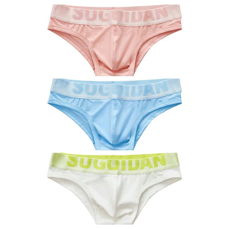3 팩 SUGOIDAN 새로운 퓨어 코튼 남성용 낮은 허리 속옷 섹시 트렌디 남성용 슬림 핏 청소년 브리프