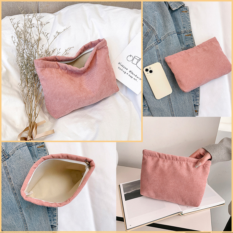 2025 새로운 코듀로이 화장품 가방 여성용 Ins 인기있는 인터넷 인기있는 대용량 립스틱 메이크업 변경 휴대 전화 클러치 백스토어 가기