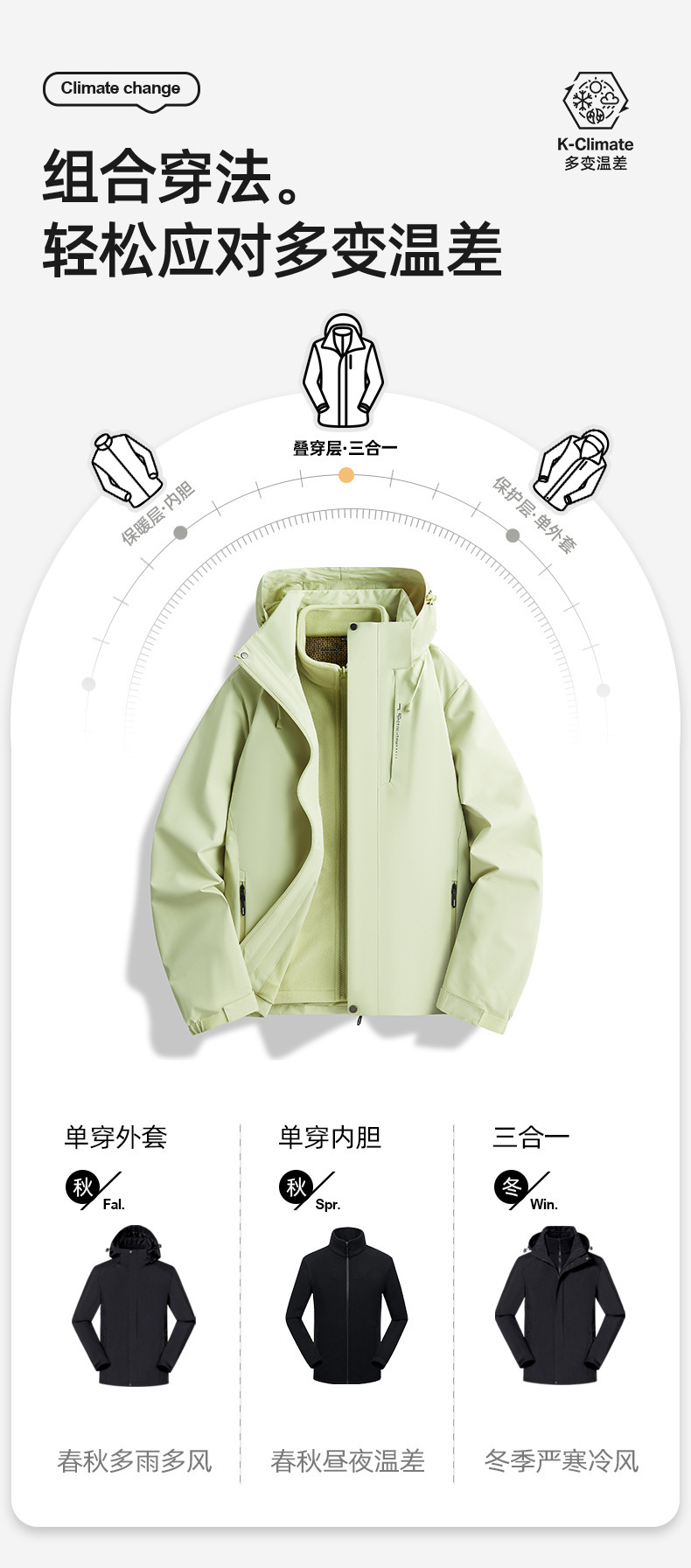충전 의류 여성 남성 재킷 3 대 1 분리 가능한 겨울 방풍 방수 야외 등반 의류 작업복 커플스토어 가기