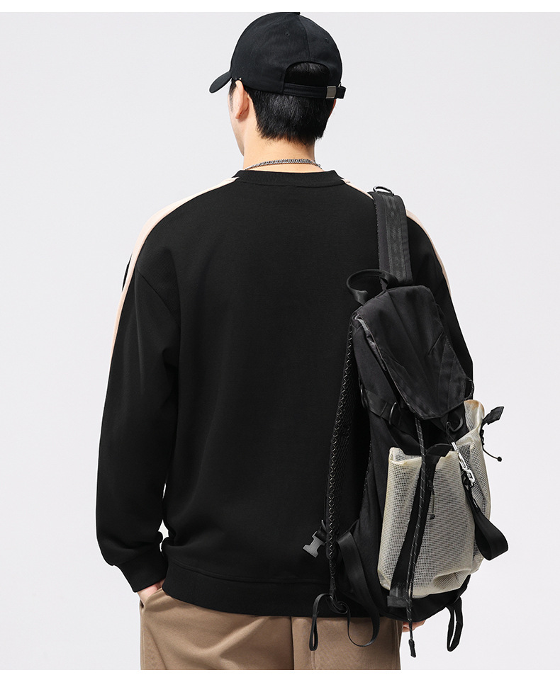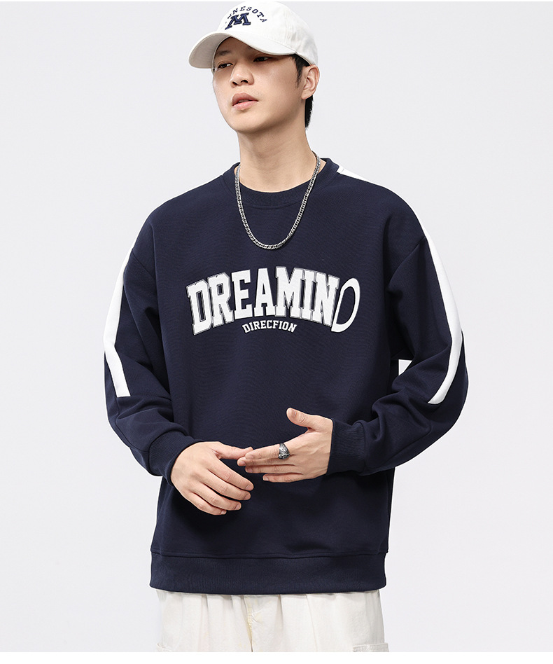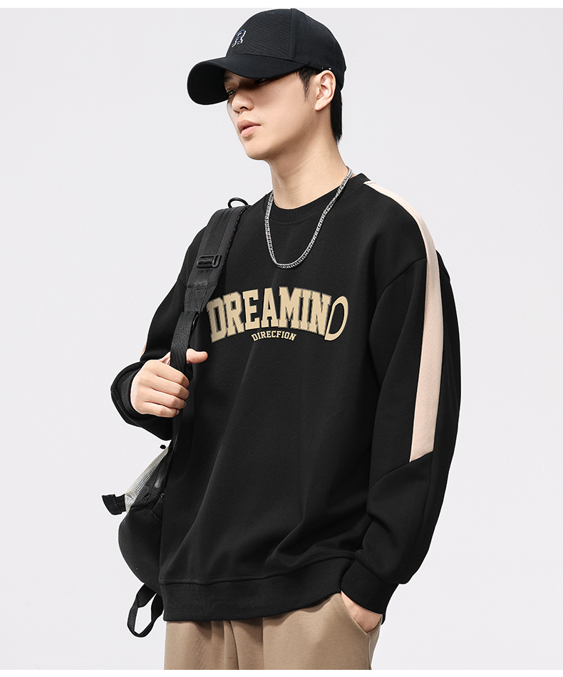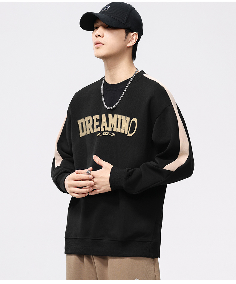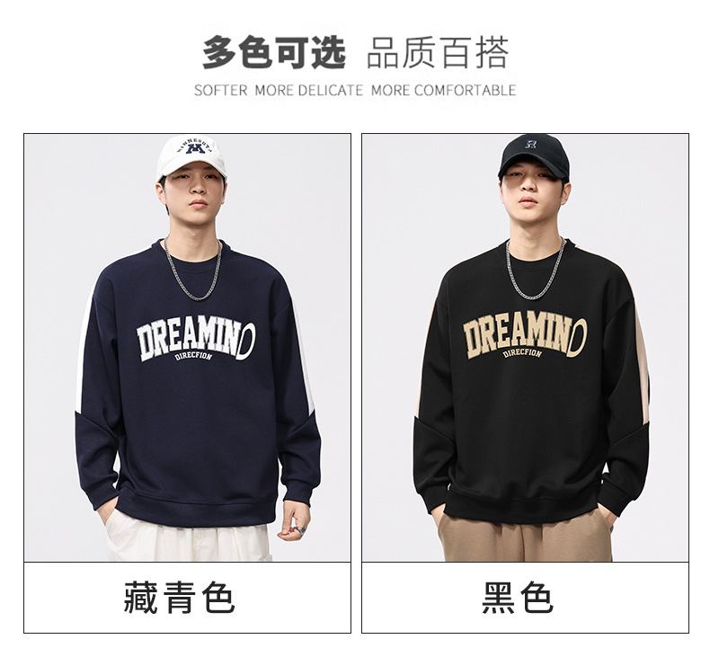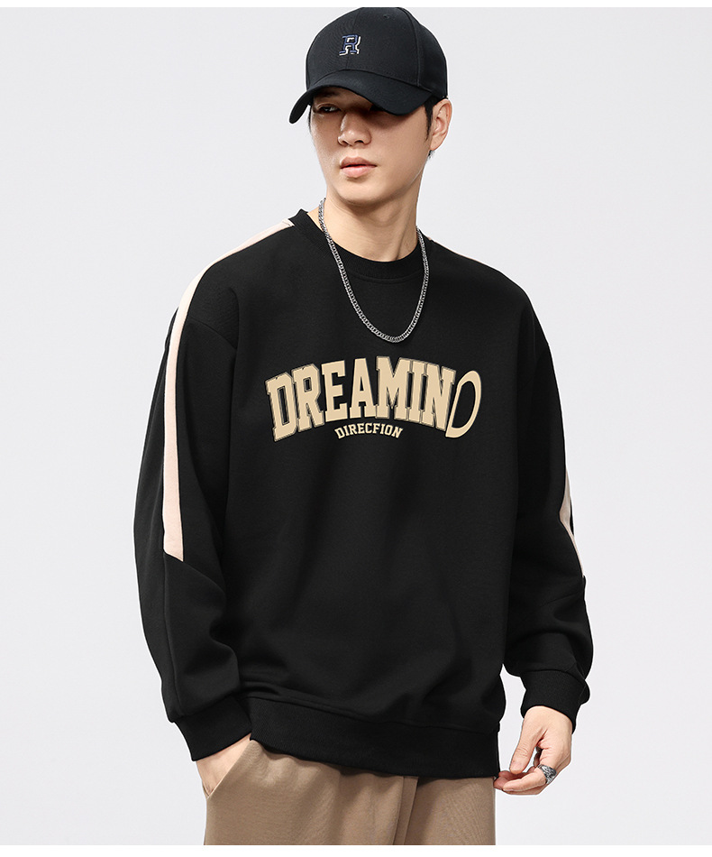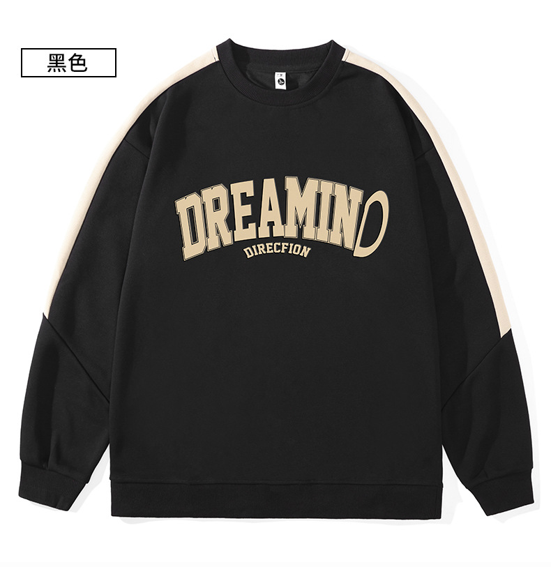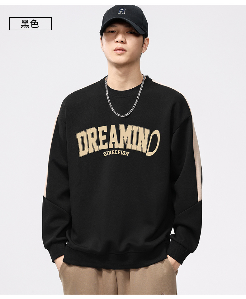 F5702 # 플러스 사이즈 남자 봄 새 330G 무거운 둥근 목 착용 남자 느슨한 조커 컬러 매칭 프린트 재킷스토어 가기