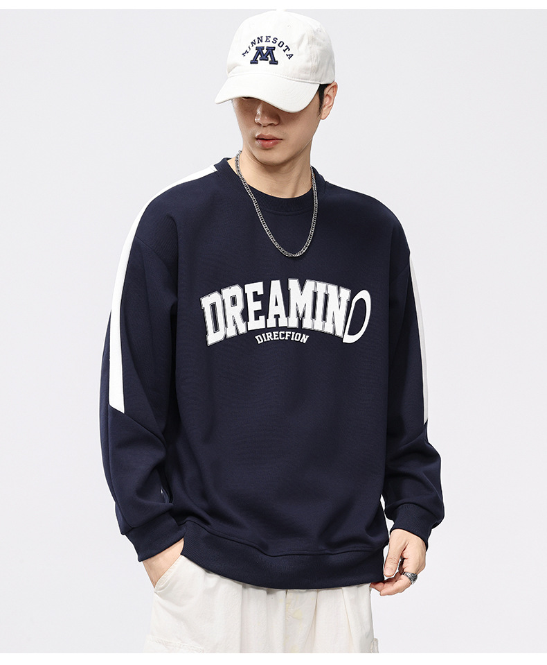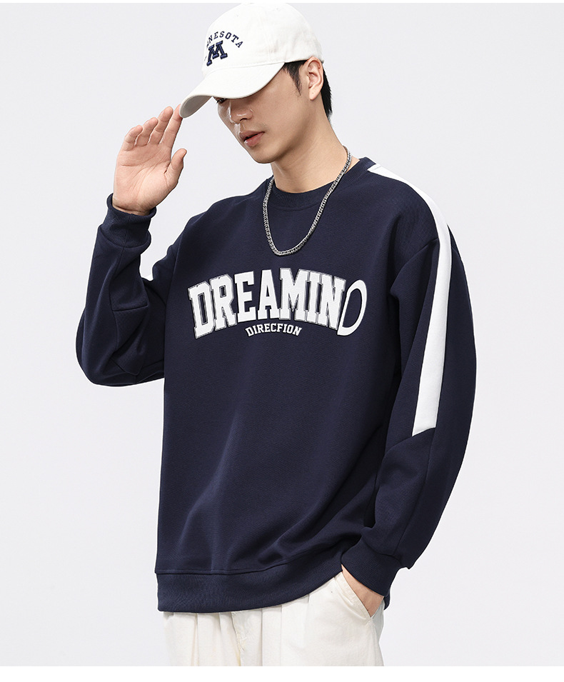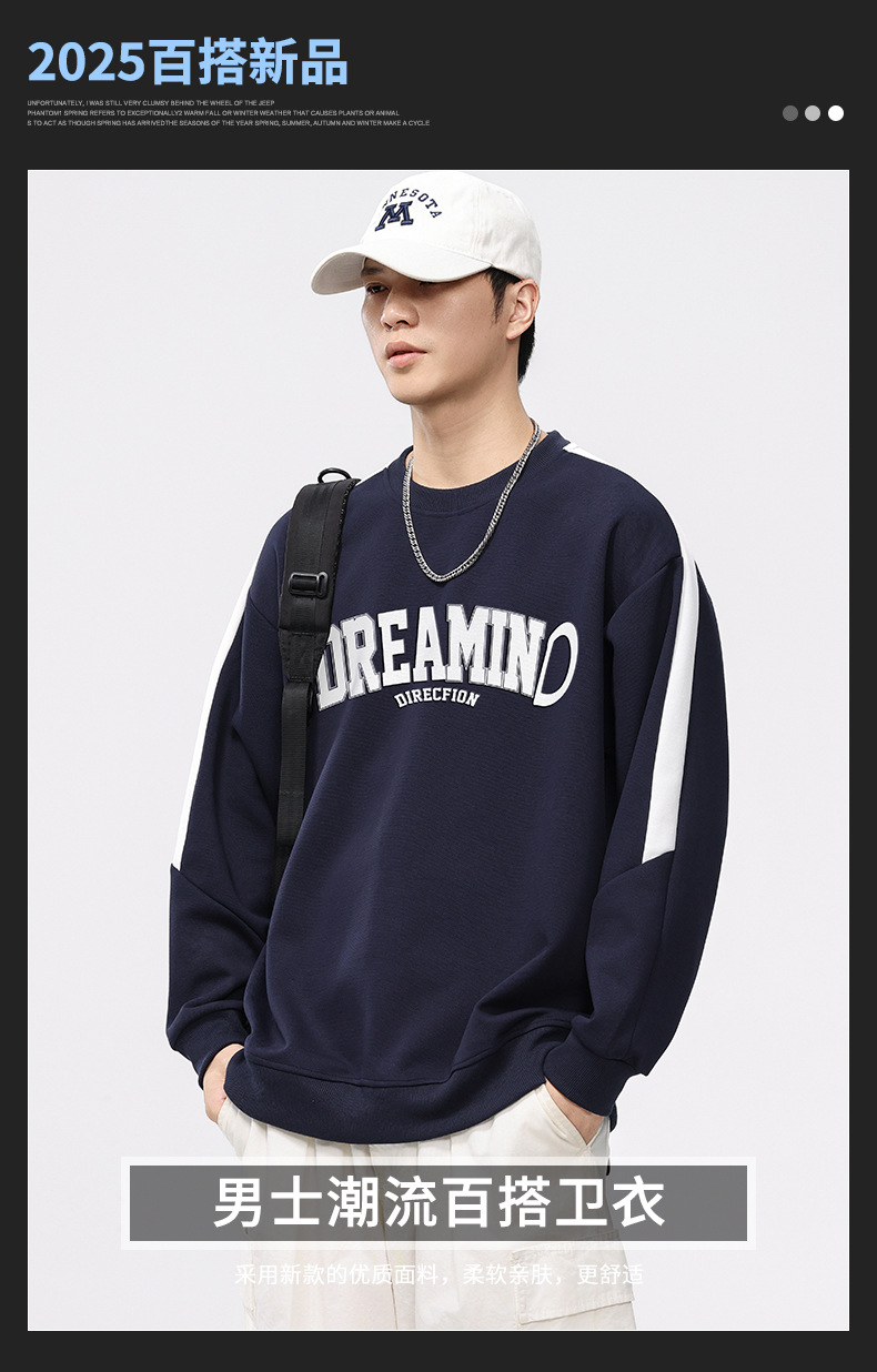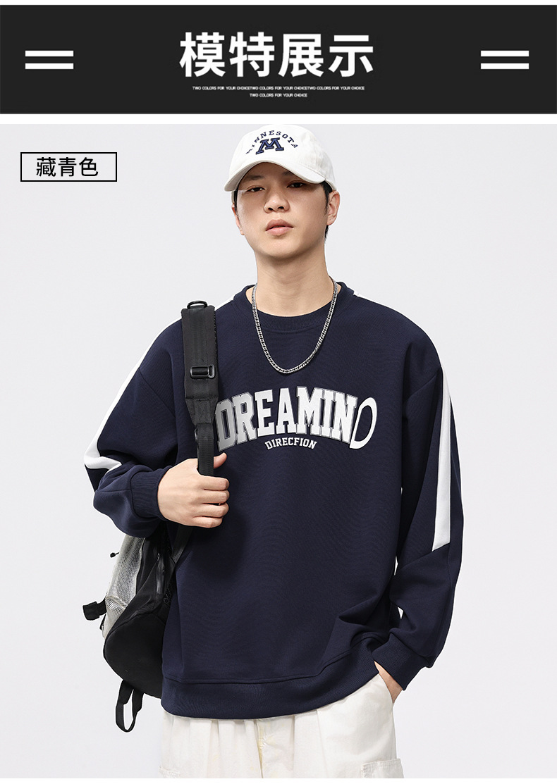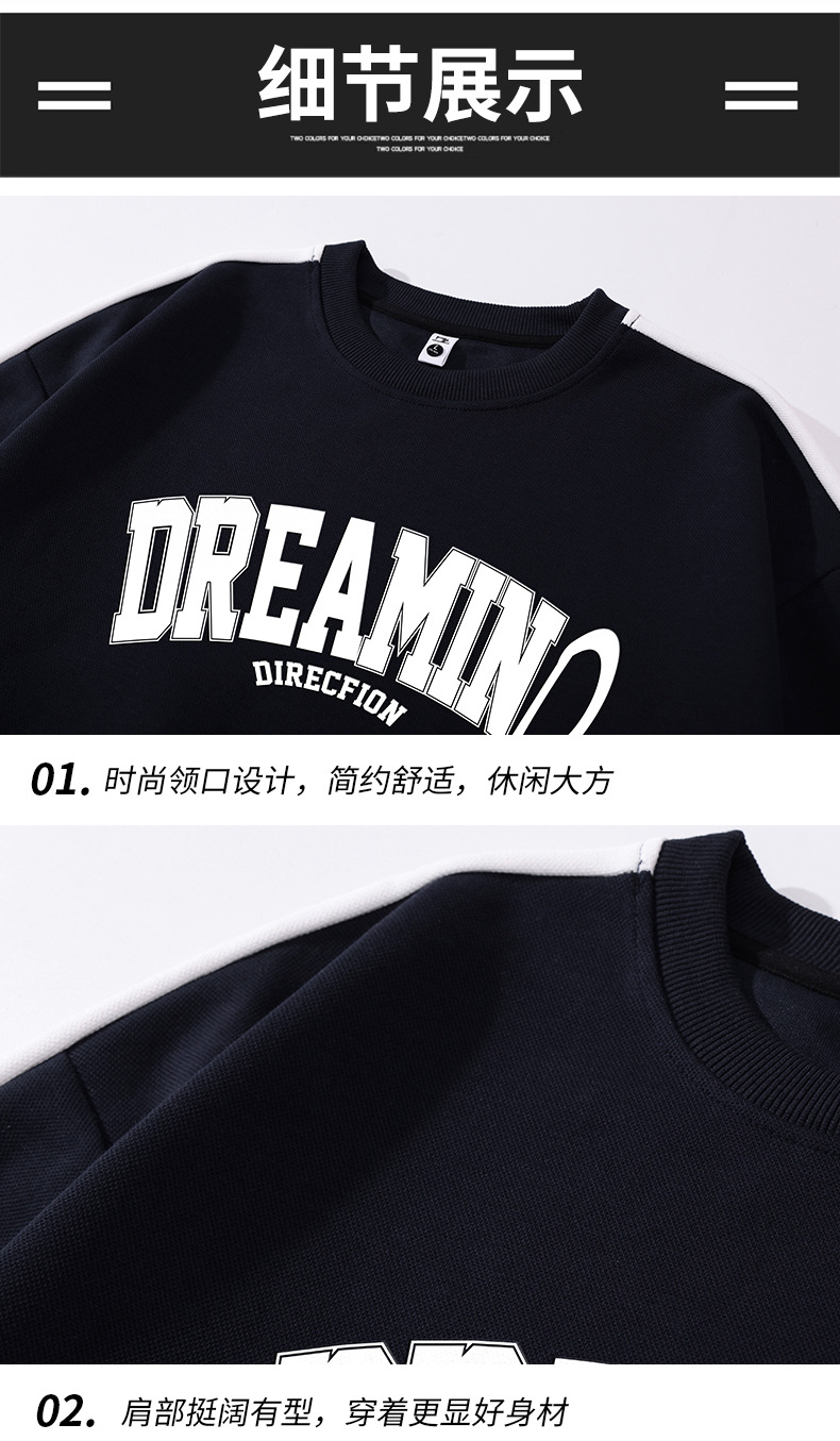 F5702 # 플러스 사이즈 남자 봄 새 330G 무거운 둥근 목 착용 남자 느슨한 조커 컬러 매칭 프린트 재킷