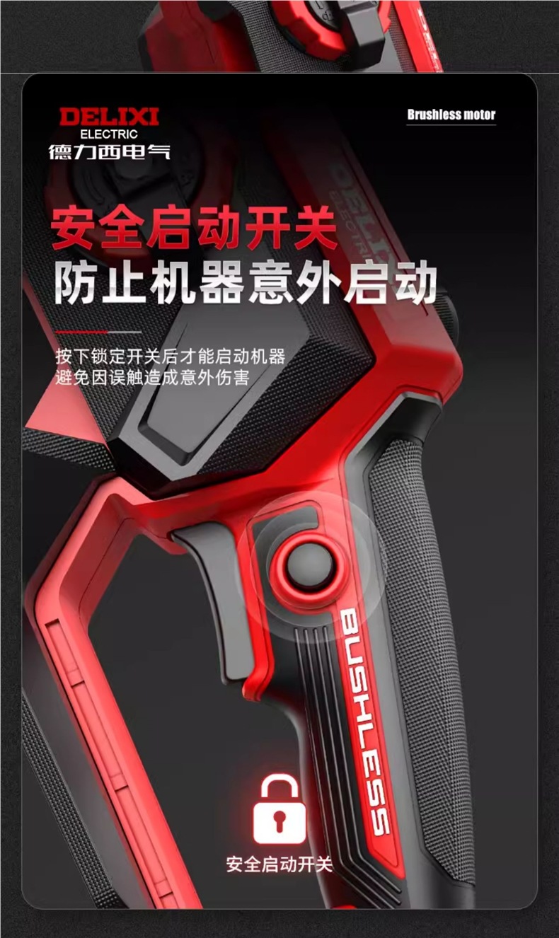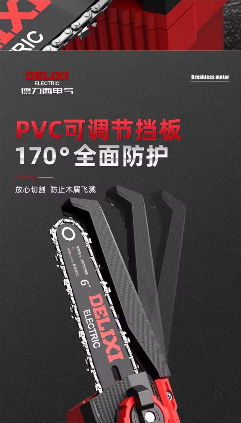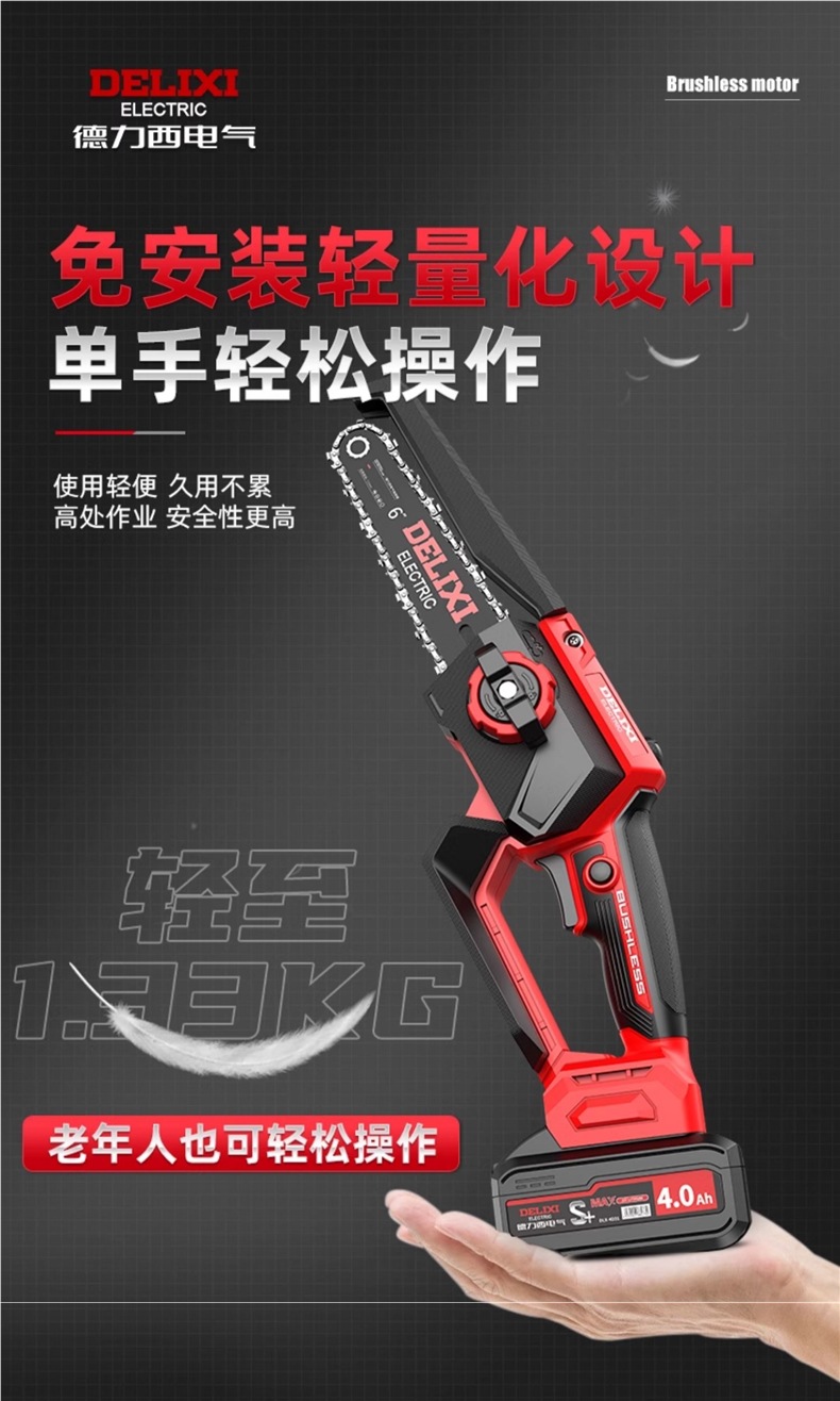 Delixi Brushless 충전식 리튬 배터리 단일 핸드 전기 톱 작은 가정용 휴대용 톱 전기 체인 톱 목재 야외 벌목
