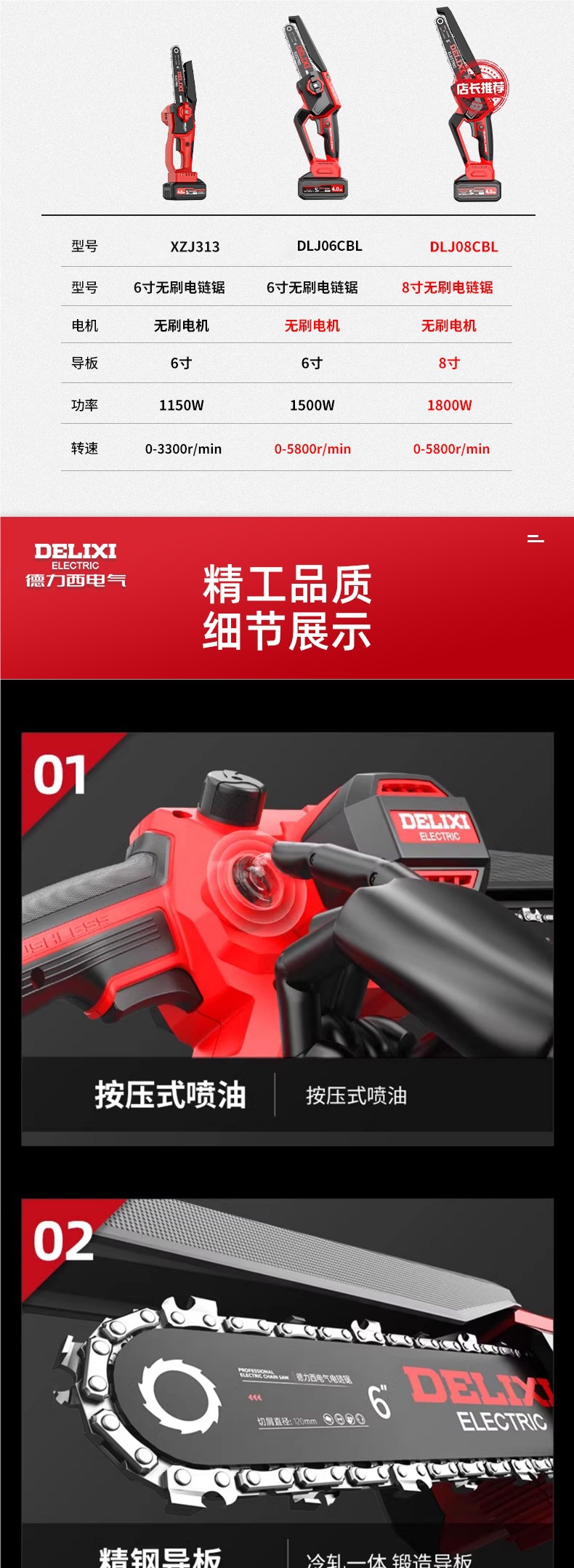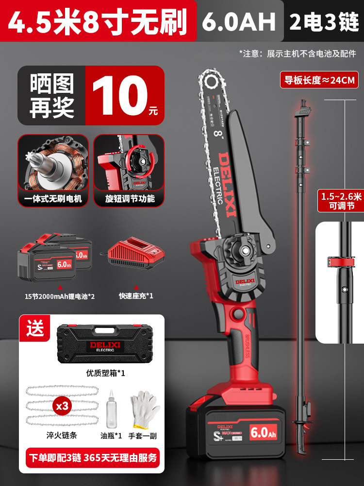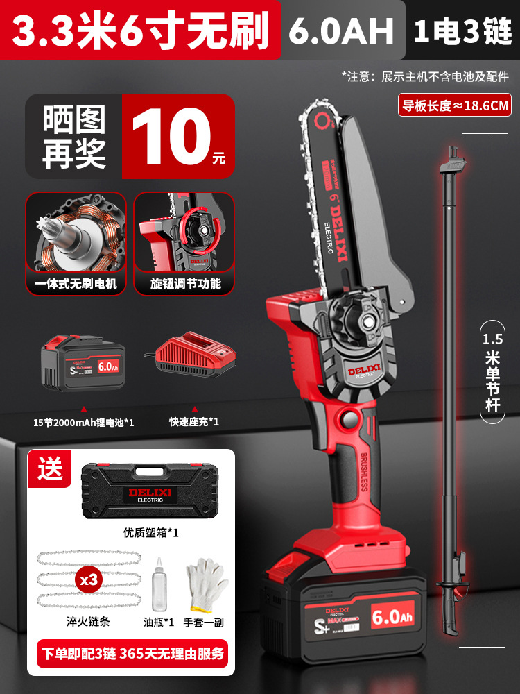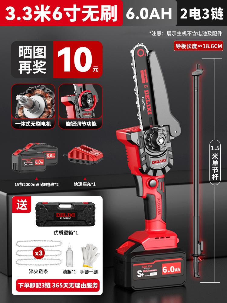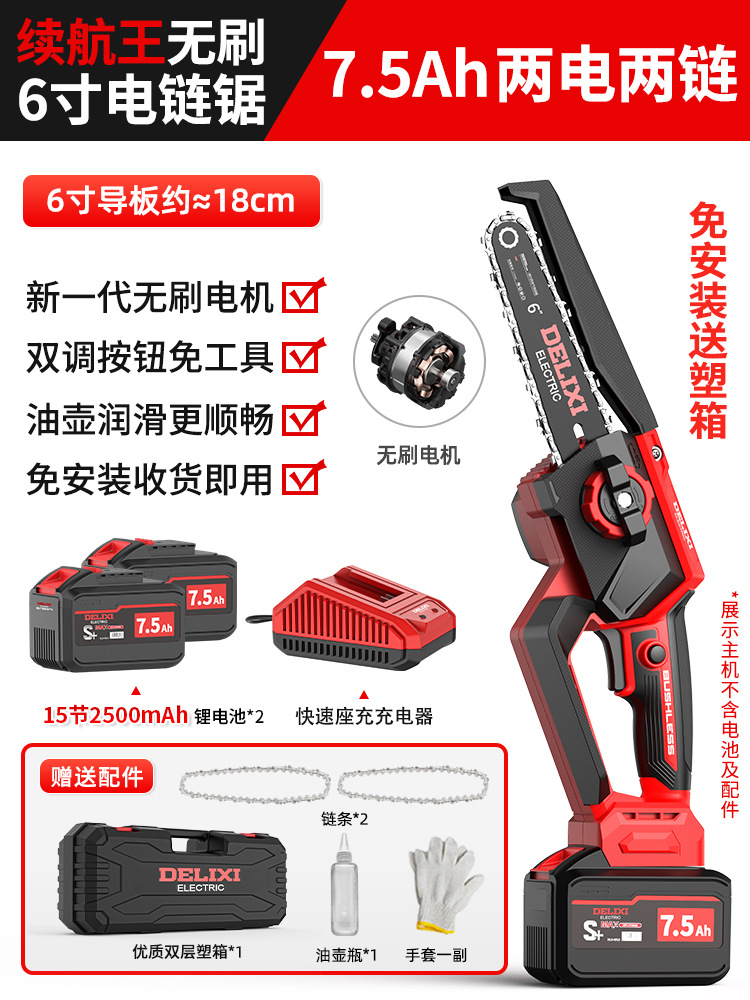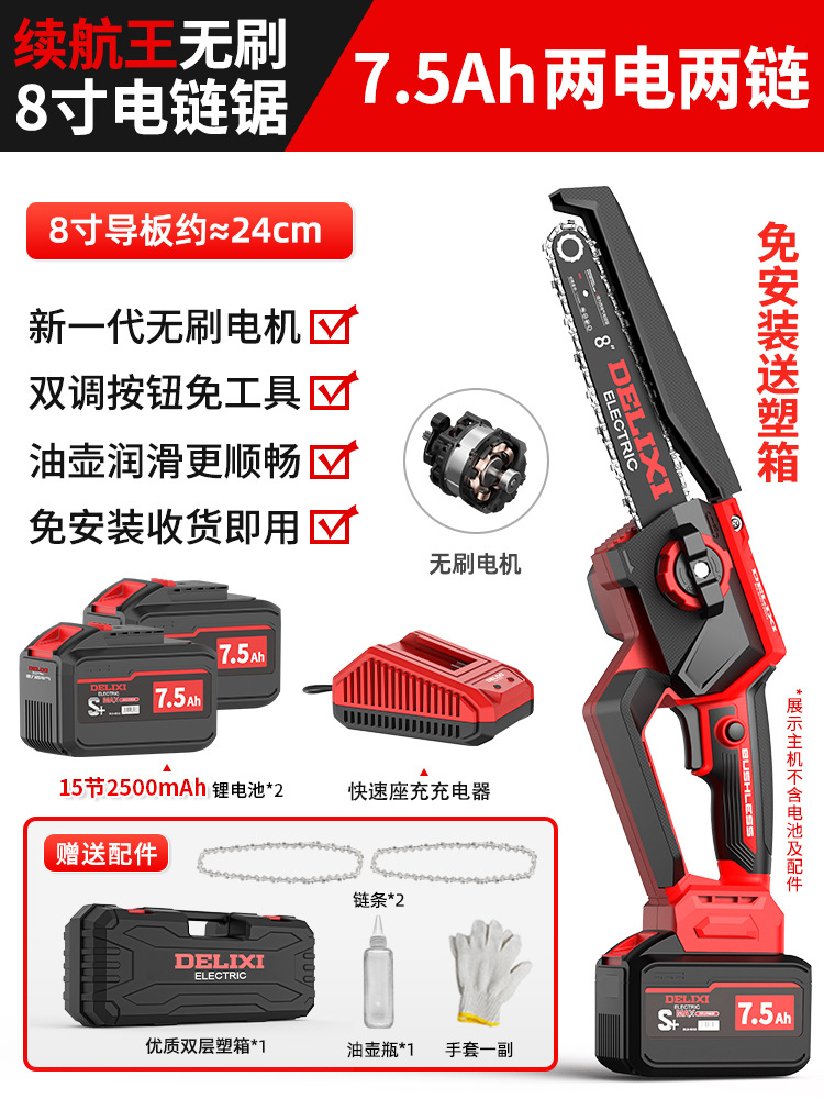 Delixi Brushless 충전식 리튬 배터리 단일 핸드 전기 톱 작은 가정용 휴대용 톱 전기 체인 톱 목재 야외 벌목스토어 가기