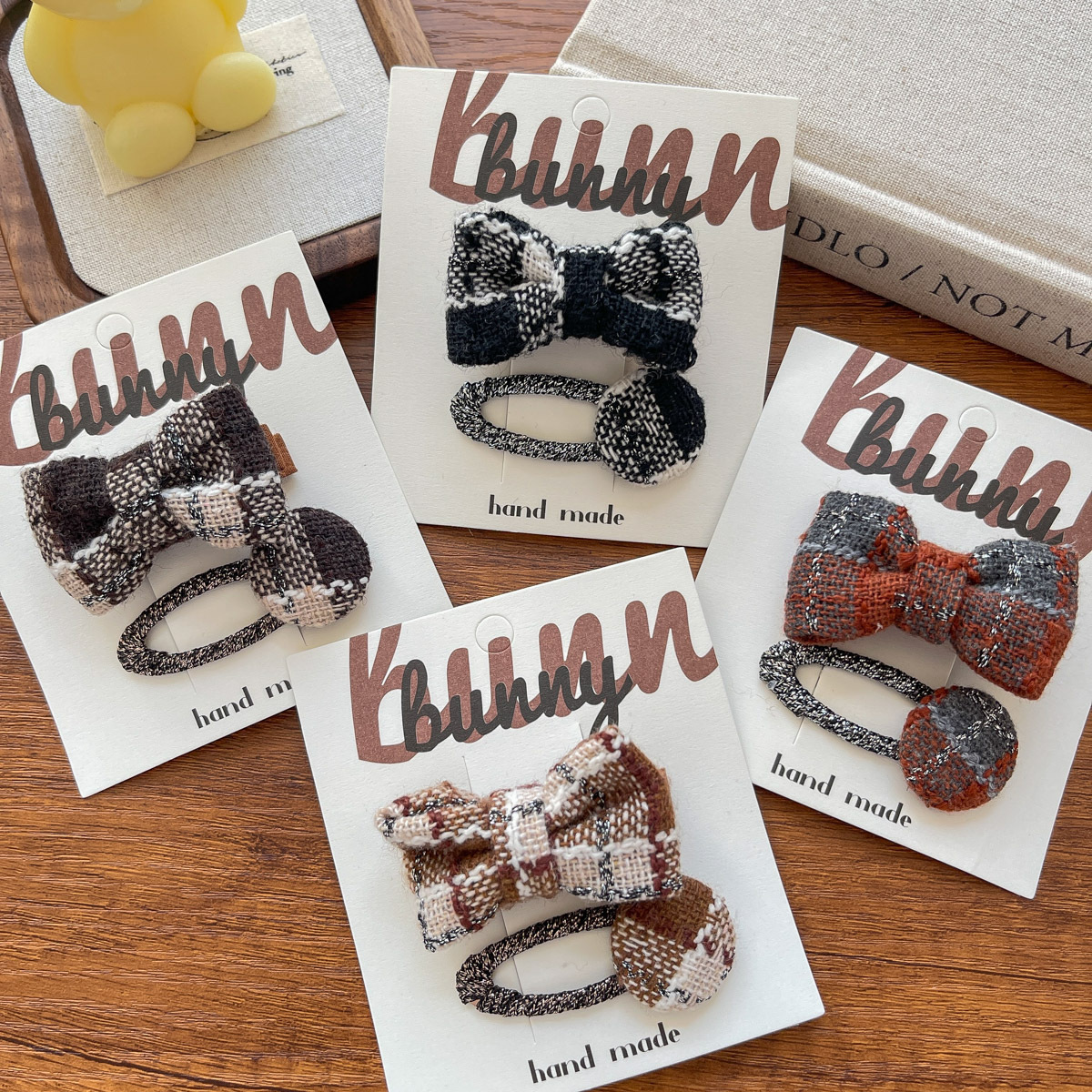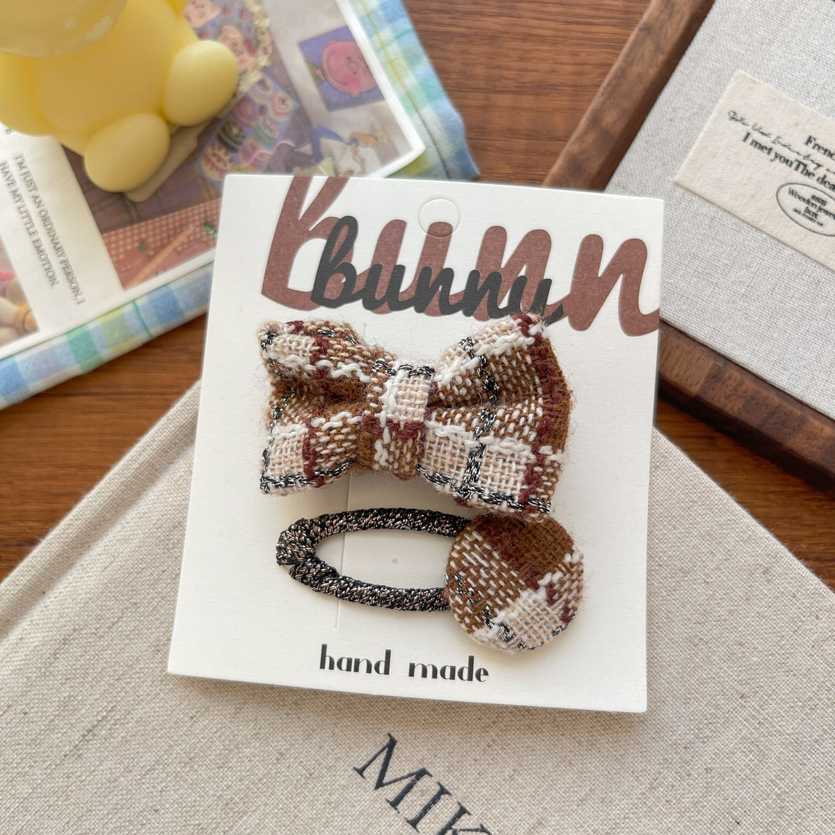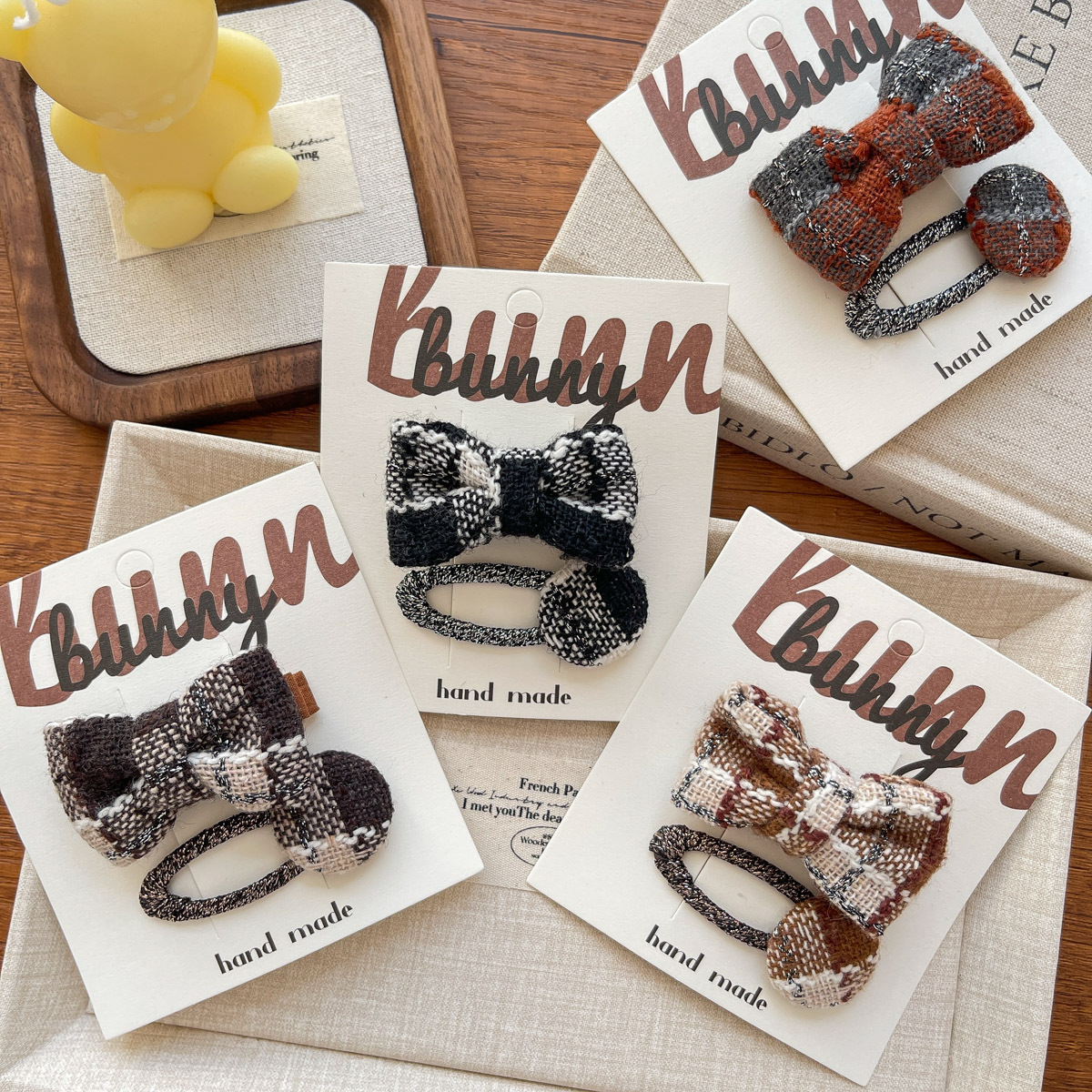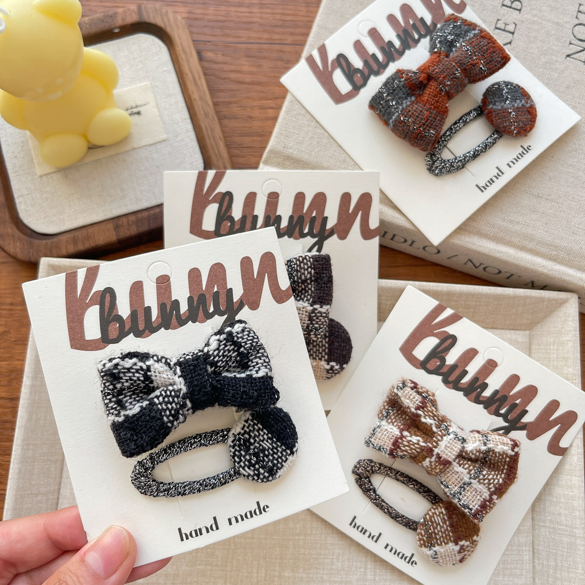가을과 겨울 새로운 올 매치 모직 격자 무늬 버튼 어린이 헤어핀 한국 스타일 젠틀 스타일 소녀의 부러진 헤어 액세서리 헤어핀