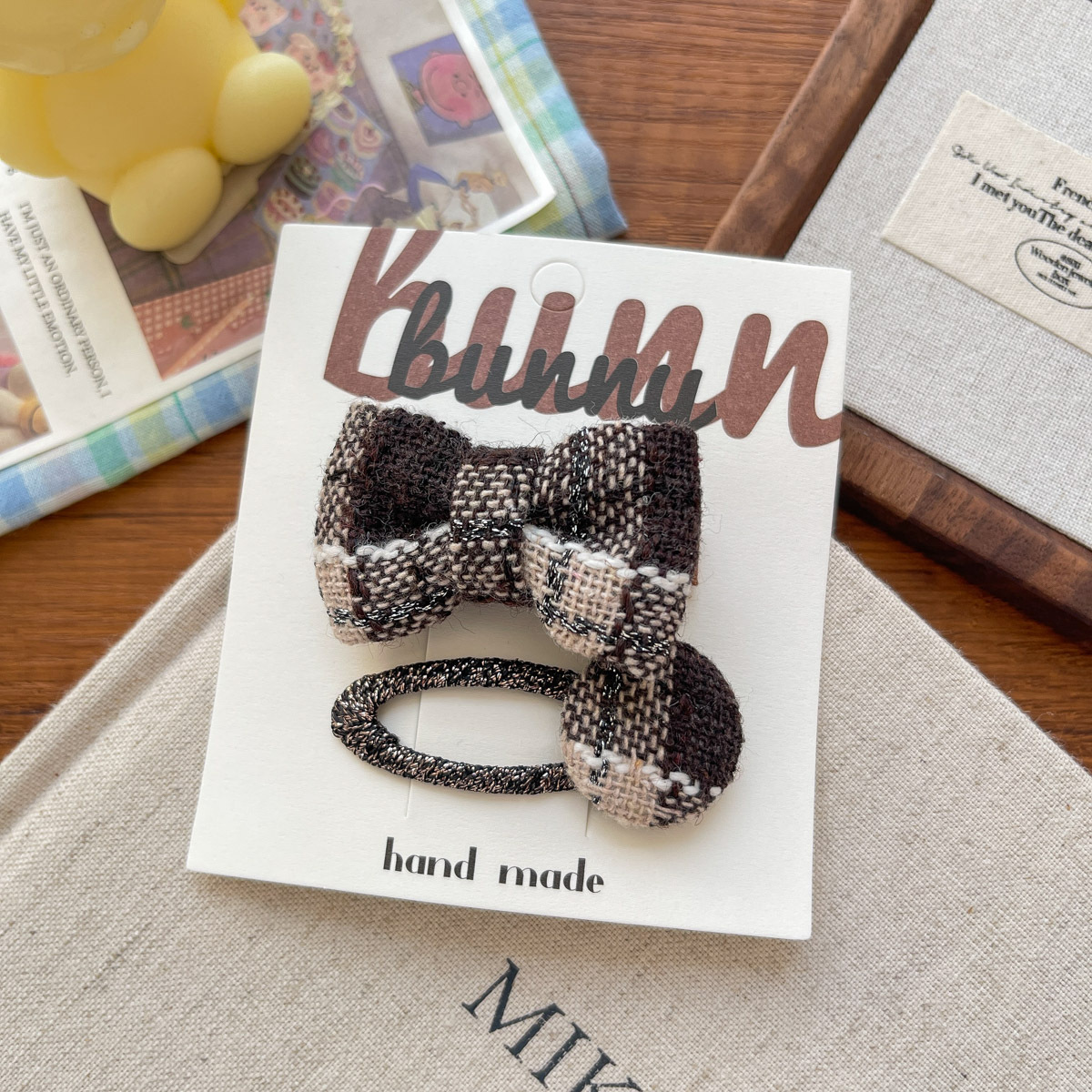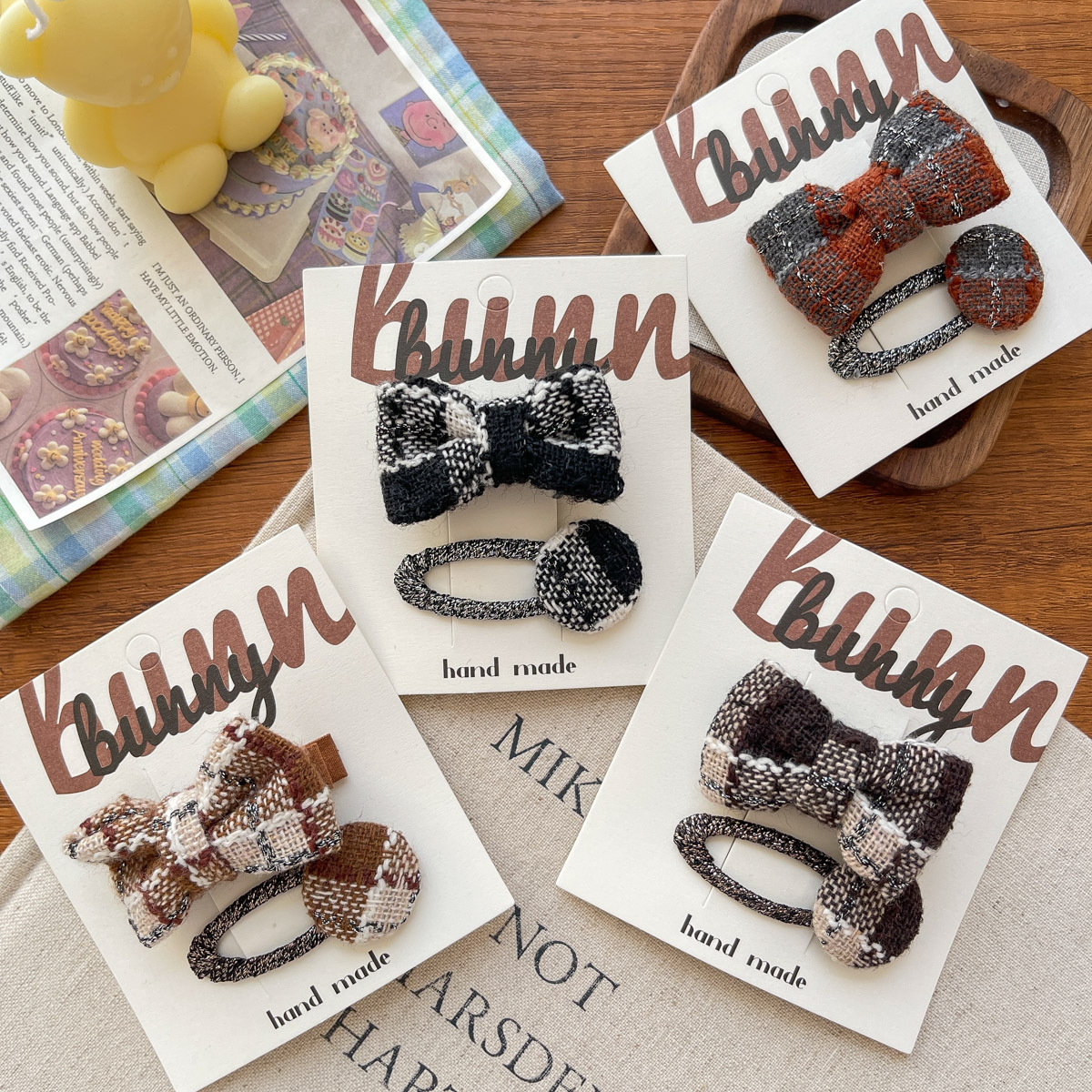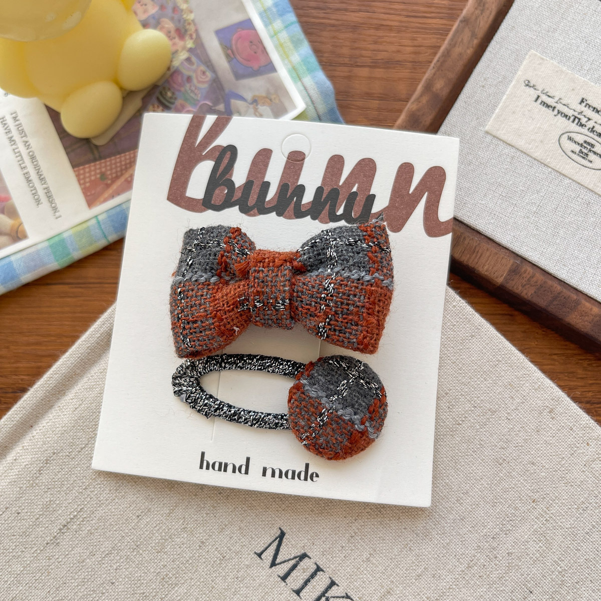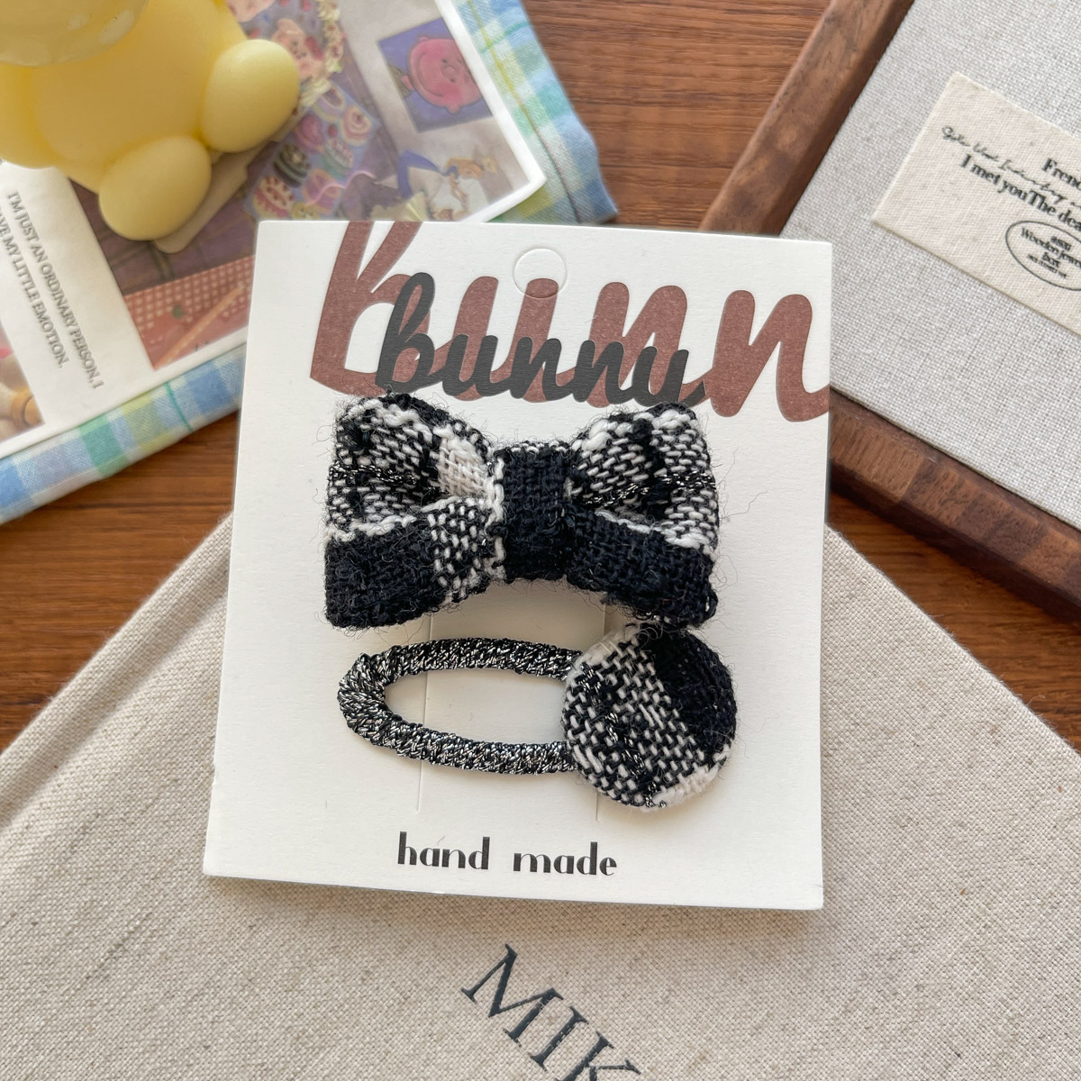 가을과 겨울 새로운 올 매치 모직 격자 무늬 버튼 어린이 헤어핀 한국 스타일 젠틀 스타일 소녀의 부러진 헤어 액세서리 헤어핀
