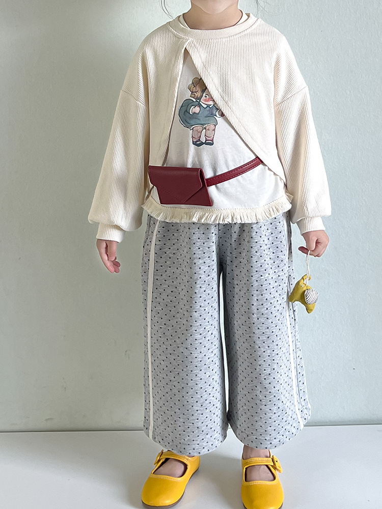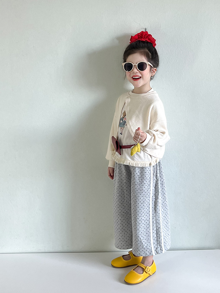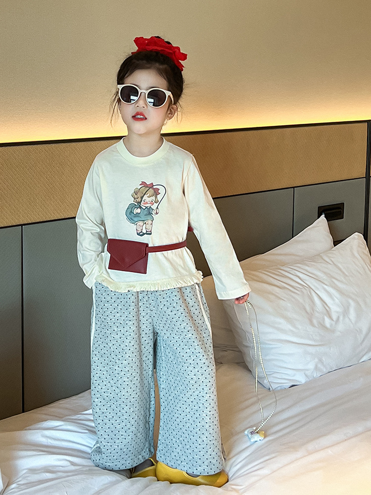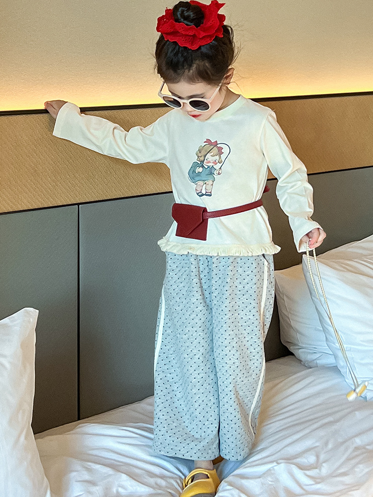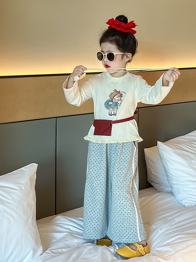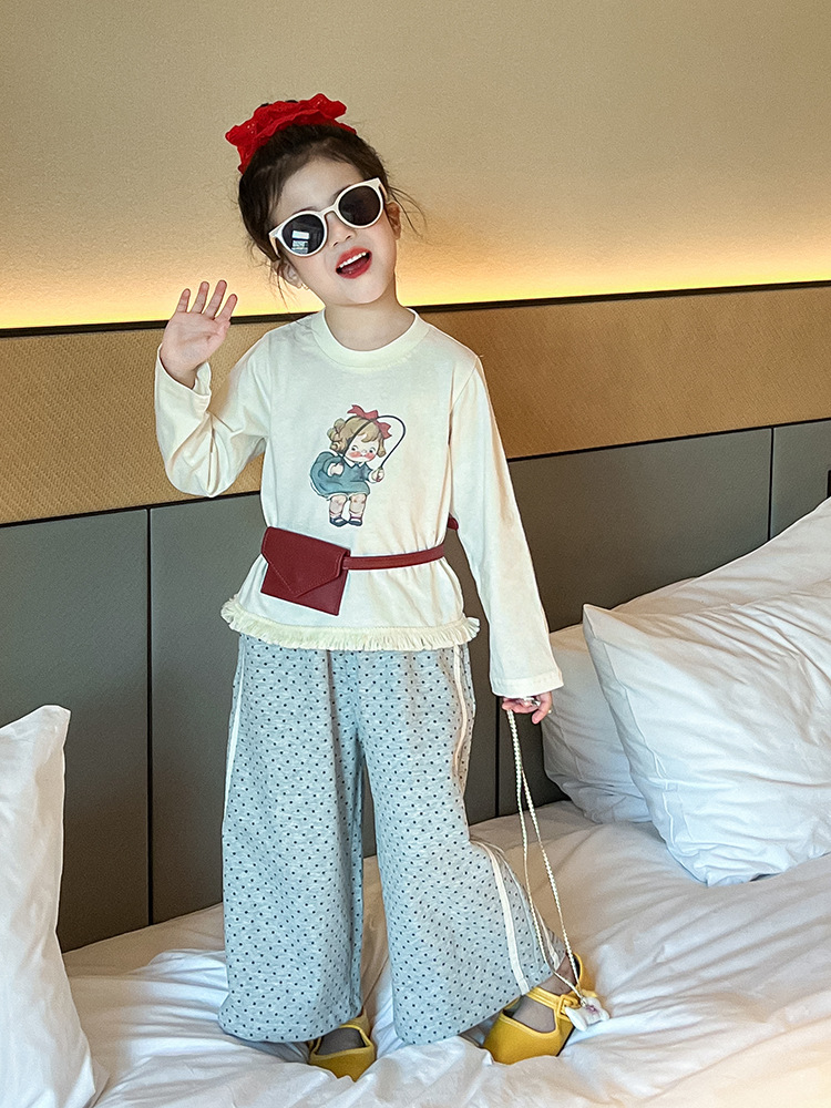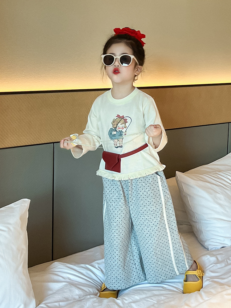 여자 조커 캐주얼 폴카 점 바지 2025 봄 새 만화 긴 소매 티셔츠 스웨터 세트 트렌디스토어 가기