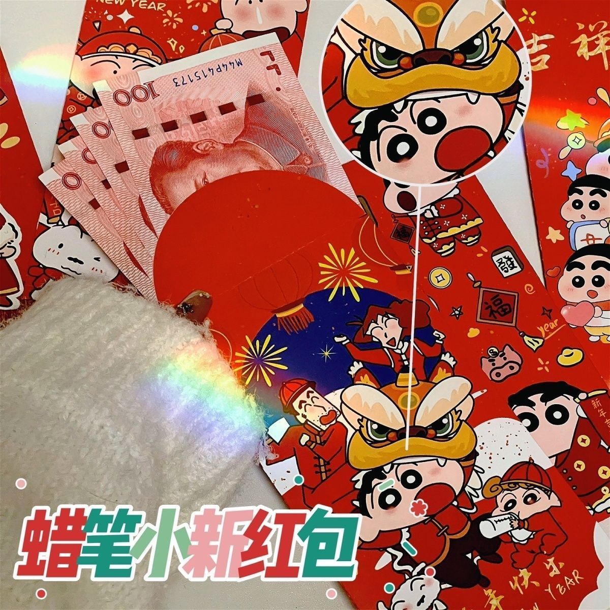 새로운 어린이 새해 만화 2025 크레용 작은 새 빨간 봉투 개인화 된 창조적 인 새해 귀여운 봄 축제