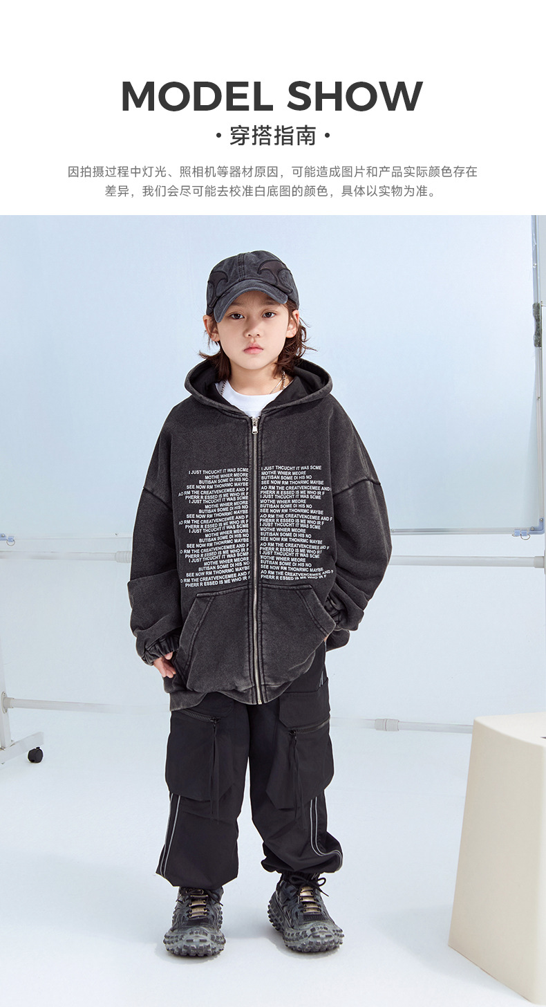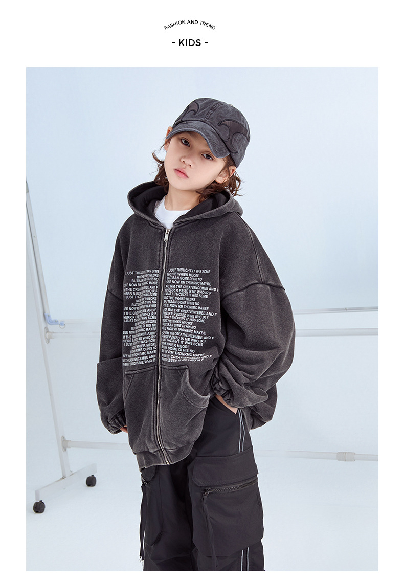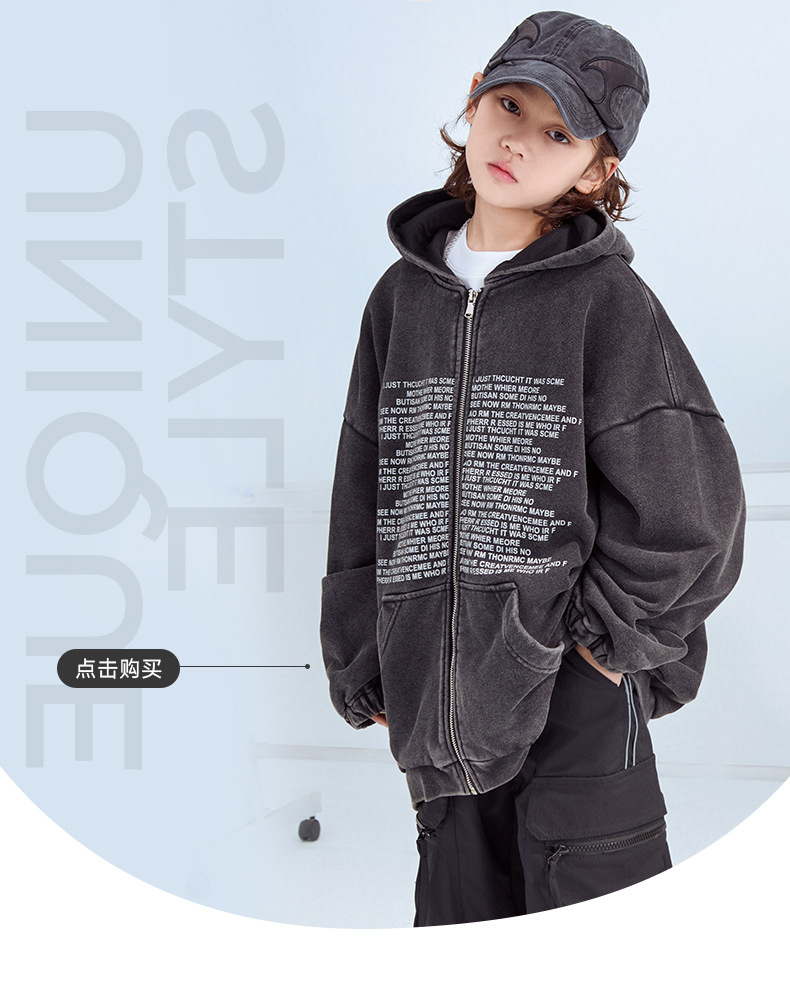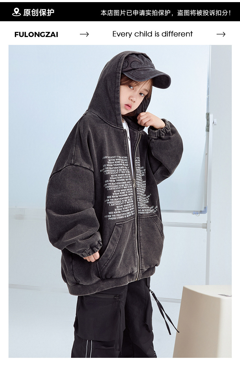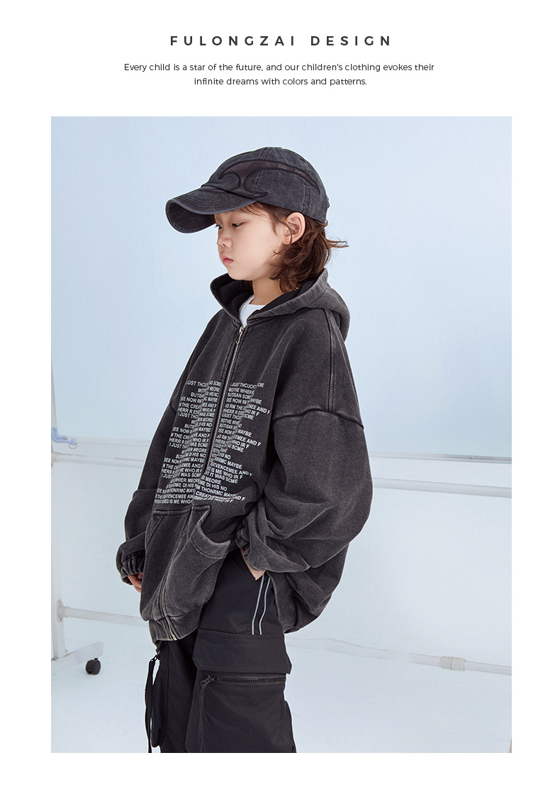 FULONGZAI 부모-자식 아동복 2025 봄 신작 남성 및 여성 중대형 아동용 후드 지퍼 스웨트 카디건스토어 가기