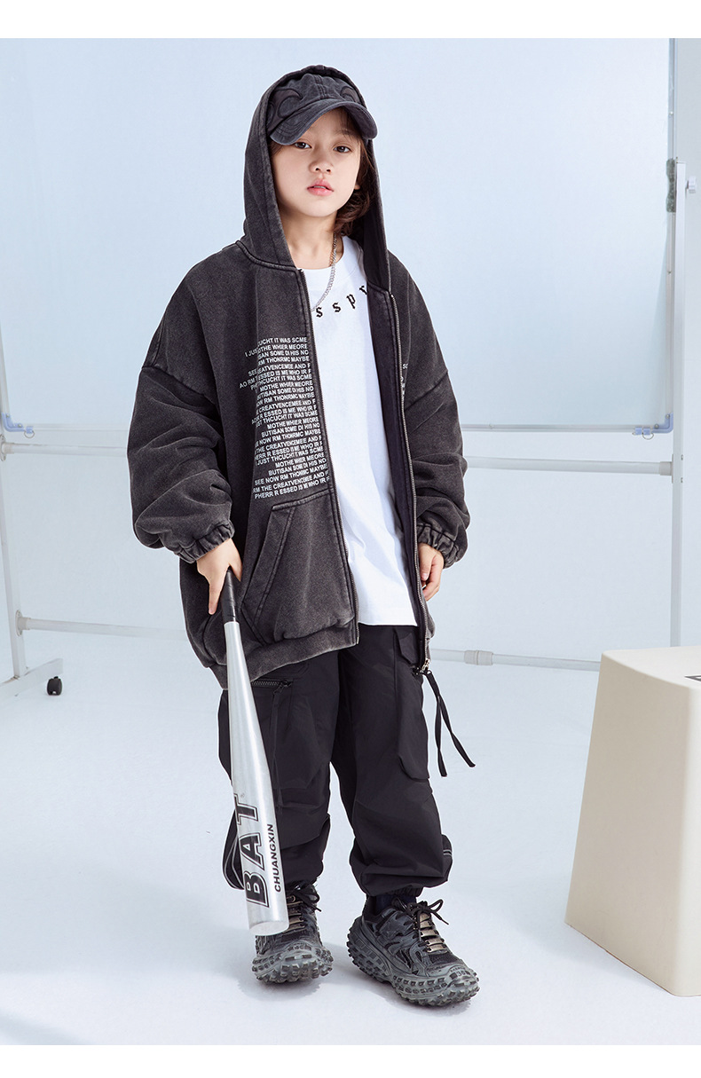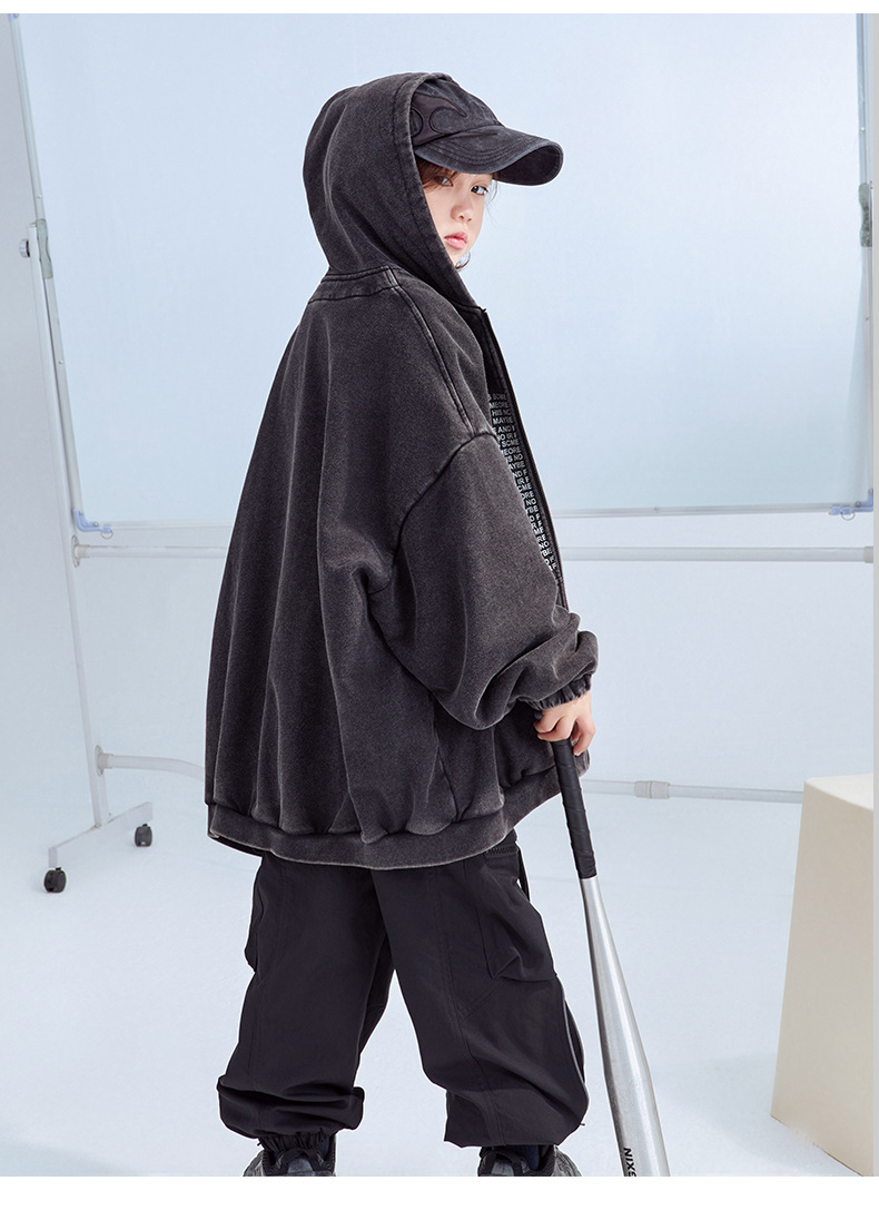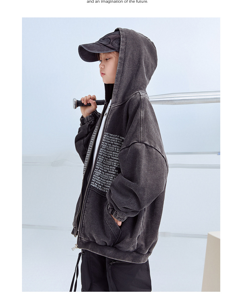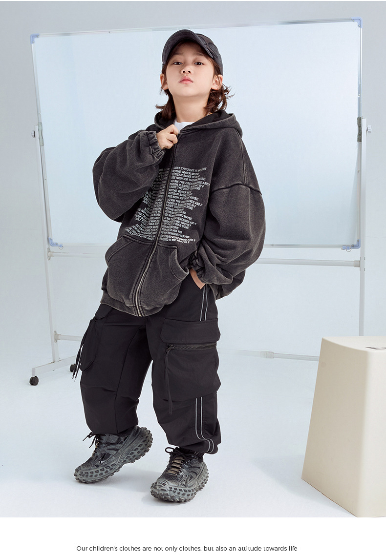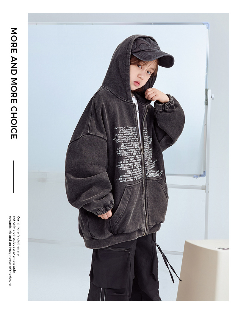 FULONGZAI 부모-자식 아동복 2025 봄 신작 남성 및 여성 중대형 아동용 후드 지퍼 스웨트 카디건스토어 가기