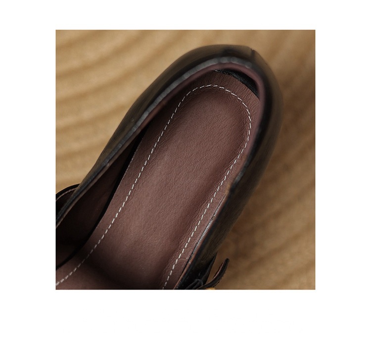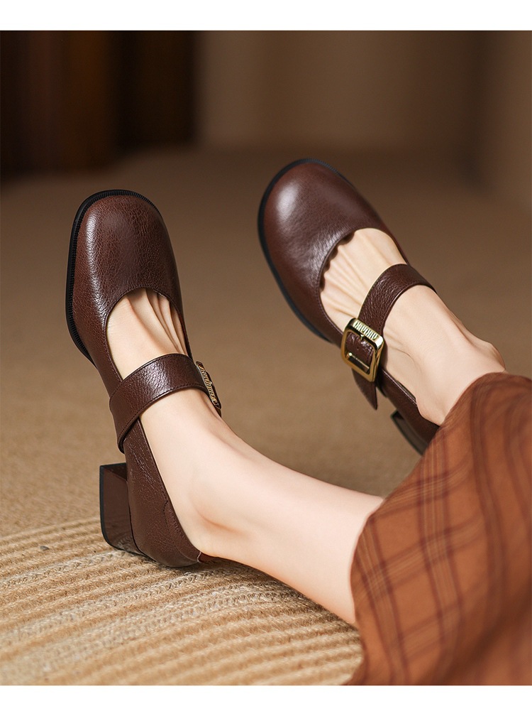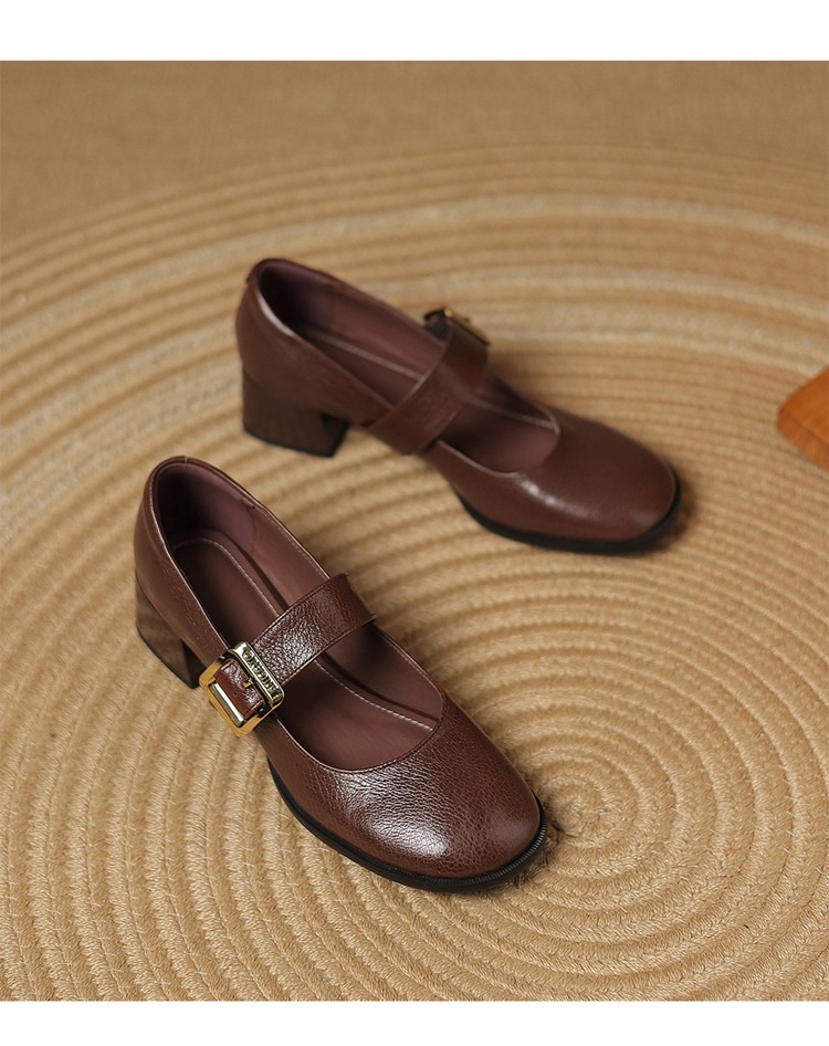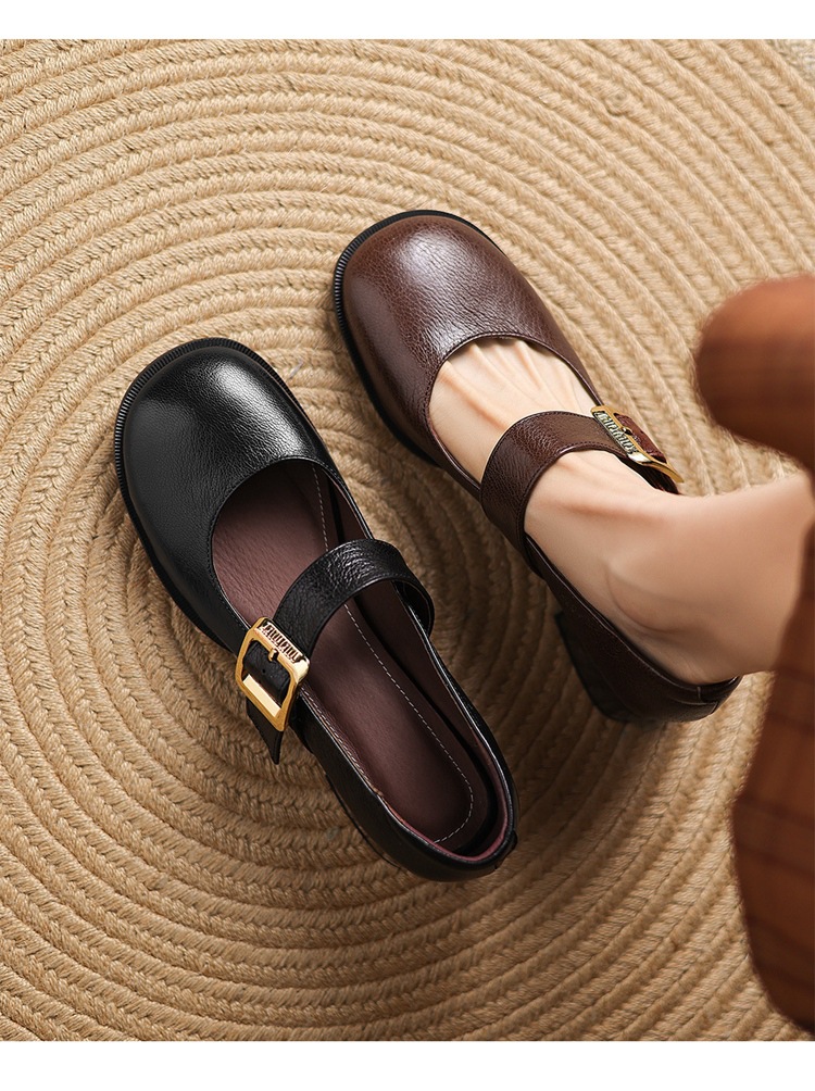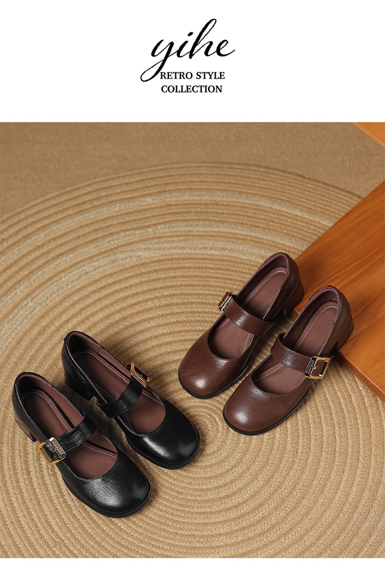 레트로 메리 제인 신발 양가죽 두꺼운 발 뒤꿈치 여성 봄과 가을 새로운 얕은 입 뒤꿈치 플러스 사이즈 여성 신발 41-43 국경