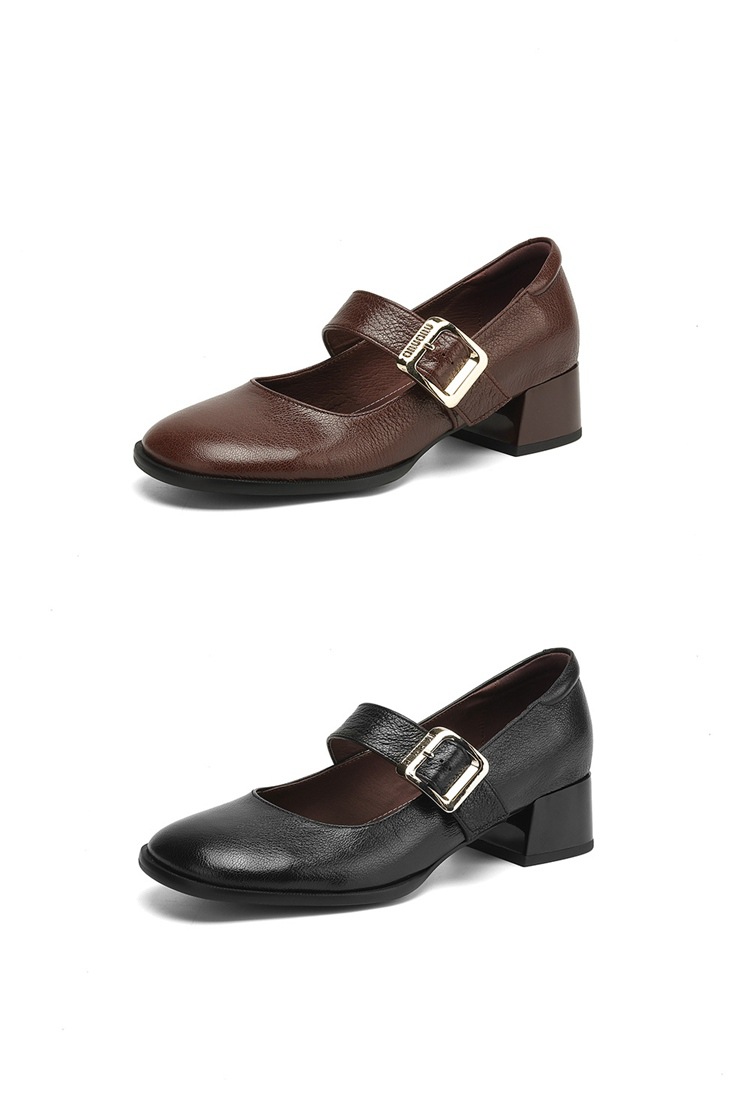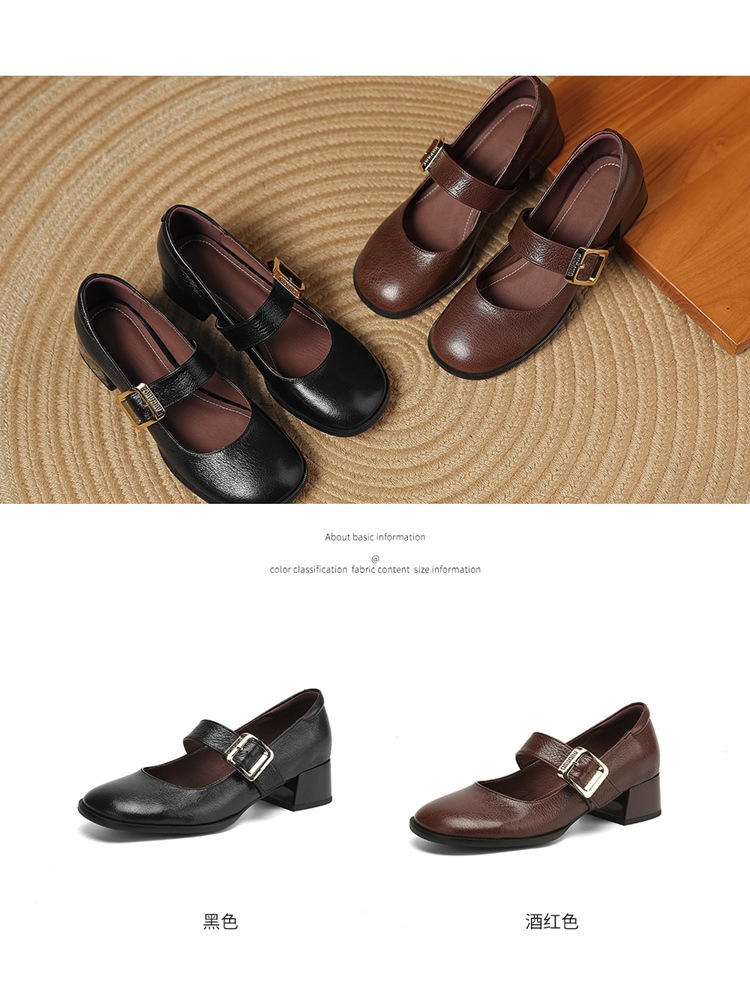 레트로 메리 제인 신발 양가죽 두꺼운 발 뒤꿈치 여성 봄과 가을 새로운 얕은 입 뒤꿈치 플러스 사이즈 여성 신발 41-43 국경스토어 가기
