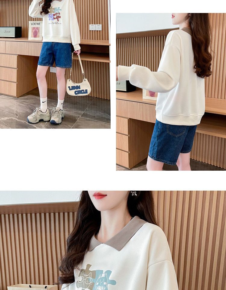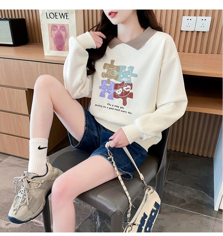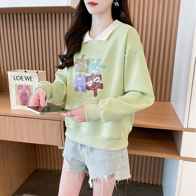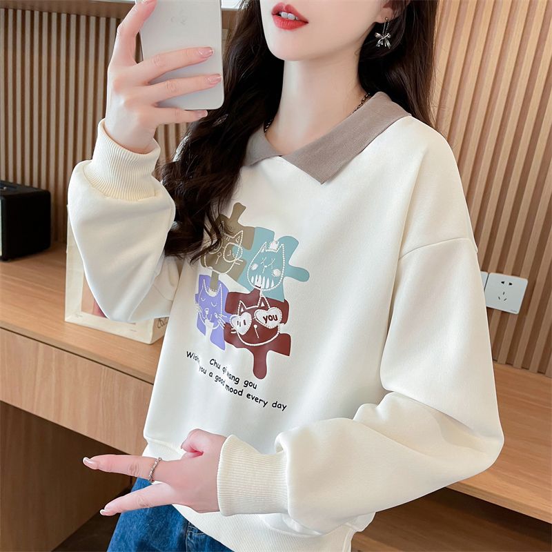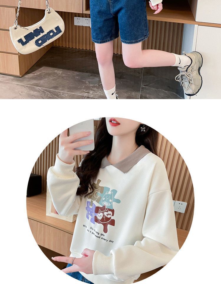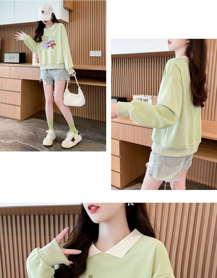 폴로 칼라 짧은 스웨터 여성의 봄과 가을 새로운 한국식 느슨한 폴로 셔츠 색상 매칭 얇은 가짜 투피스 탑 아우터스토어 가기