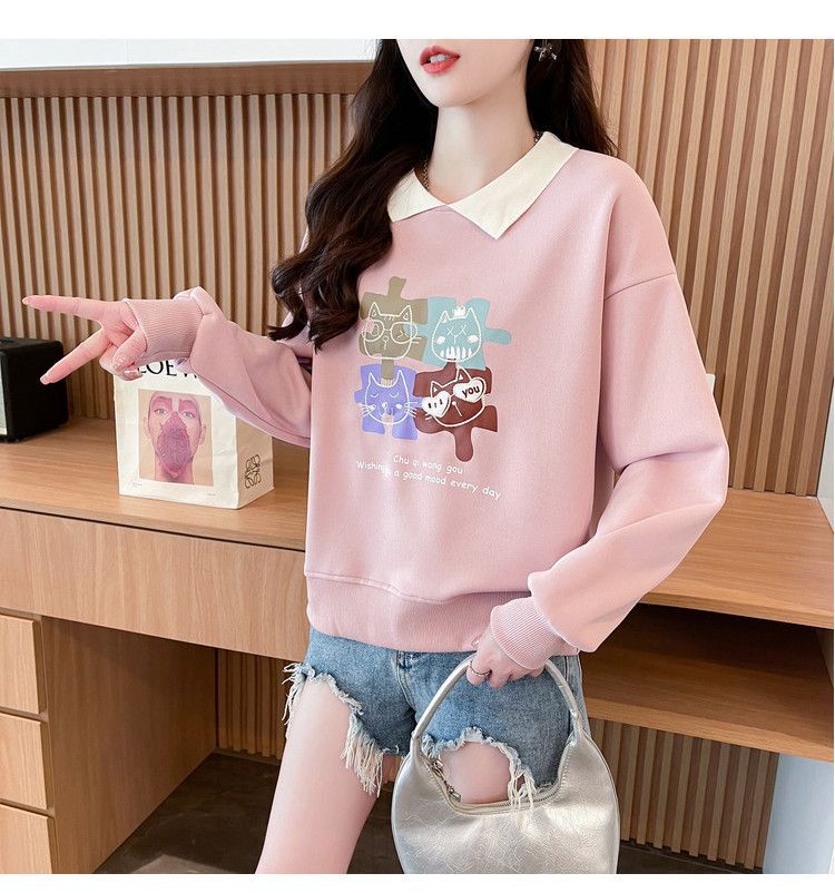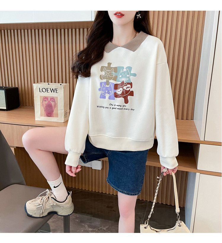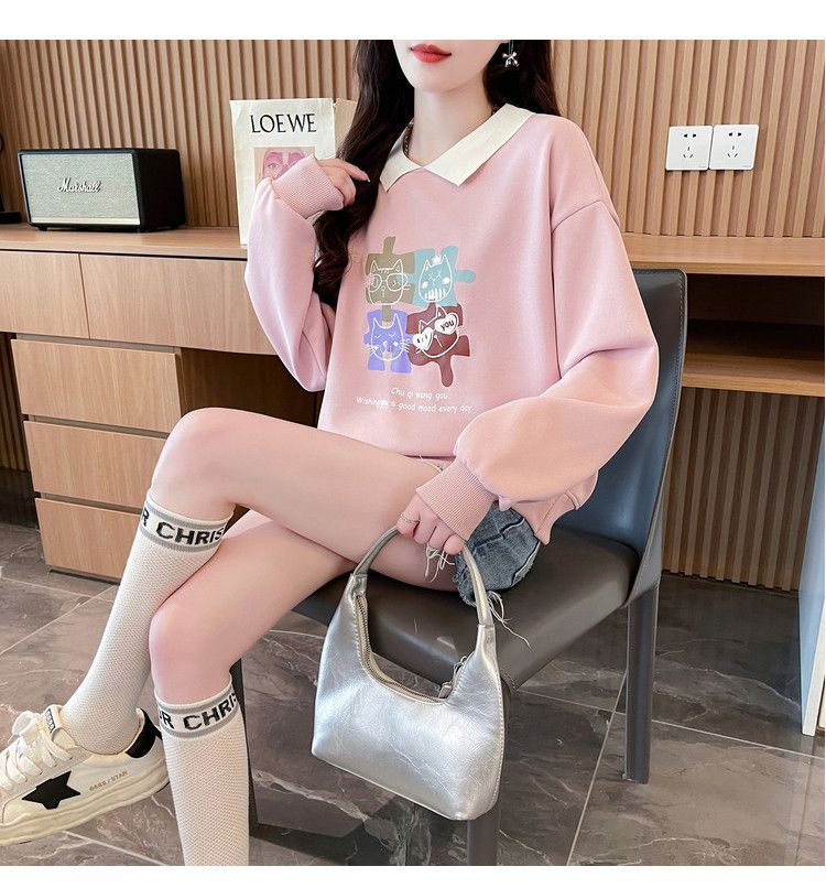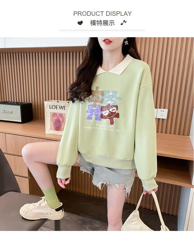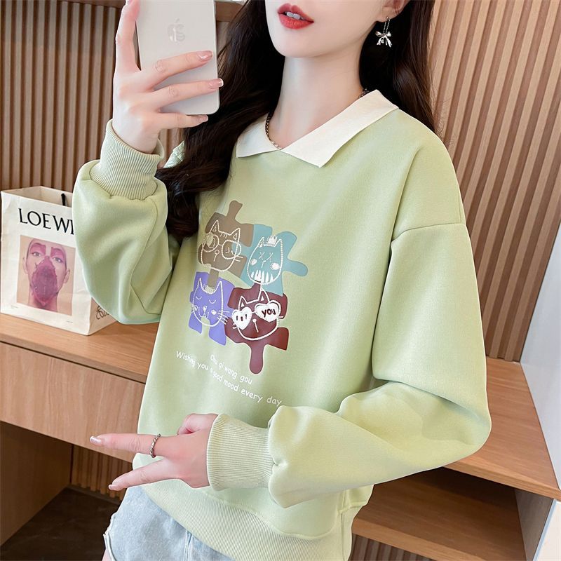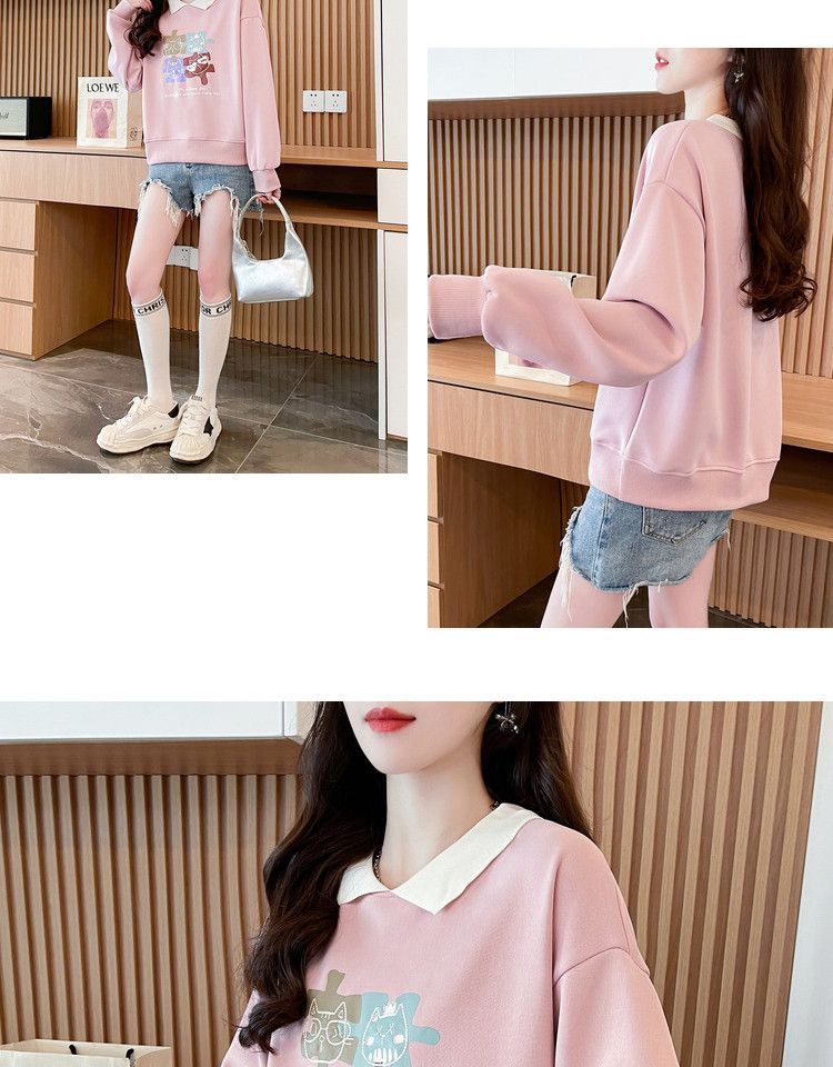 폴로 칼라 짧은 스웨터 여성의 봄과 가을 새로운 한국식 느슨한 폴로 셔츠 색상 매칭 얇은 가짜 투피스 탑 아우터스토어 가기