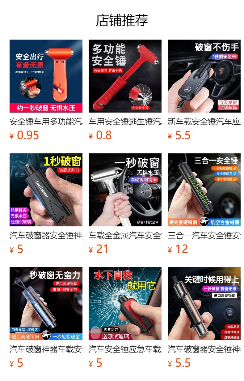 자동차 안전 해머 유리 창 차단기 자동차 장착 창 브레이킹 안전 해머 비상 탈출 해머 자동차 다기능 안전 해머스토어 가기