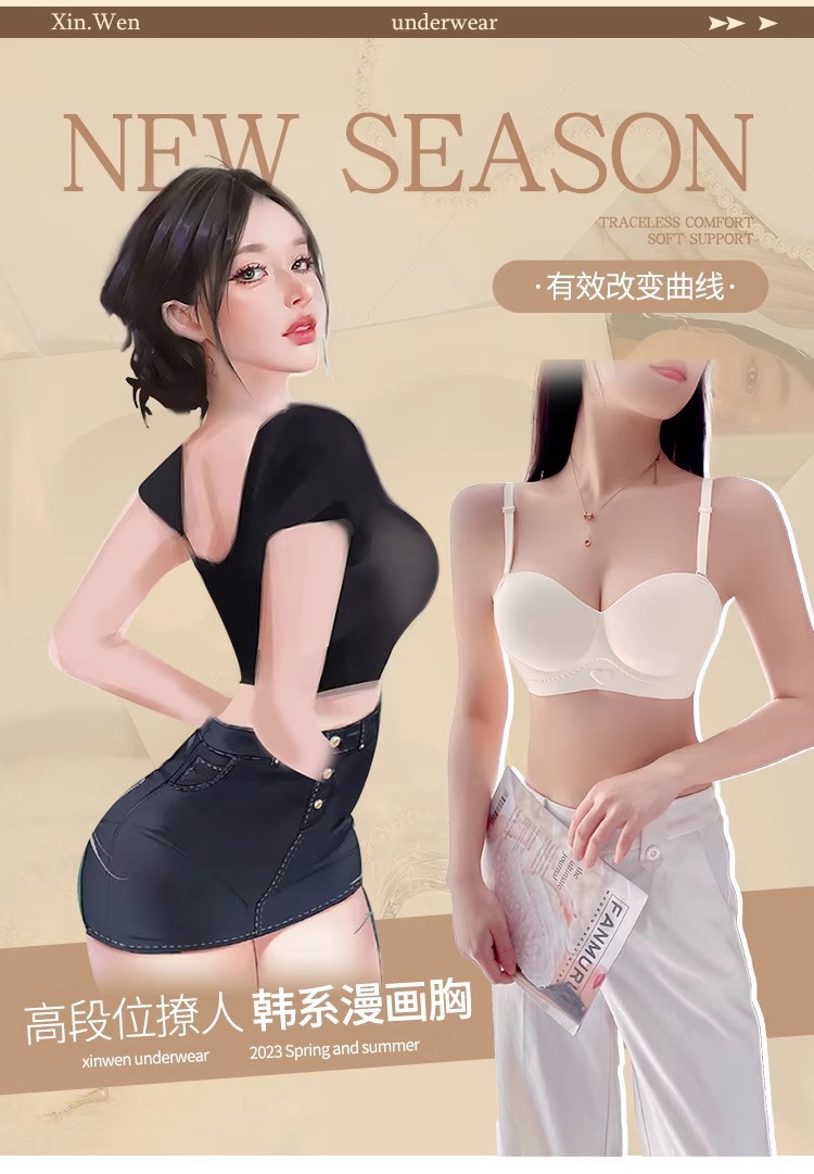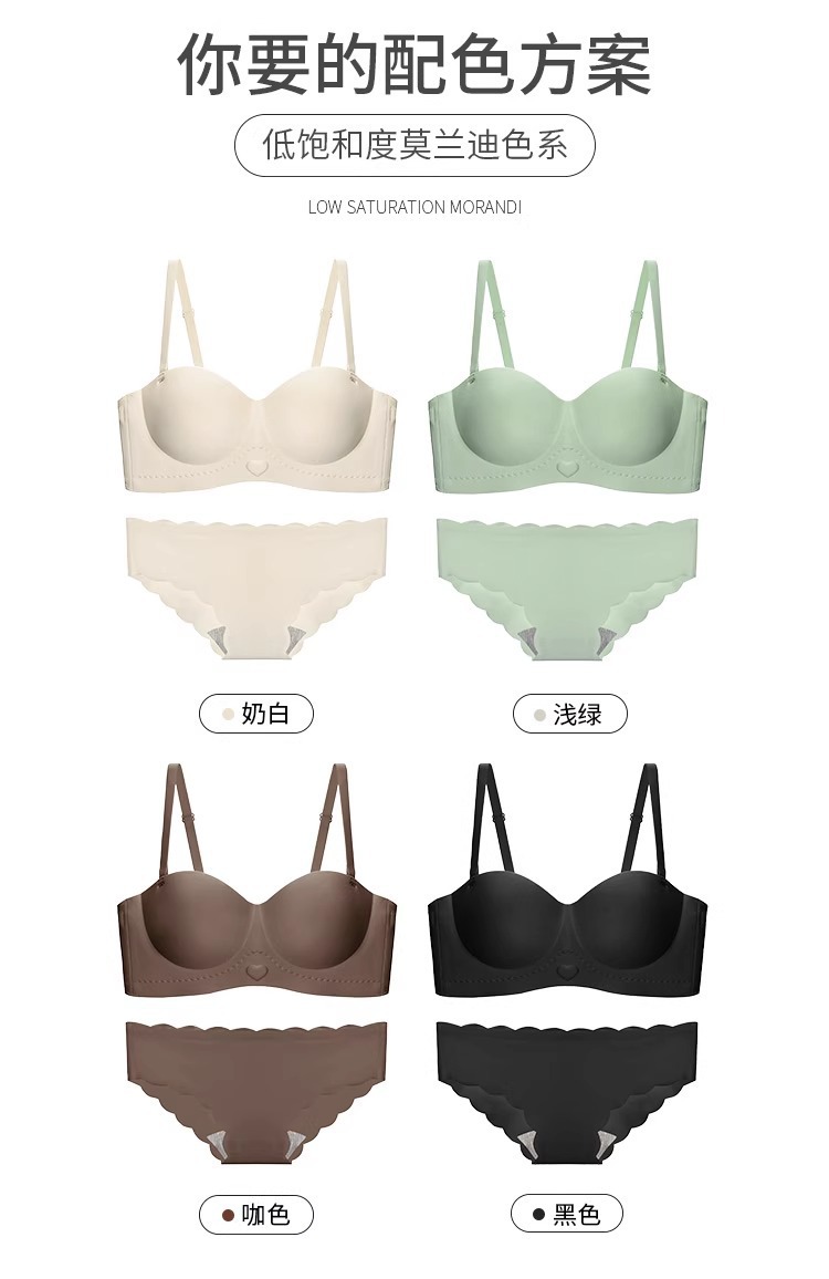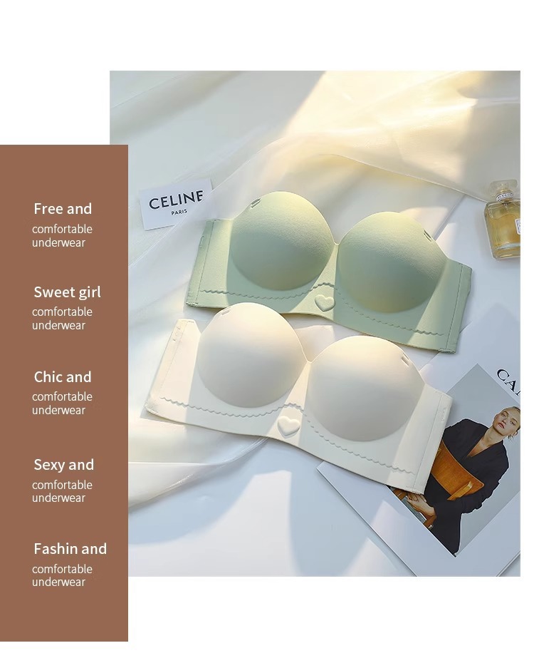착용 라운드 가슴 속옷 여성용 작은 가슴 큰 노마크 하프 컵 외장 확장 스트랩리스 미끄럼 방지 브래지어 여성용 브래지어