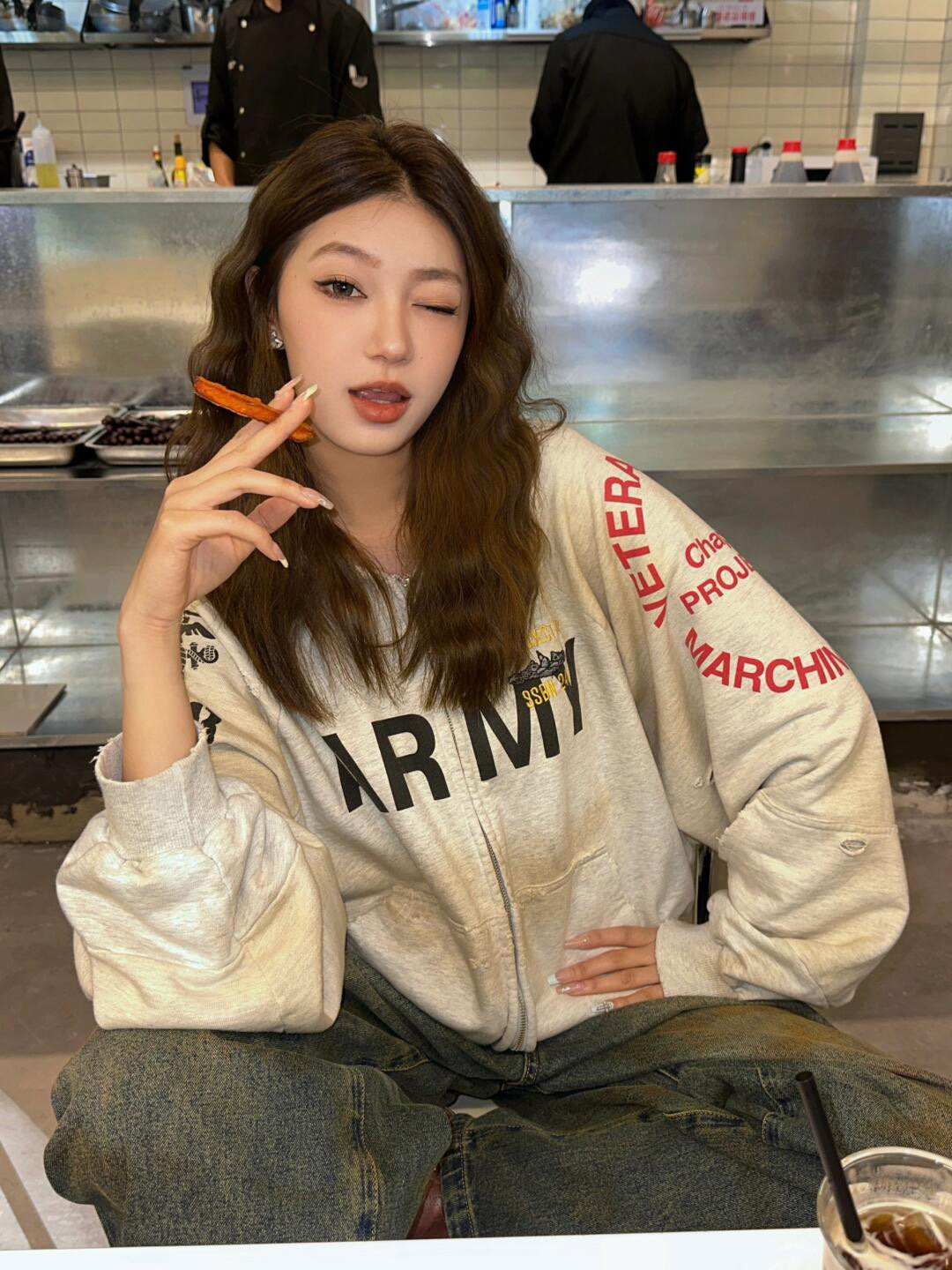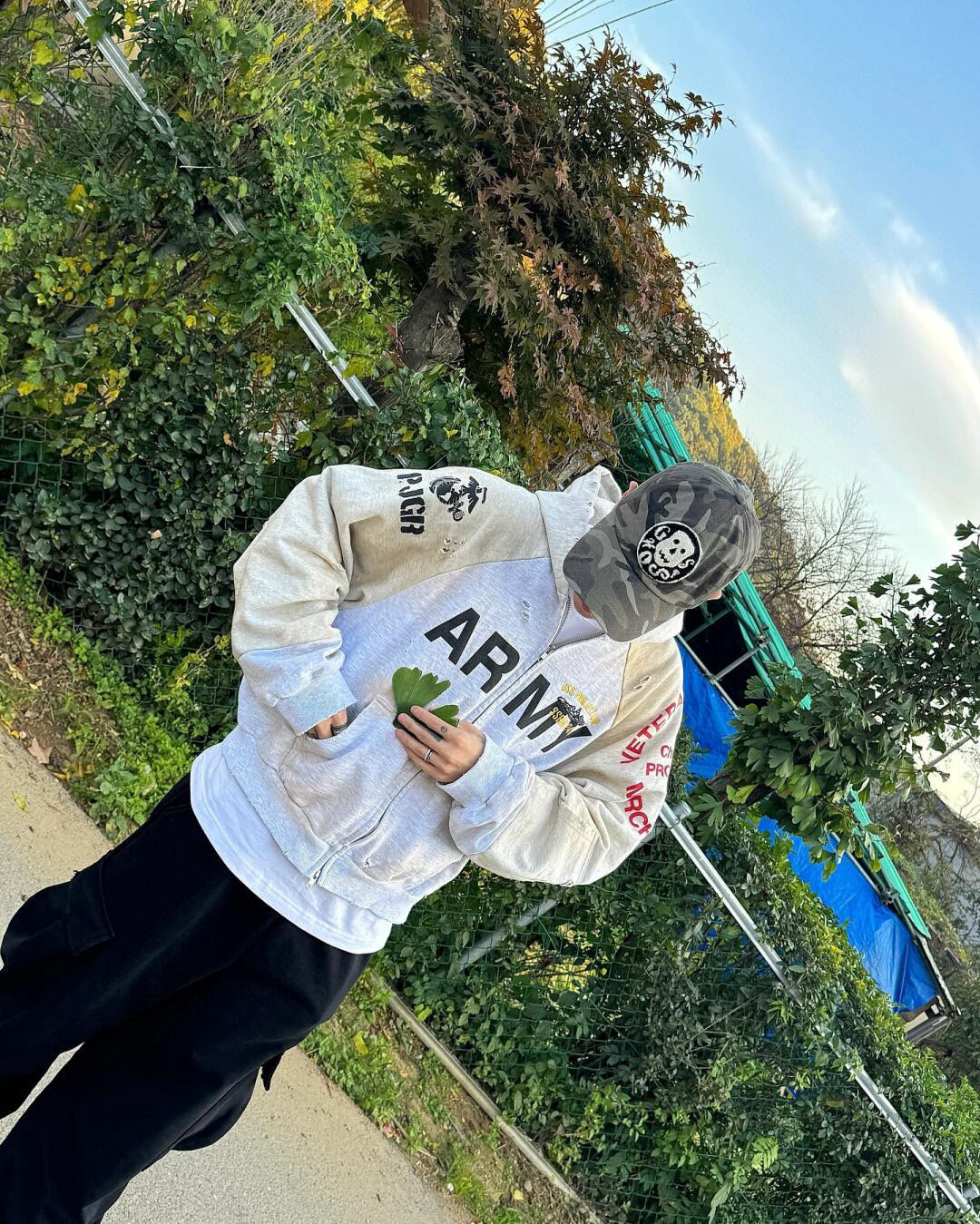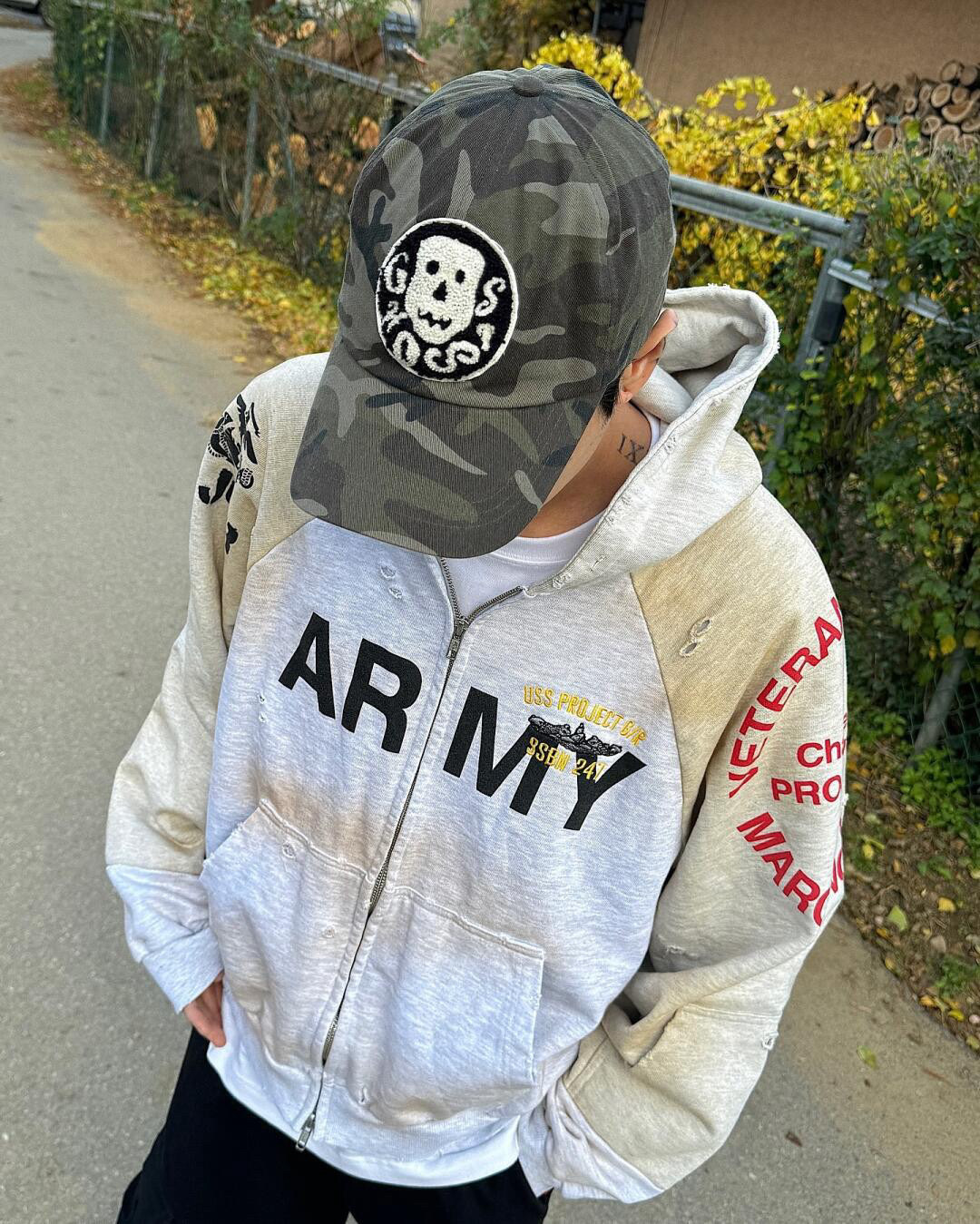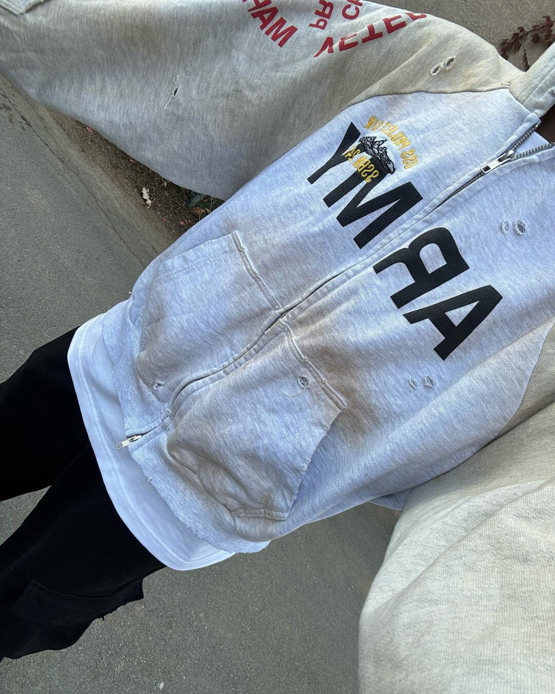 Grailz 프로젝트 gr 무거운 가짜 투피스 바느질 오래된 파괴 더러운 염색 후드 스웨터 카디건 재킷스토어 가기