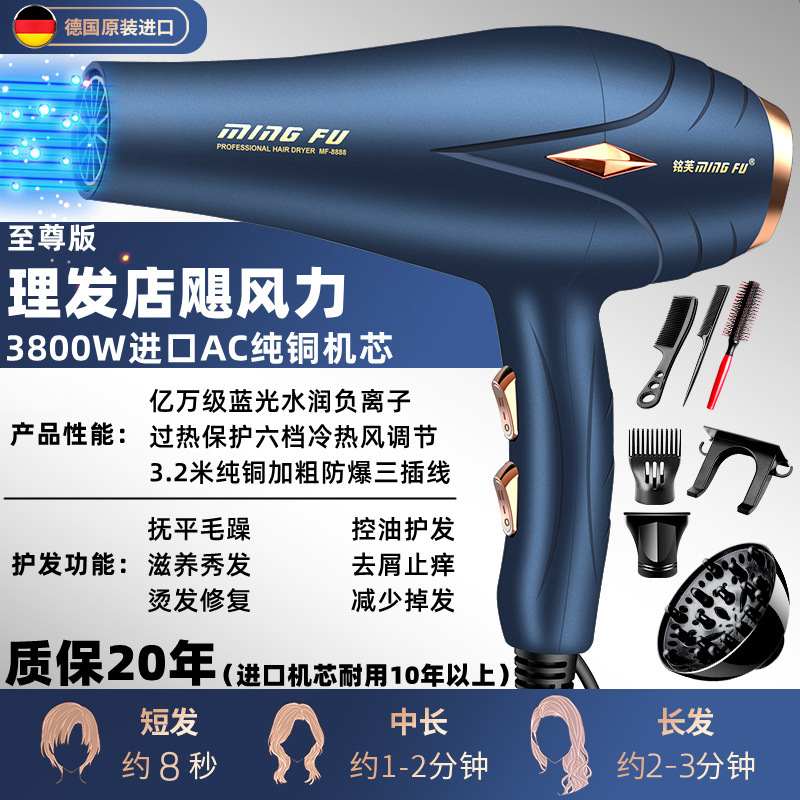 헤어 살롱 이발소 용 헤어 드라이어 고출력 가정용 네거티브 이온 헤어 케어 신속 건조 3 플러그 핫 및 콜드 덕트