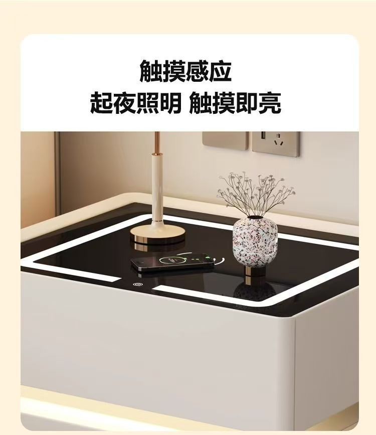 잠금 무선 블루투스 침대 옆 테이블이있는 현대적인 단단한 나무 침대 옆 바위 보드 램프가있는 스마트 서스펜션 캐비닛 침대 옆 보관 캐비닛스토어 가기