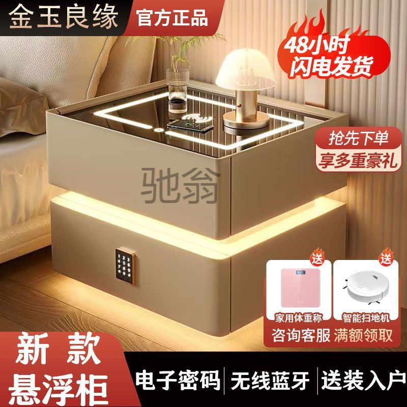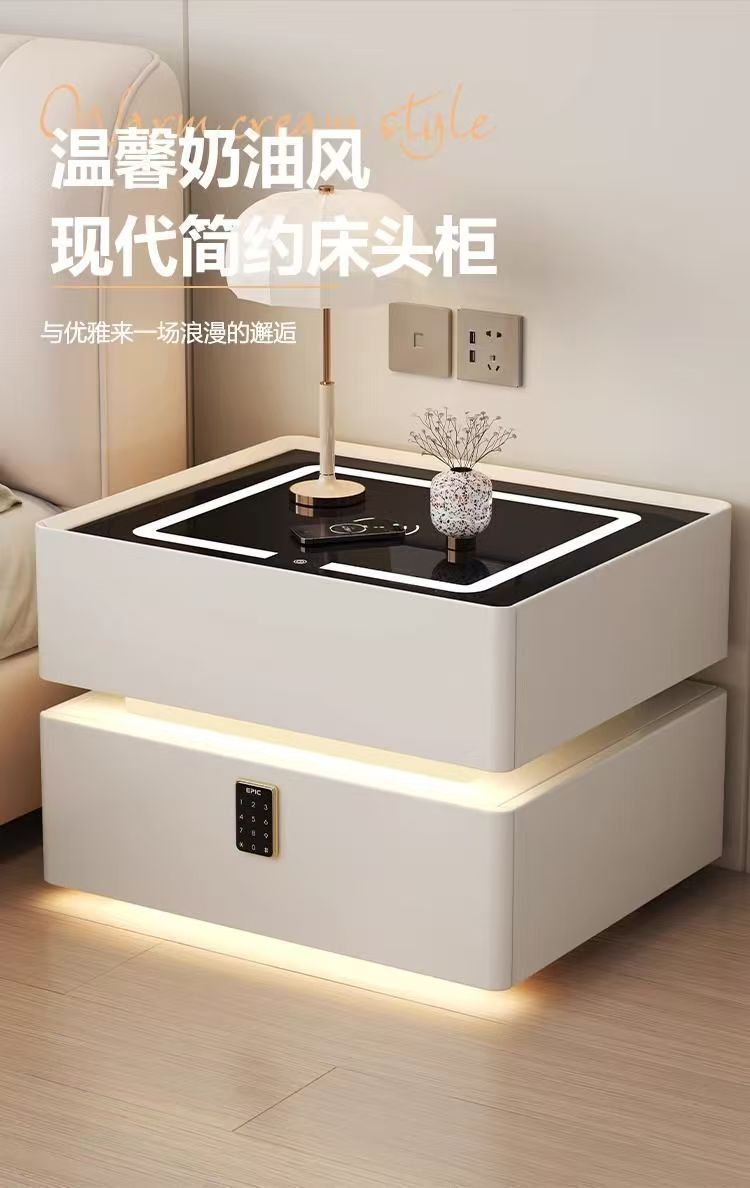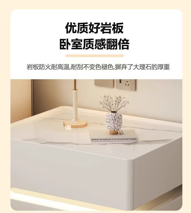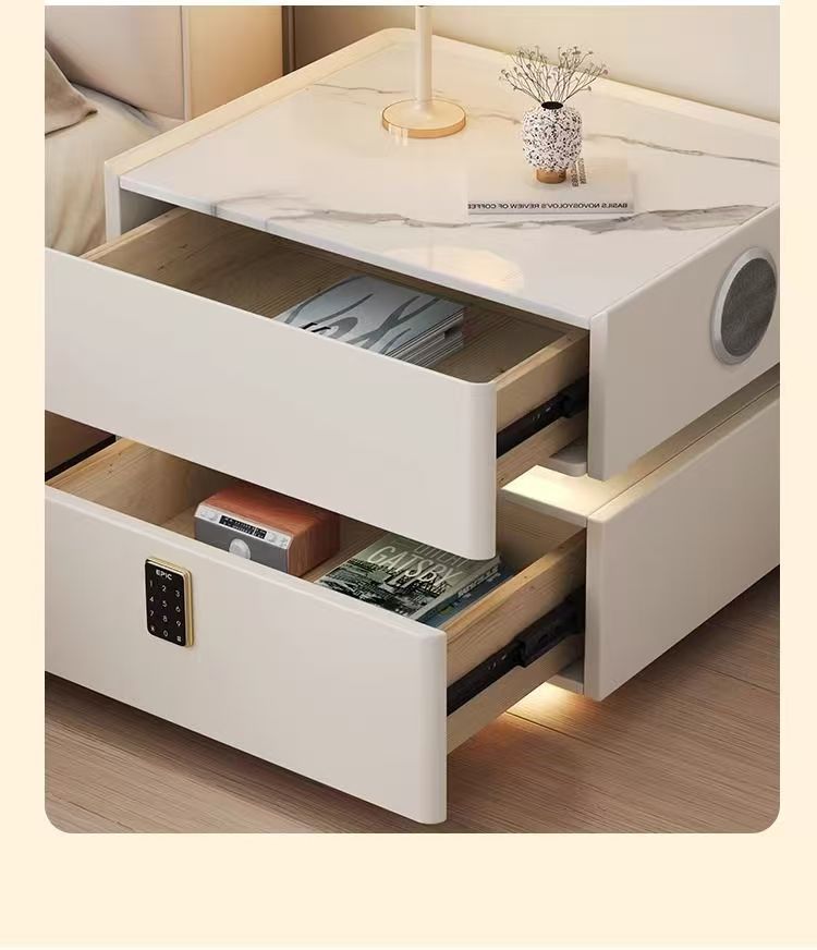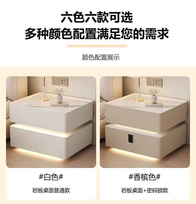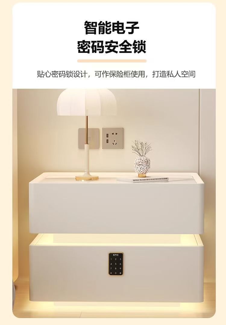 잠금 무선 블루투스 침대 옆 테이블이있는 현대적인 단단한 나무 침대 옆 바위 보드 램프가있는 스마트 서스펜션 캐비닛 침대 옆 보관 캐비닛