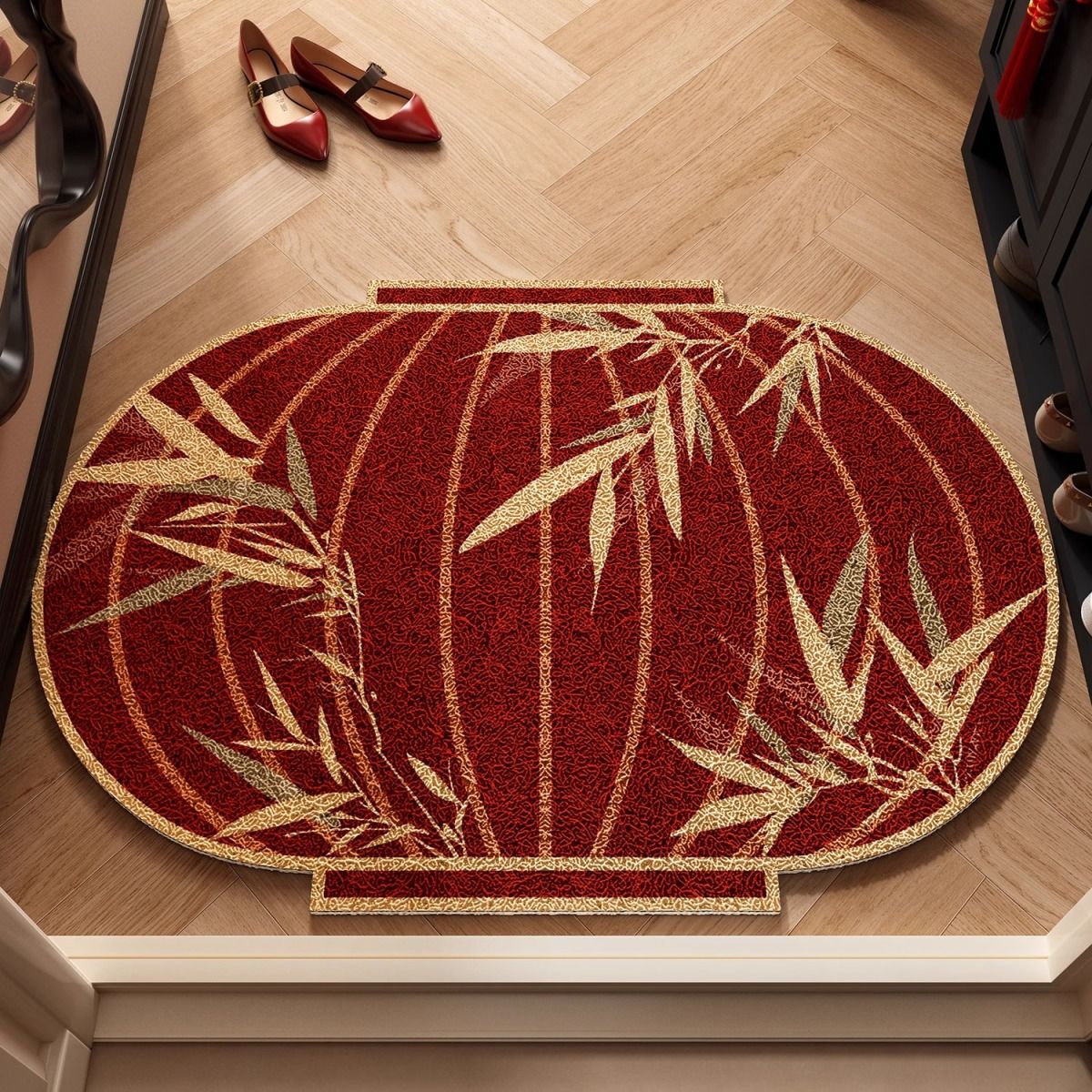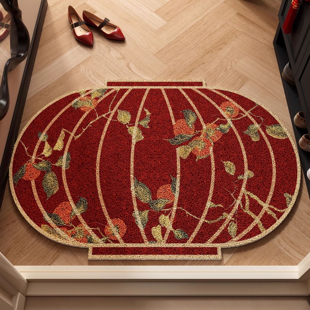 새로운 중국 랜턴 설날 플로어 매트는 내마모성 입구 레드 도어 매트 스크래핑 머드와 토핑 실크 링 입구 바닥 매트를 절단 할 수 있습니다.스토어 가기