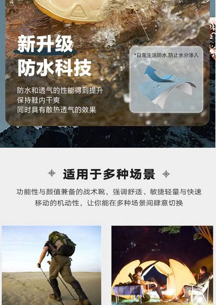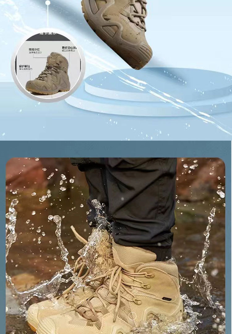 야외용 미드탑 방수 등산화, 남성용 및 여성용 펑크 방지 전술 부츠, 사막 부츠, 통기성, 미끄럼 방지, 내마모성, 하이킹 및 등산용