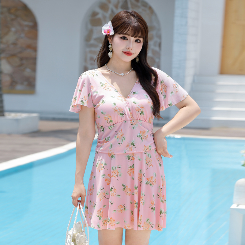 새로운 카드 플러스 사이즈 수영복 여성 통통녀 보수적 인 원피스 스커트 살을 가리는 슬리밍 배를 덮고있는 작은 신선한 꽃 수영복스토어 가기