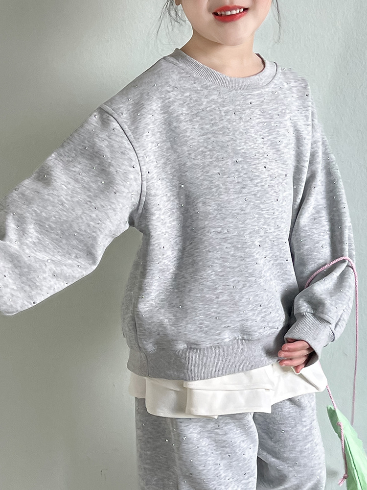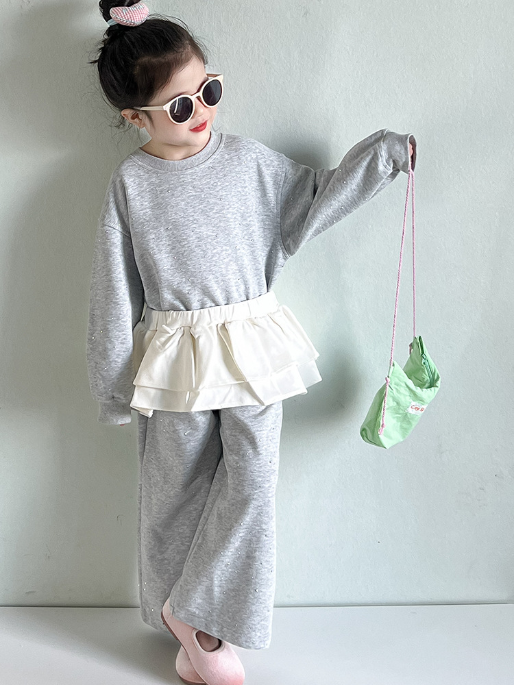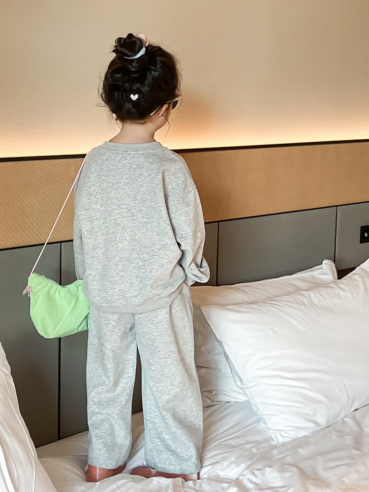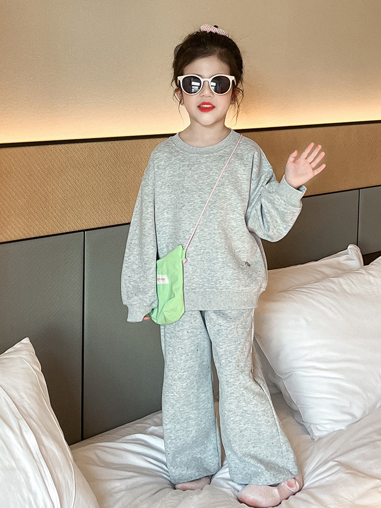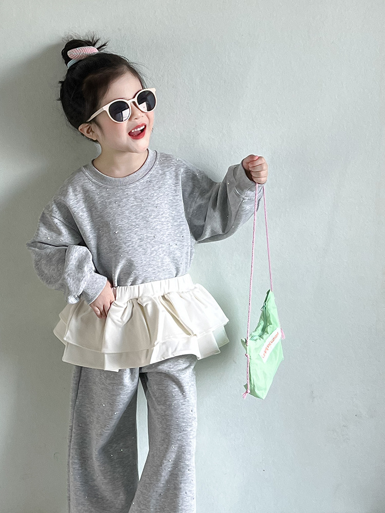 여자 라인 스톤 땀 캐주얼 바지 올 매치 그레이 투피스 세트 2025 봄 새로운 서양 스타일 짧은 치마 방귀 커튼 세트