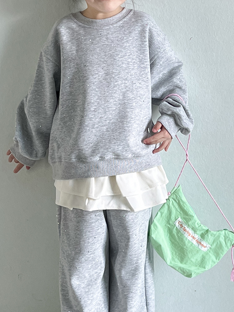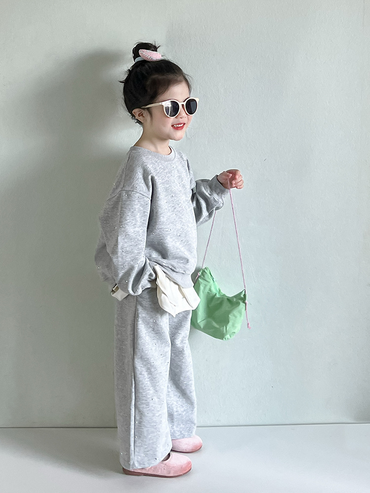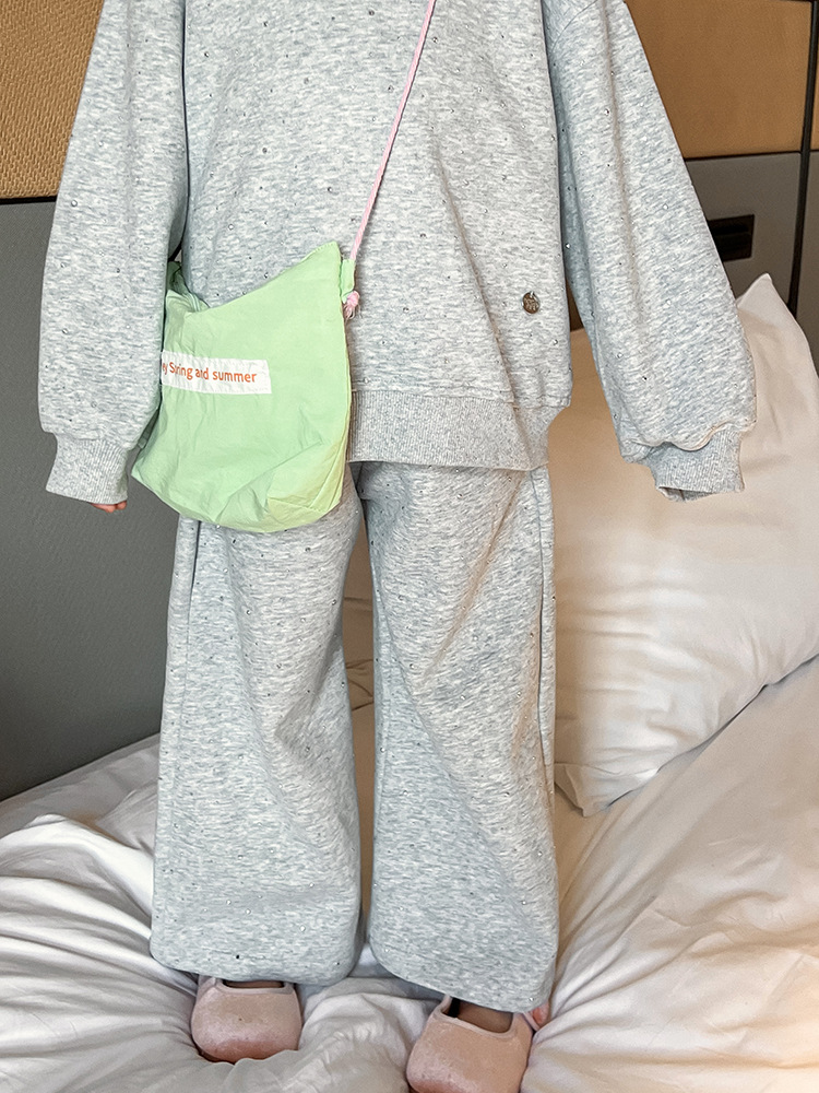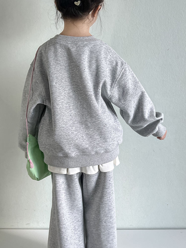 여자 라인 스톤 땀 캐주얼 바지 올 매치 그레이 투피스 세트 2025 봄 새로운 서양 스타일 짧은 치마 방귀 커튼 세트스토어 가기