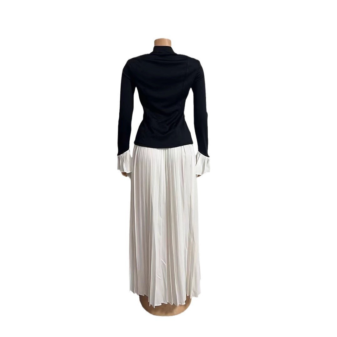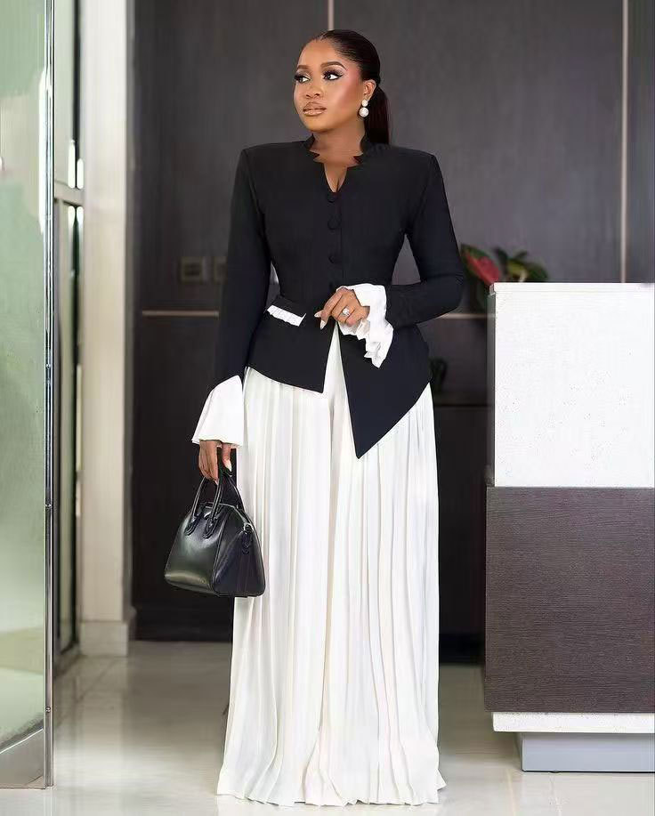 유럽과 미국의 여성 의류 아마존 크로스 보더 뉴 V 넥 긴팔 불규칙한 탑 느슨한 와이드 레그 팬츠 세트