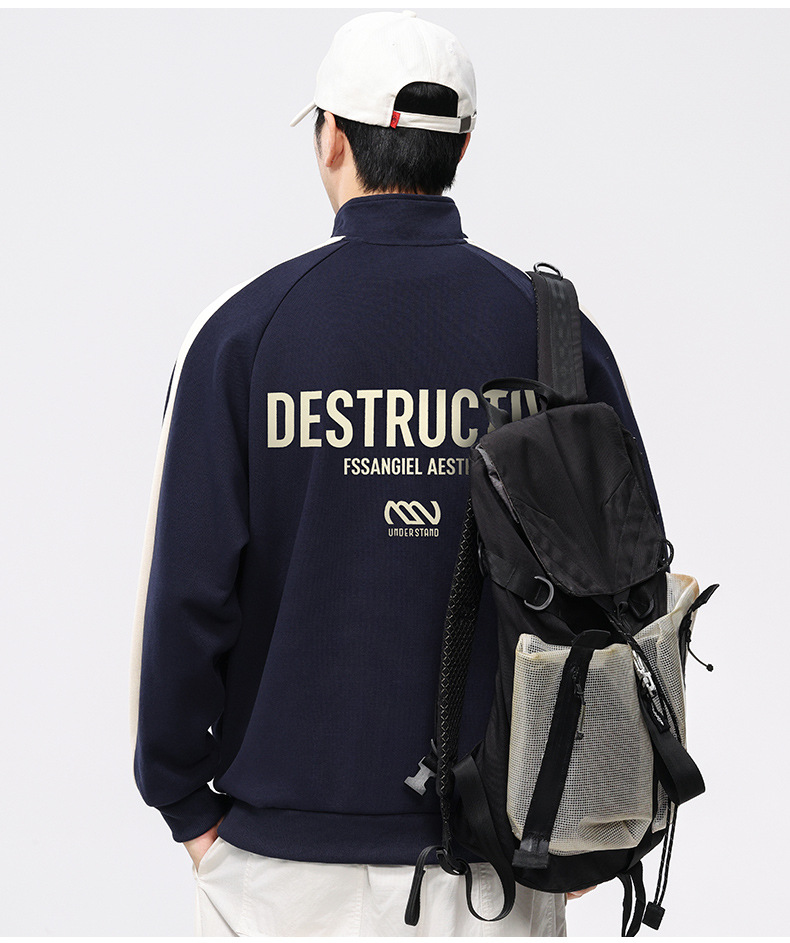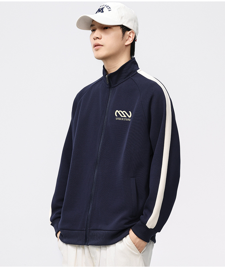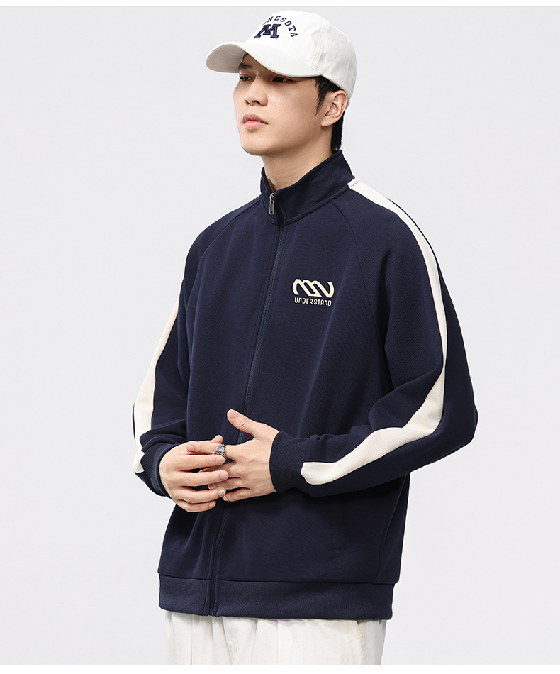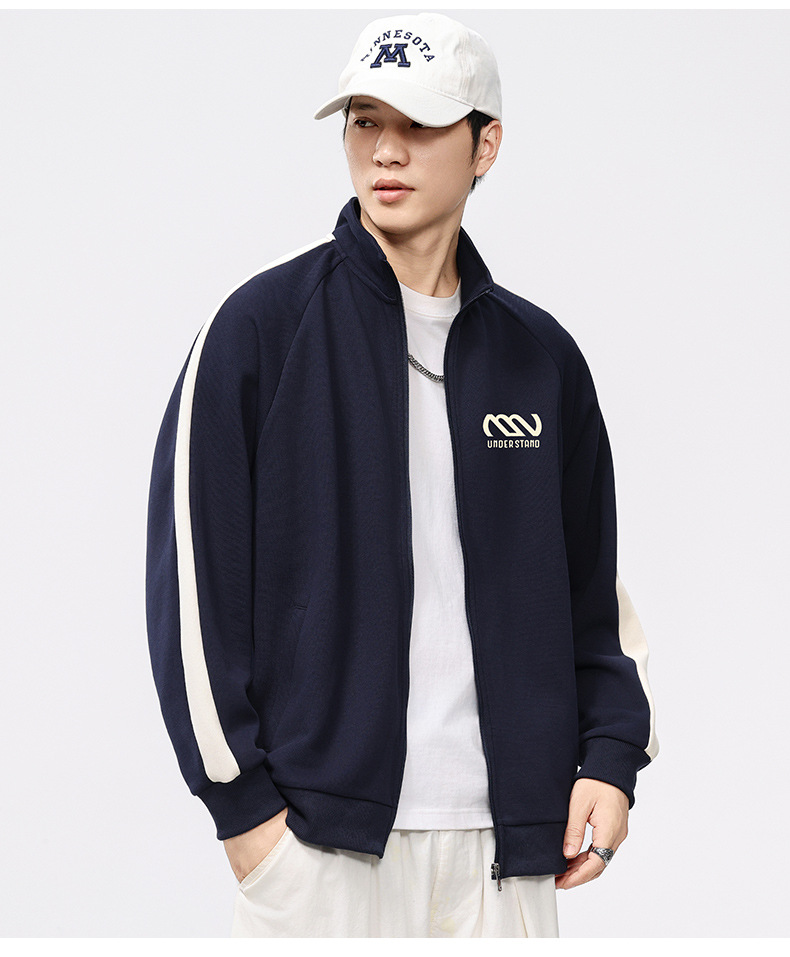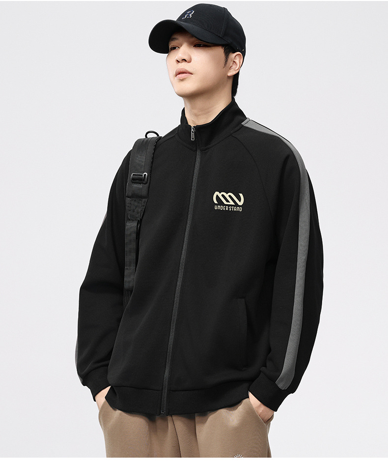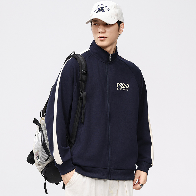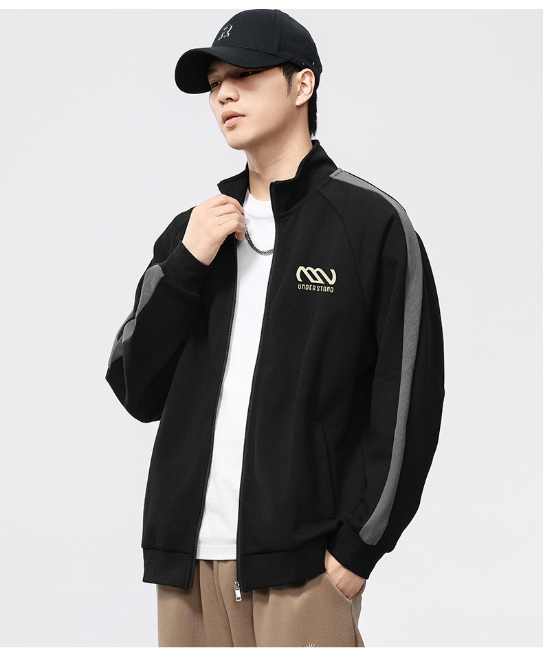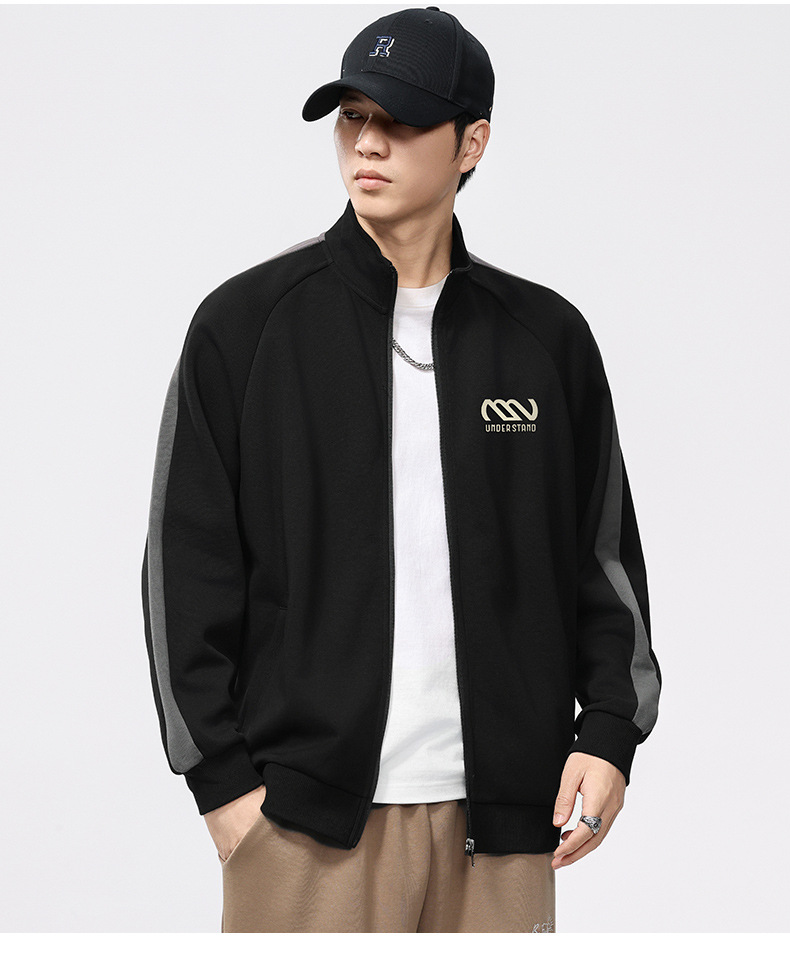 F2158 # 플러스 사이즈 남자 봄 새 330G 수직 목 카디건 재킷 남자의 느슨한 양각 대비 지퍼 스웨터스토어 가기