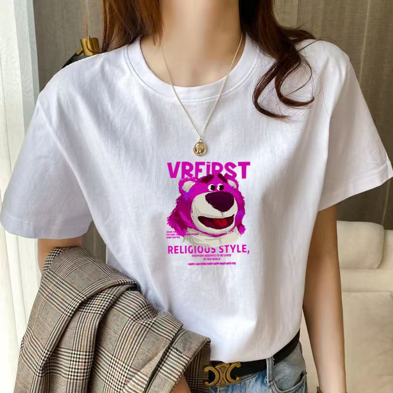 2024 년 여름 여성면 반소매 티셔츠 뉴 화이트 내부 한국 느슨한 반소매 탑 인 도매