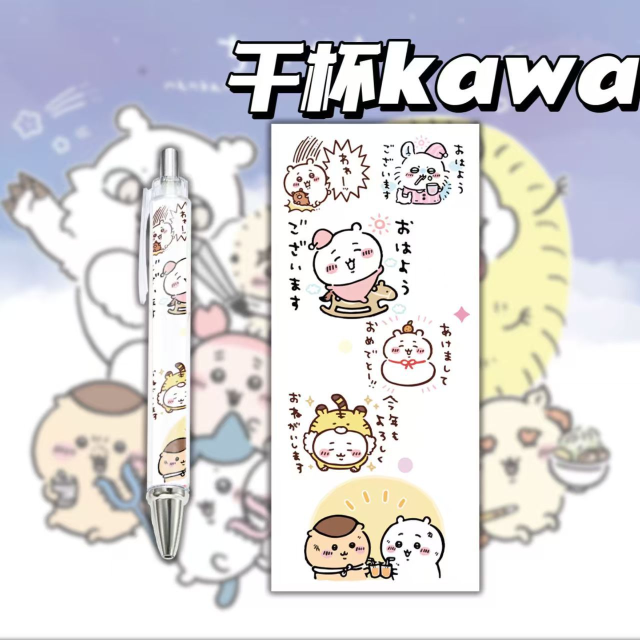 새로운 Jiyka Wow chiikawa 작은 빨간 승마 책 프레스 펜 바람 젤 펜 학생 브러쉬 0.5 롤 종이 펜