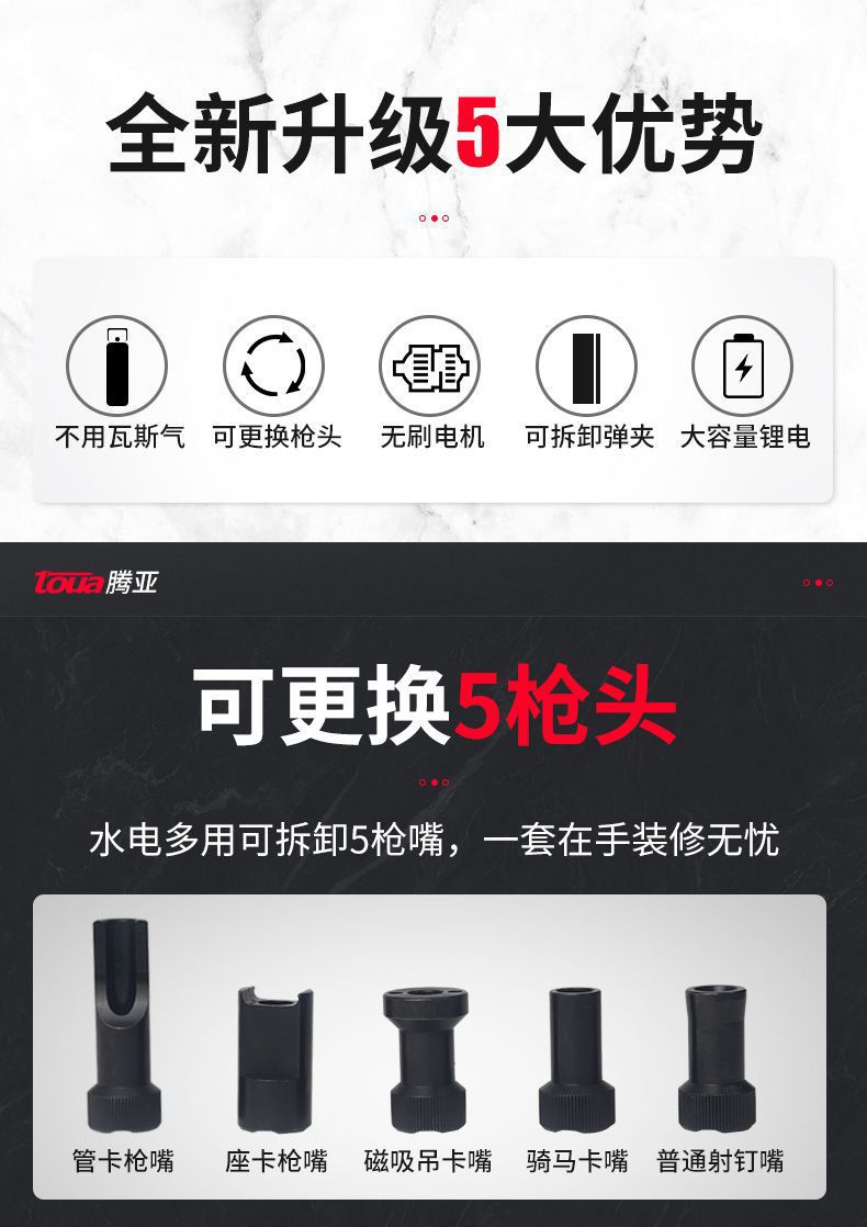 새로운 순수 리튬 전기 총 전기 네일 건 콘크리트 네일 건 수력 목재 문 및 창문 리튬 배터리 강철 네일 건 접지 드릴