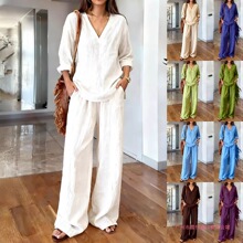 2025년 유럽 및 미국 봄 여름 해외 무역 독립 사이트 캐주얼 투피스 여성복 아마존 프린트 세트