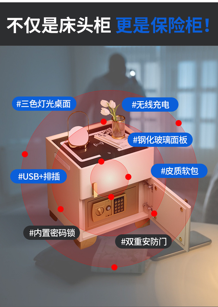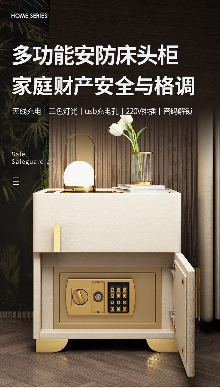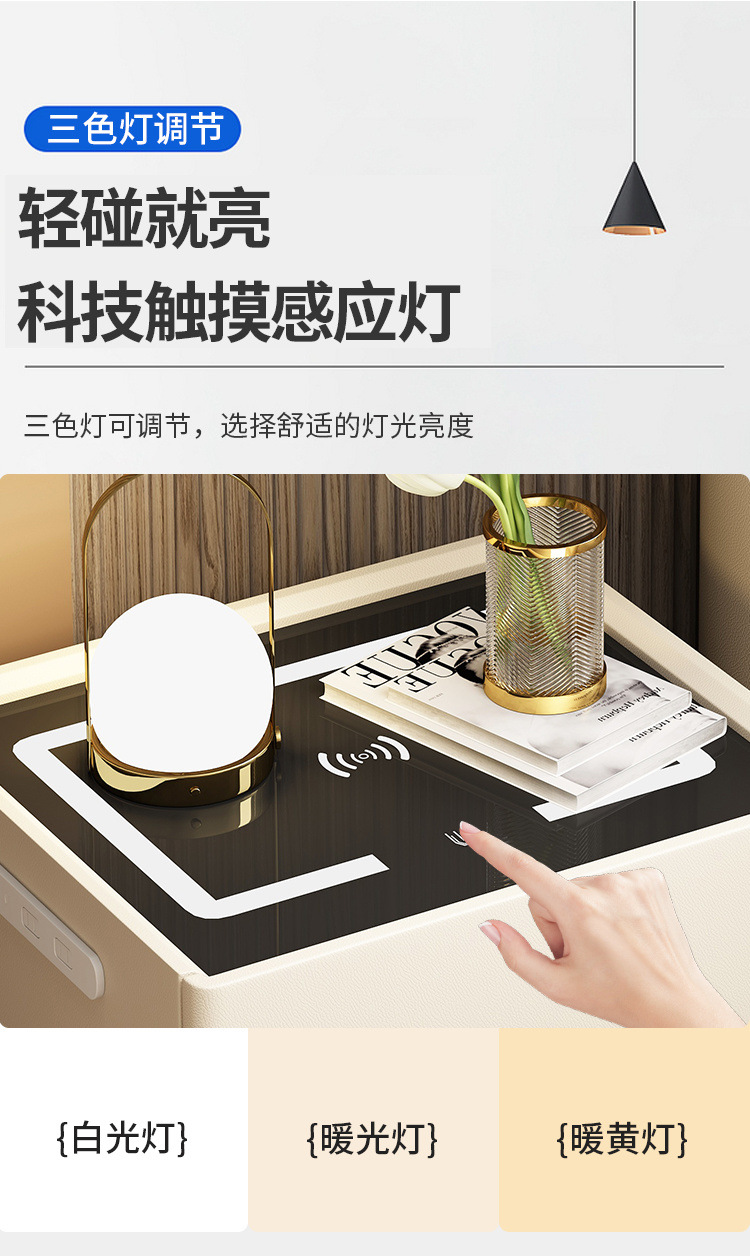 침실 스마트 침대 테이블 보이지 않는 홈 올인원 안전 무선 충전 라이트 럭셔리 블루투스 스피커 코드 잠금 캐비닛