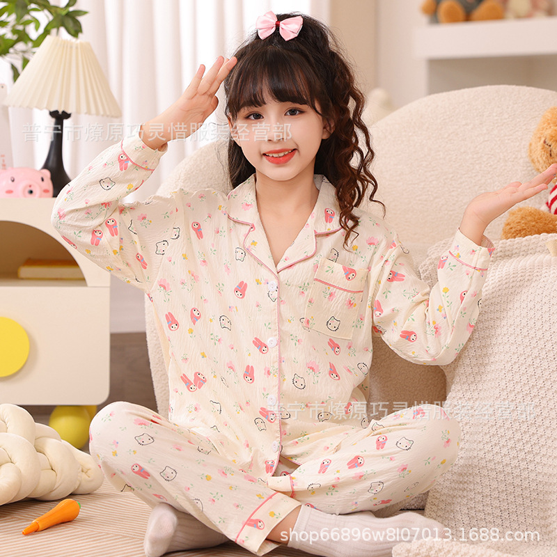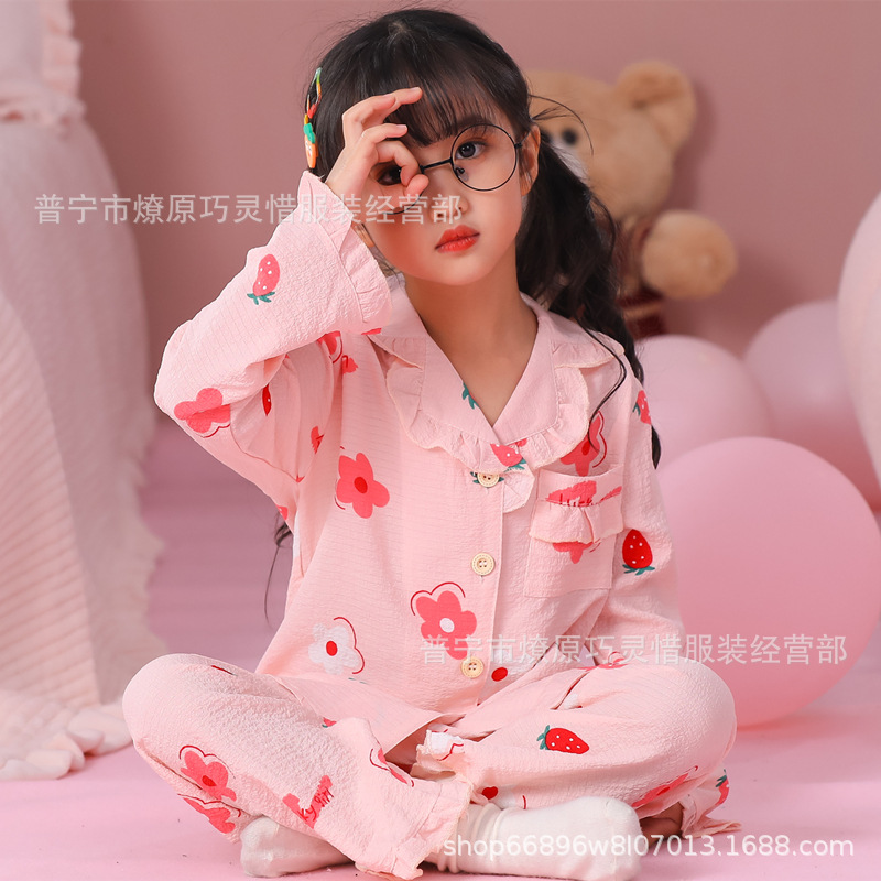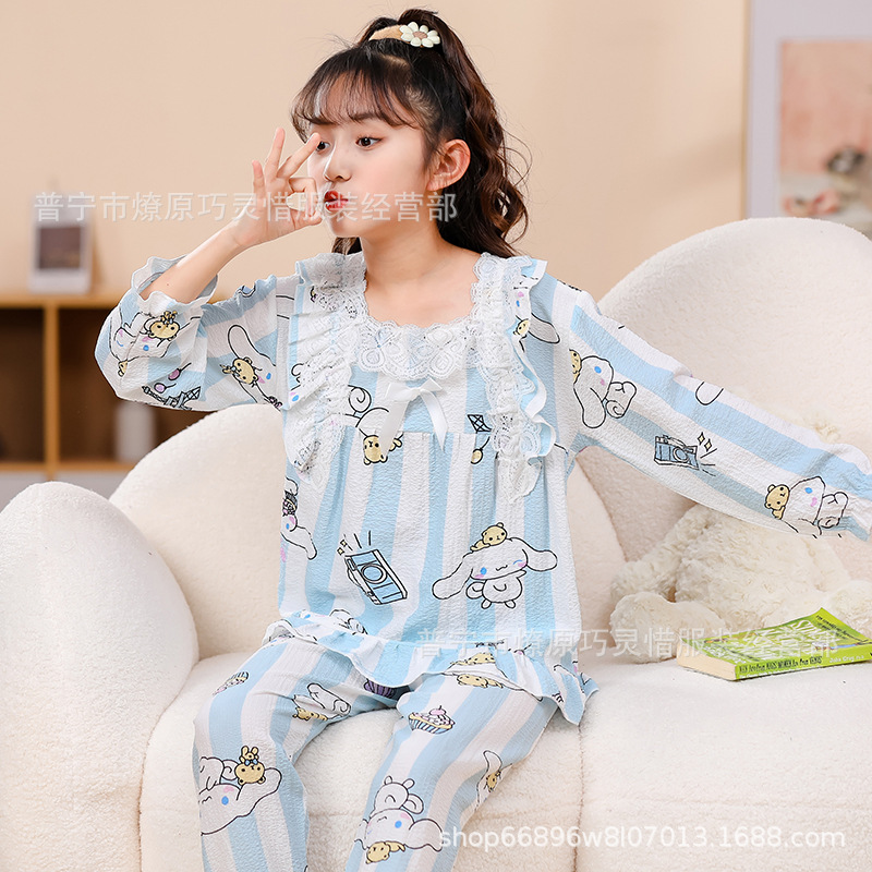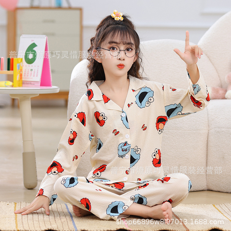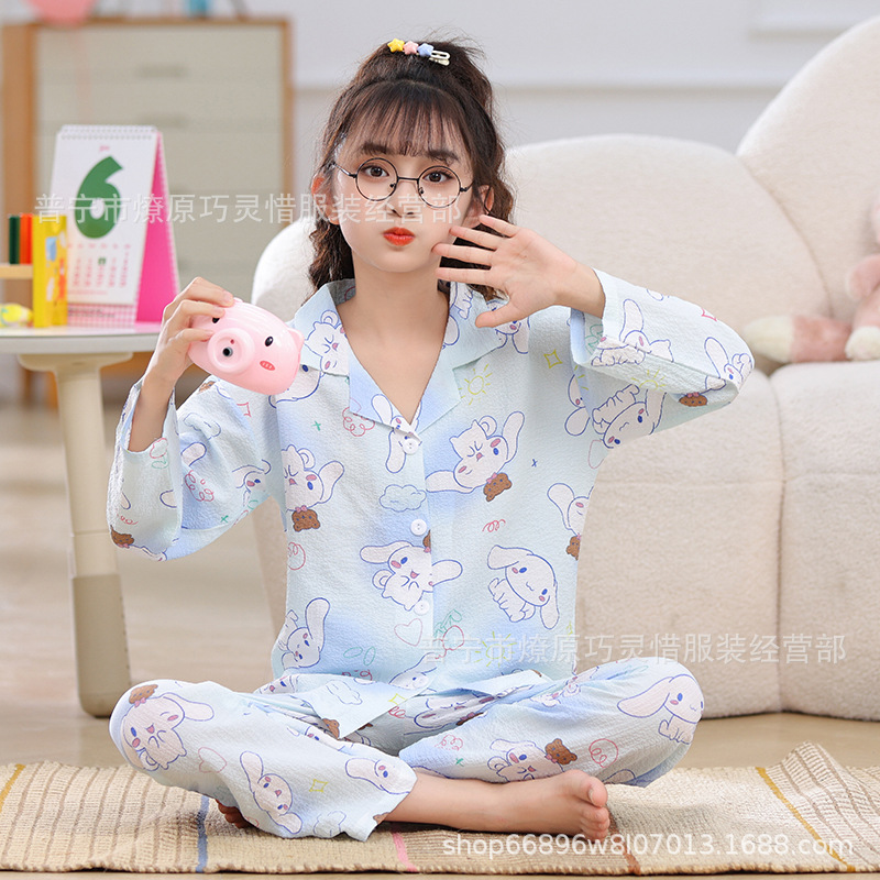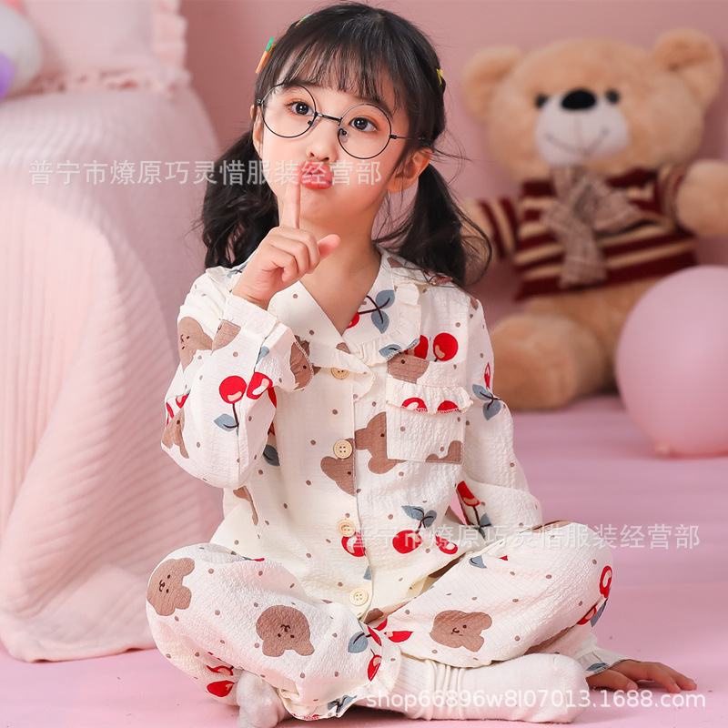 소녀 잠옷 어린이 봄과 가을 만화 넝마 버블 코튼 얇은 긴 소매 귀여운 중형 및 대형 어린이 가정 옷스토어 가기