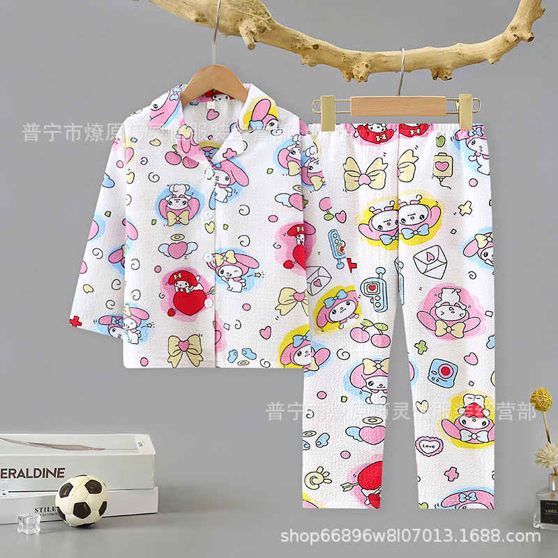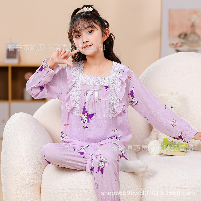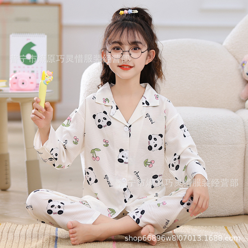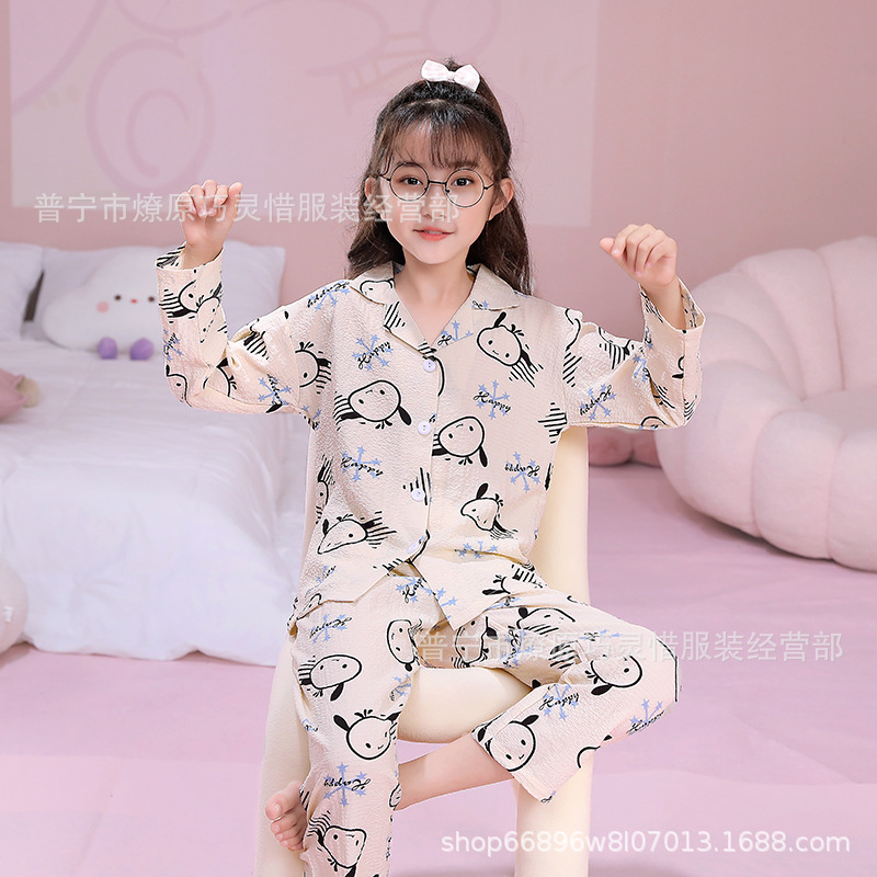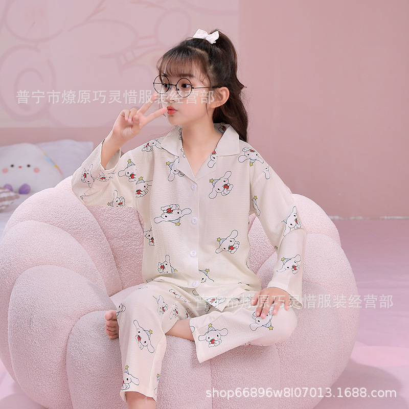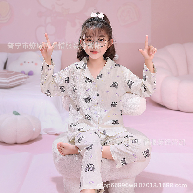 소녀 잠옷 어린이 봄과 가을 만화 넝마 버블 코튼 얇은 긴 소매 귀여운 중형 및 대형 어린이 가정 옷스토어 가기