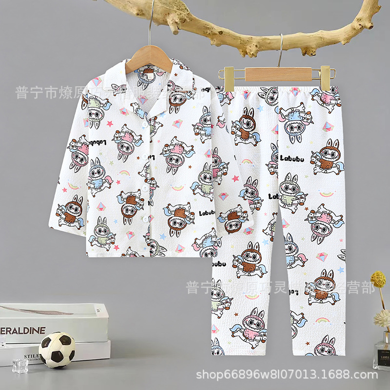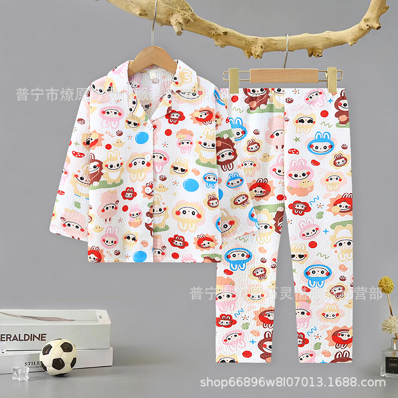 소녀 잠옷 어린이 봄과 가을 만화 넝마 버블 코튼 얇은 긴 소매 귀여운 중형 및 대형 어린이 가정 옷