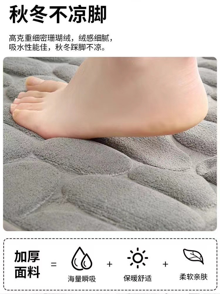 가정용 욕실 바닥 매트 조약돌 화장실 흡수성 발 매트 제조 업체는 관리하기 쉬운 산호 양털 빠른 건조 발 매트 공급스토어 가기