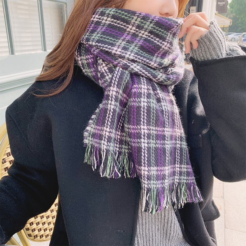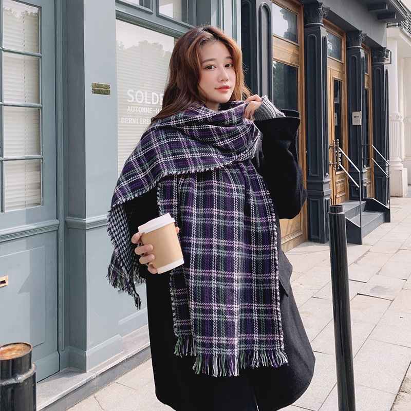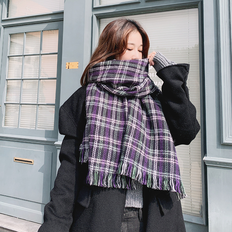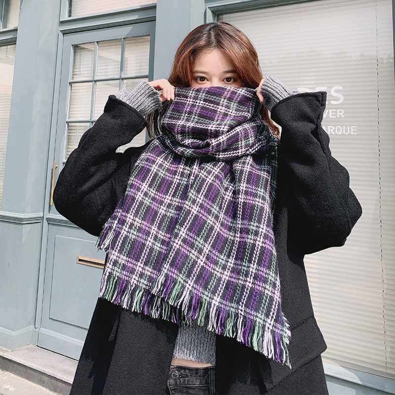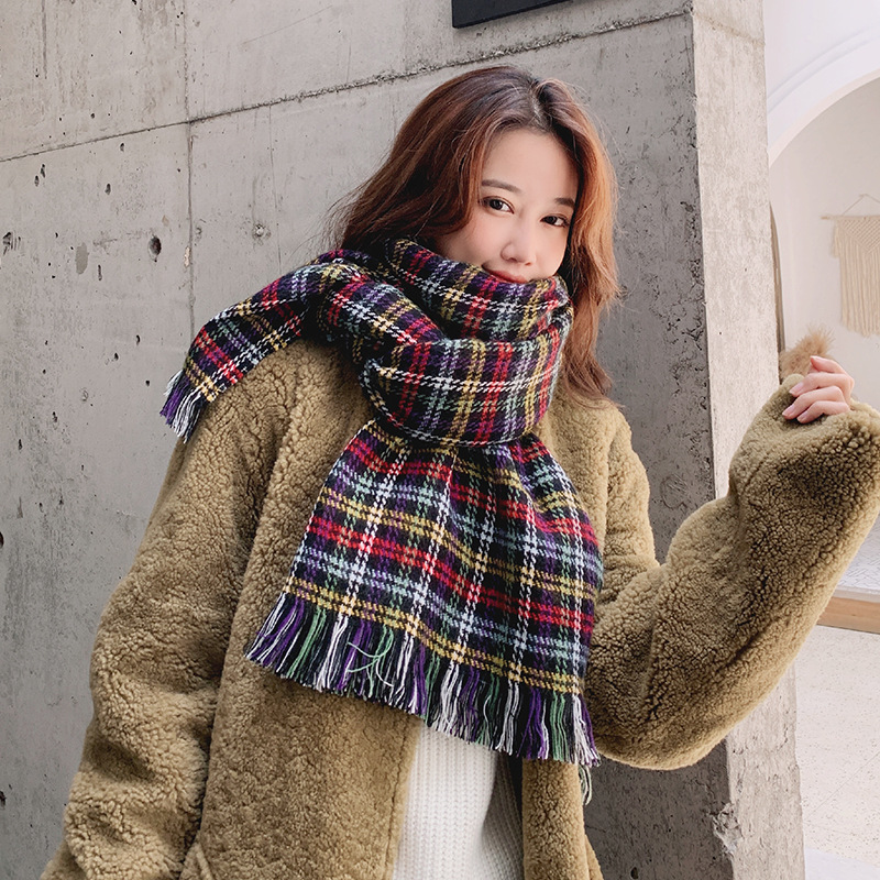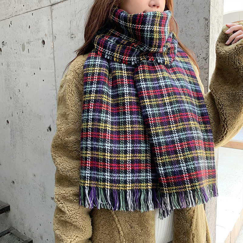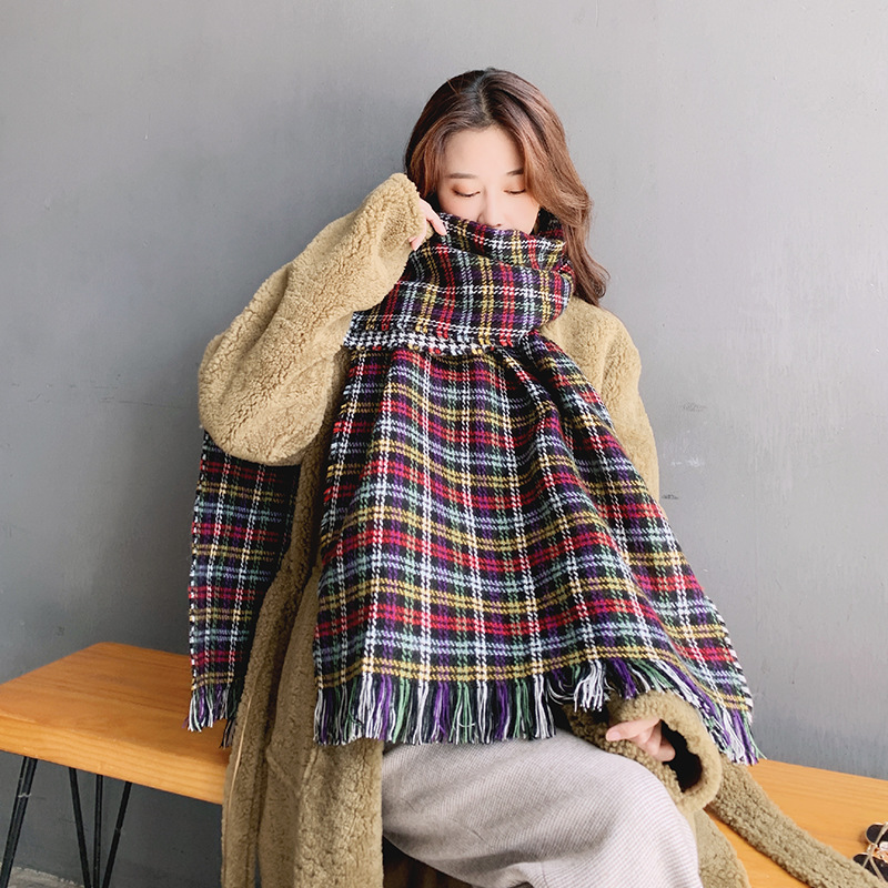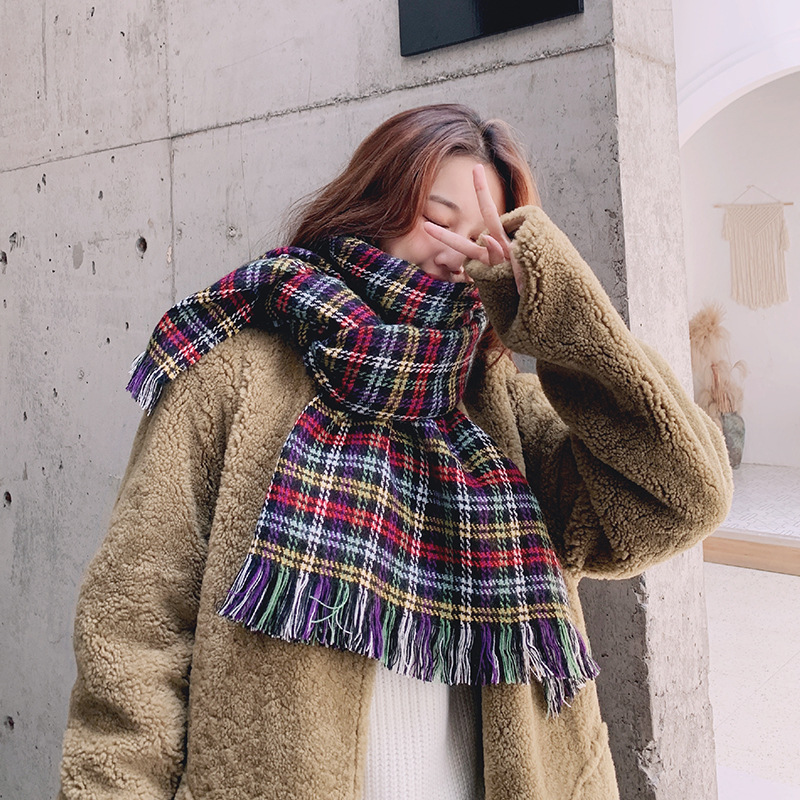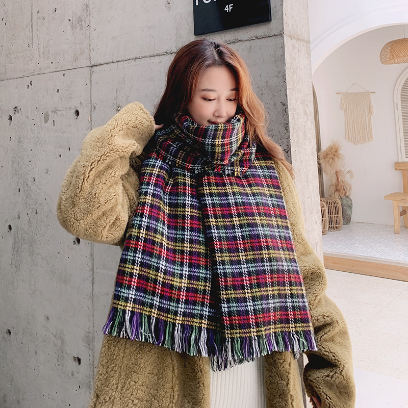 분위기 새해 붉은 격자 무늬 레트로 스카프 여자 가을 겨울 한국식 올매치 따뜻한 목 커플 목도리