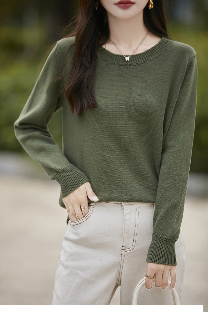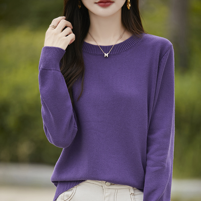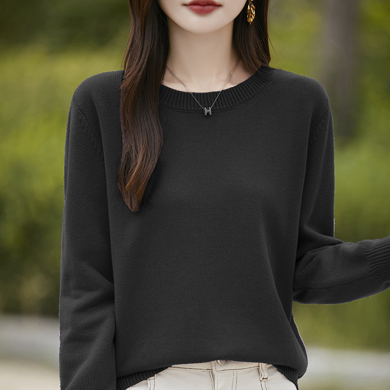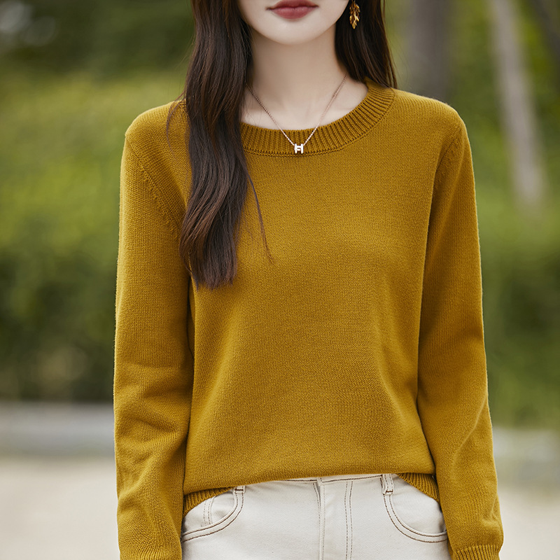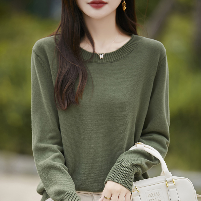 도매 100 면 크루 넥 조커 스웨터 여성 가을 및 겨울 새로운 풀오버 느슨한 슬림 니트 베이스 셔츠 여성용 탑스토어 가기