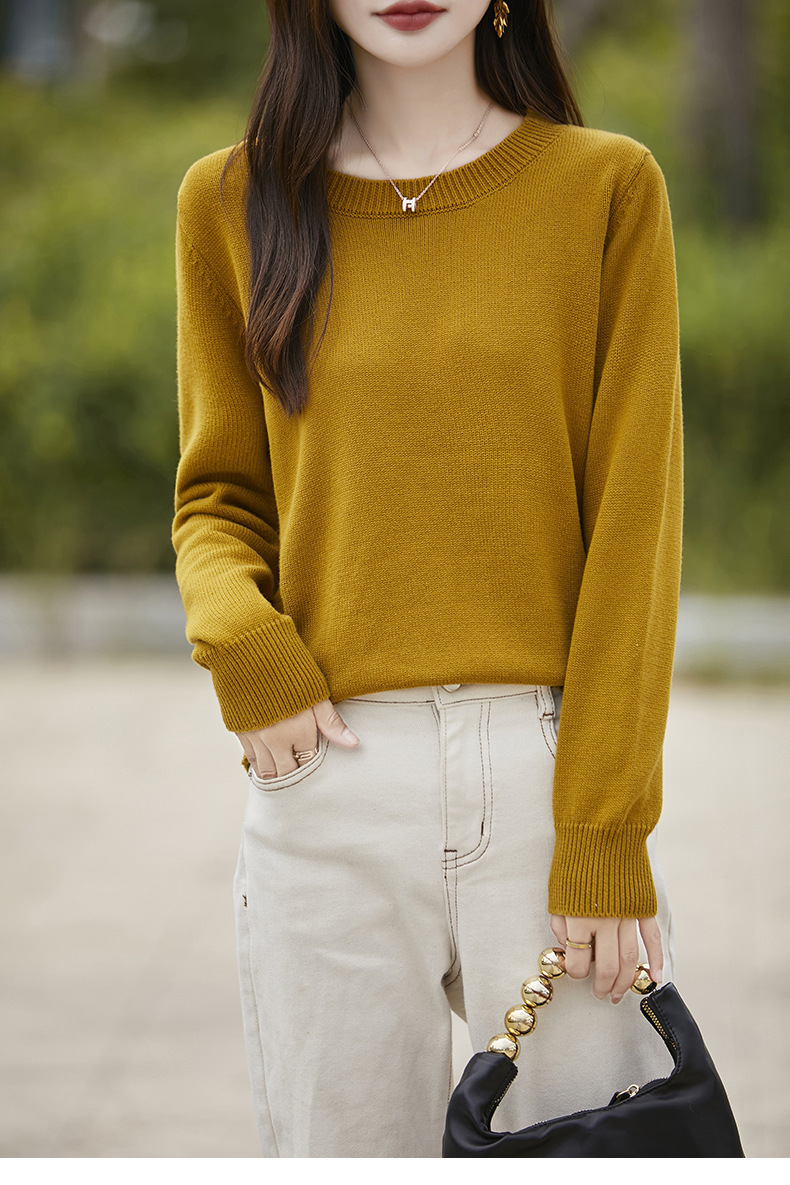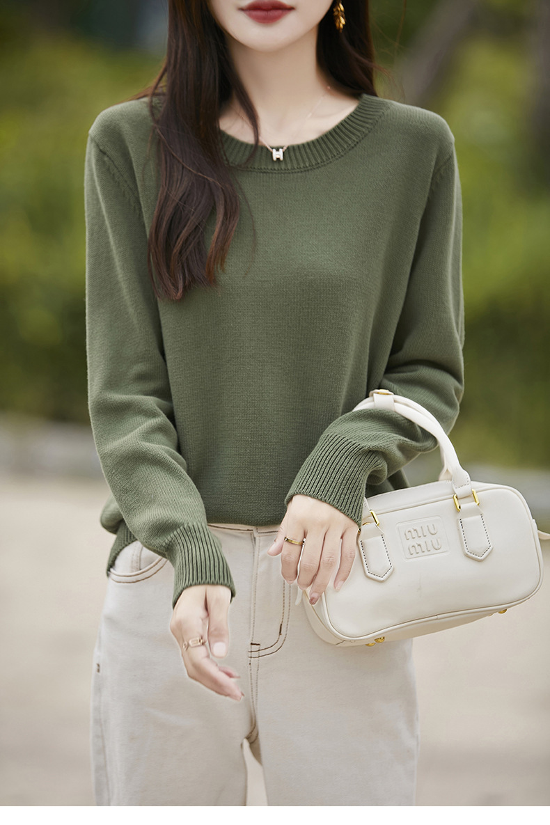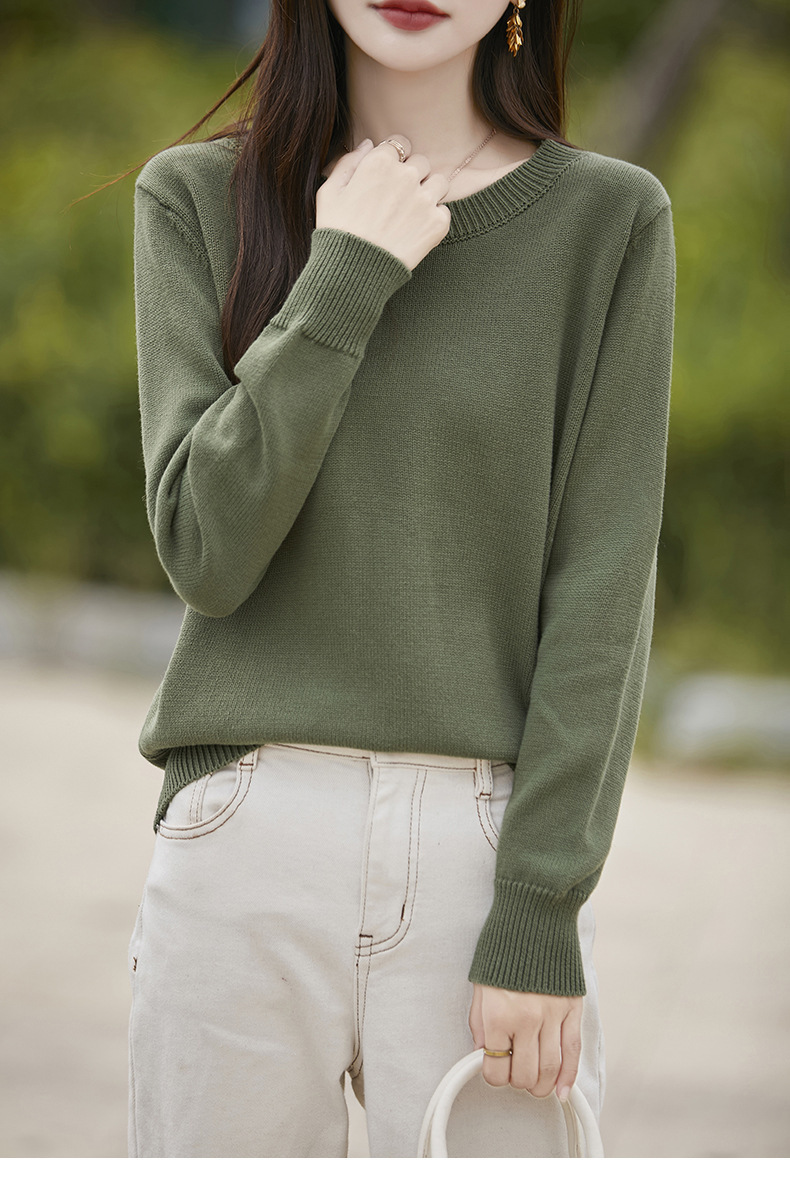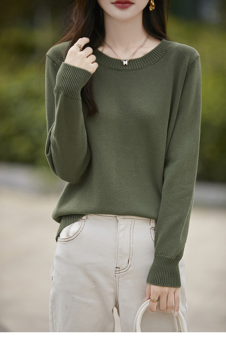 도매 100 면 크루 넥 조커 스웨터 여성 가을 및 겨울 새로운 풀오버 느슨한 슬림 니트 베이스 셔츠 여성용 탑스토어 가기
