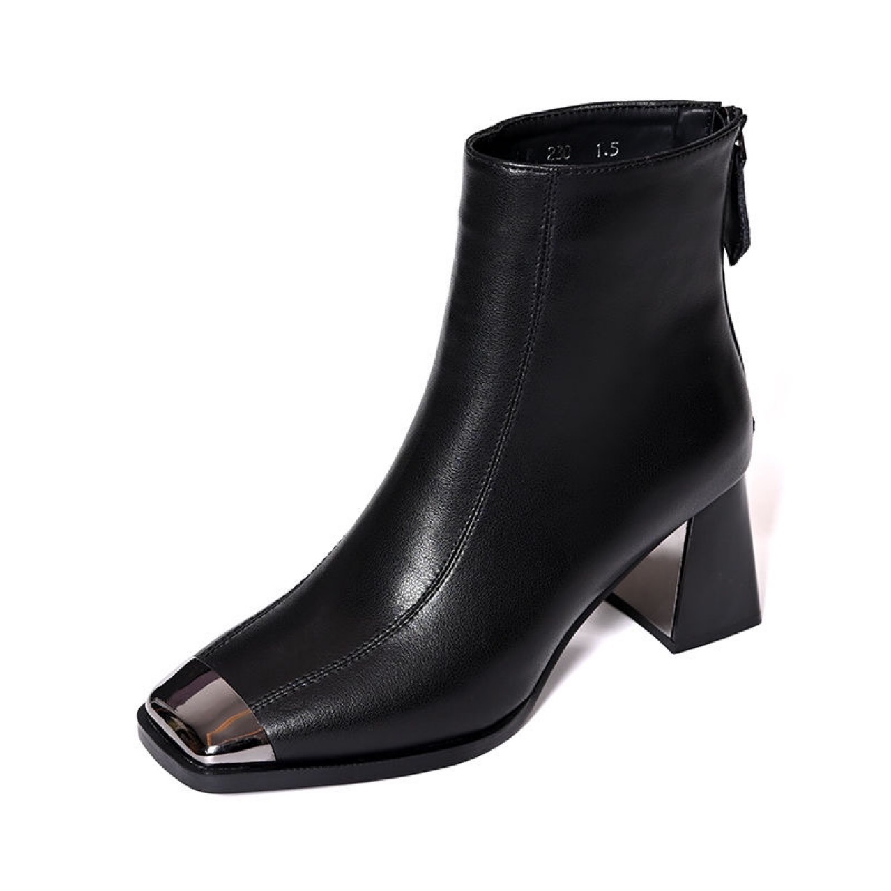 여성용 스퀘어토 하이힐 숏부츠 2025 신상 가을 겨울 굵은 굽 천연 가죽 여성화 부드러운 가죽 미니 부츠 중간 굽 마틴 부츠스토어 가기