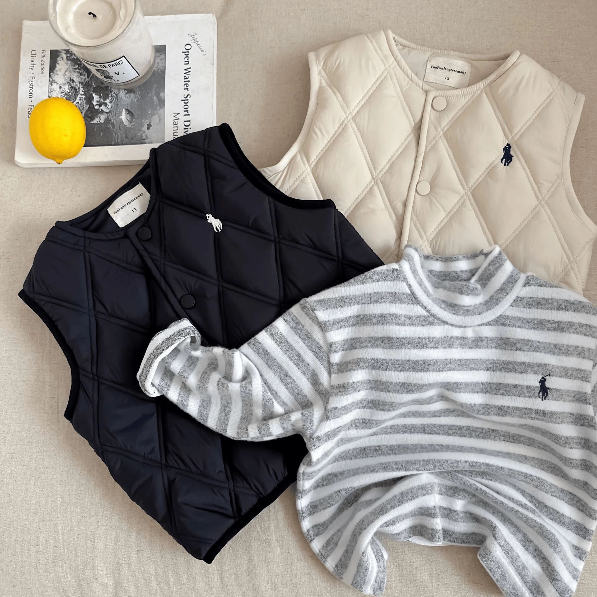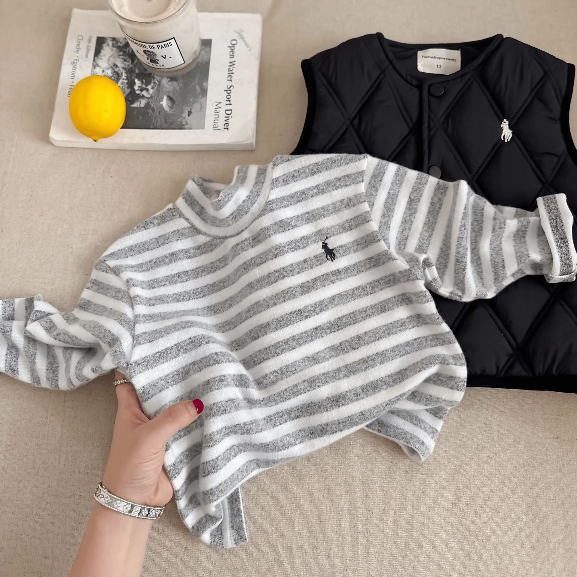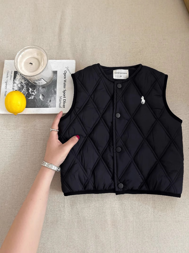 한국 스타일 아동복 유아 및 어린이 더블 라인 조끼 2025 가을, 겨울 새로운 스타일 소년과 소녀 자수 유행 브랜드 조끼 아기 조끼