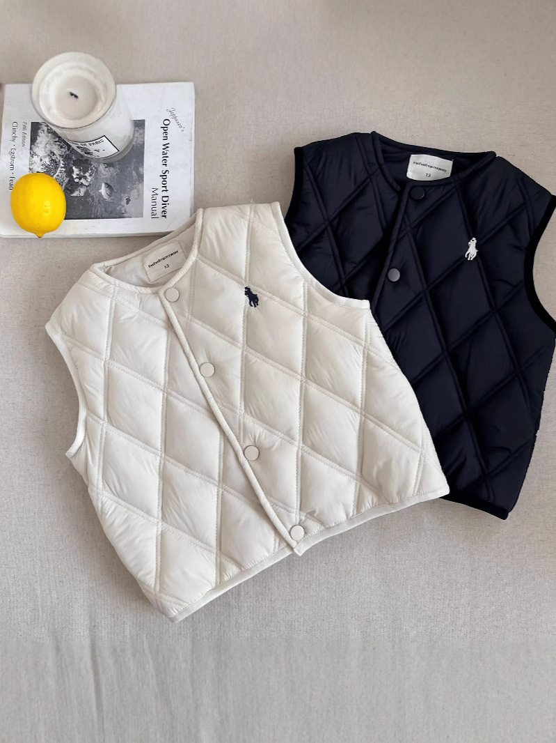 한국 스타일 아동복 유아 및 어린이 더블 라인 조끼 2025 가을, 겨울 새로운 스타일 소년과 소녀 자수 유행 브랜드 조끼 아기 조끼스토어 가기