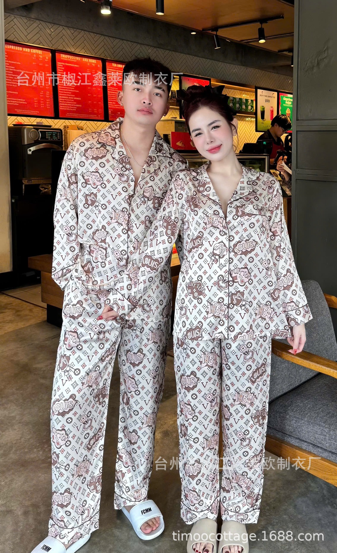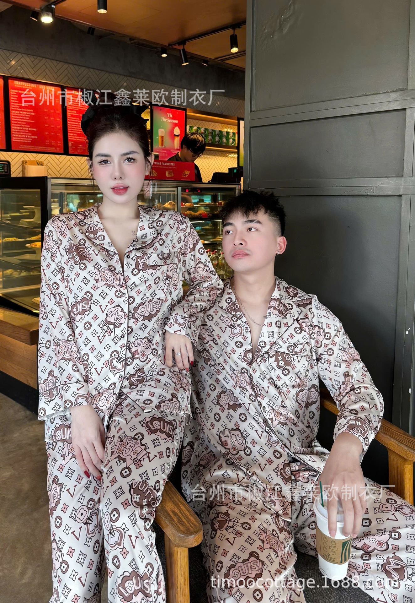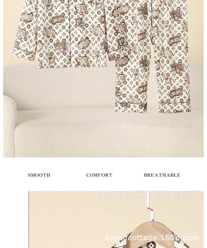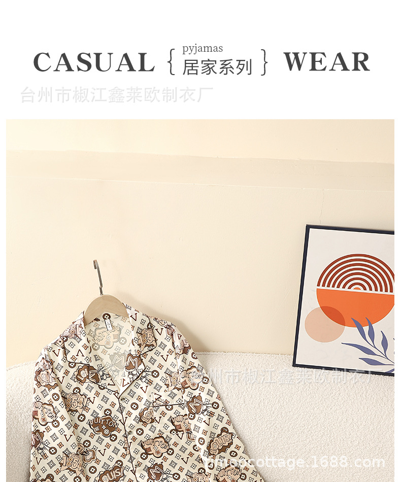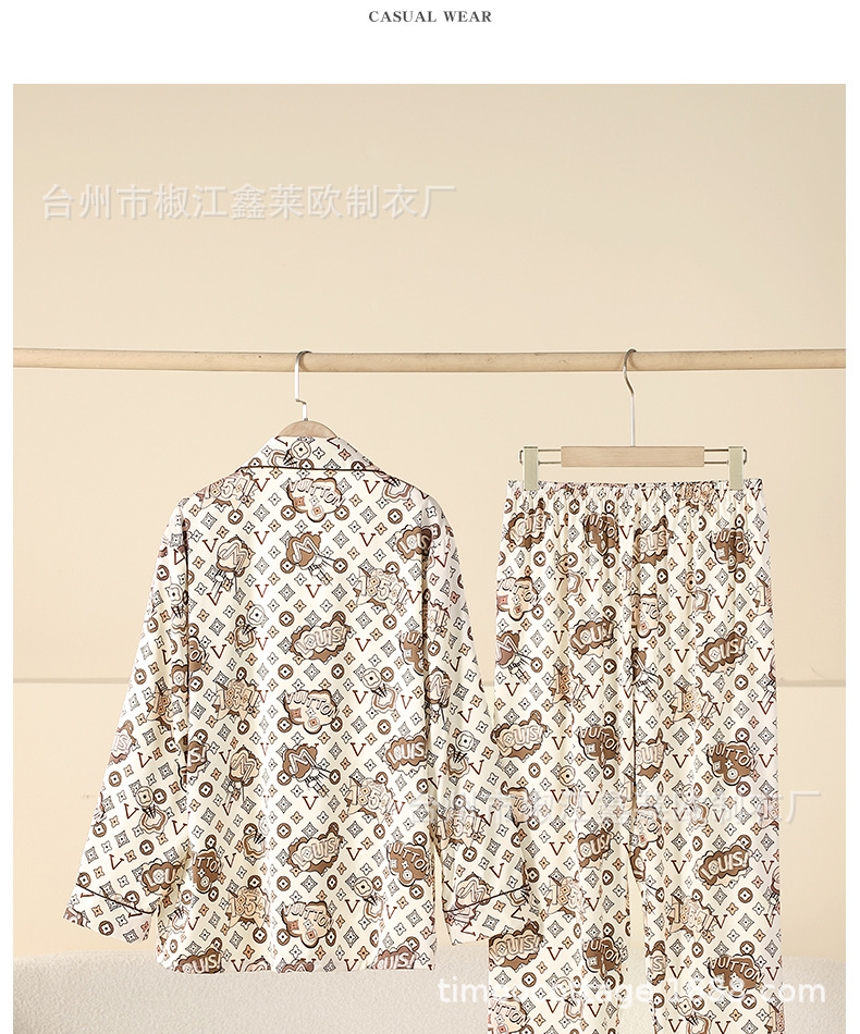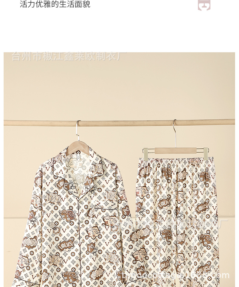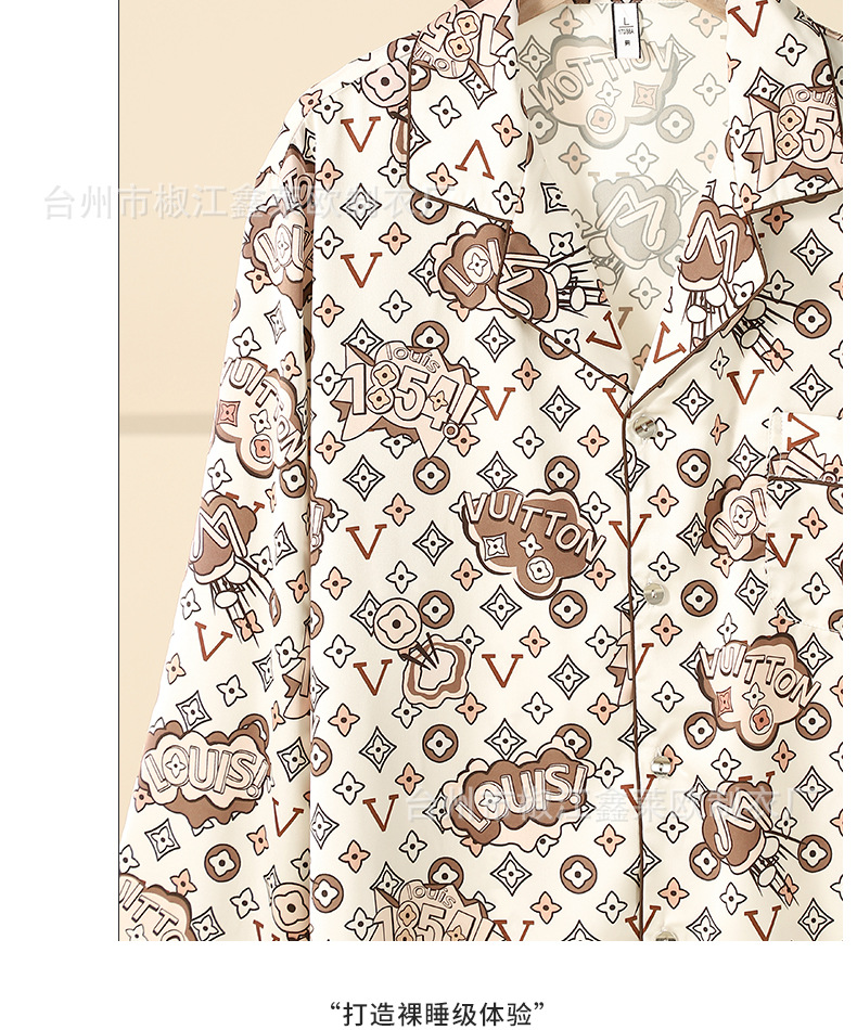 새로운 커플 아이스 실크 파자마 L 홈 라이트 럭셔리 V-넥 포켓 에디션 실크 남자와 여자의 긴 소매 세트 외부 옷을 입고스토어 가기