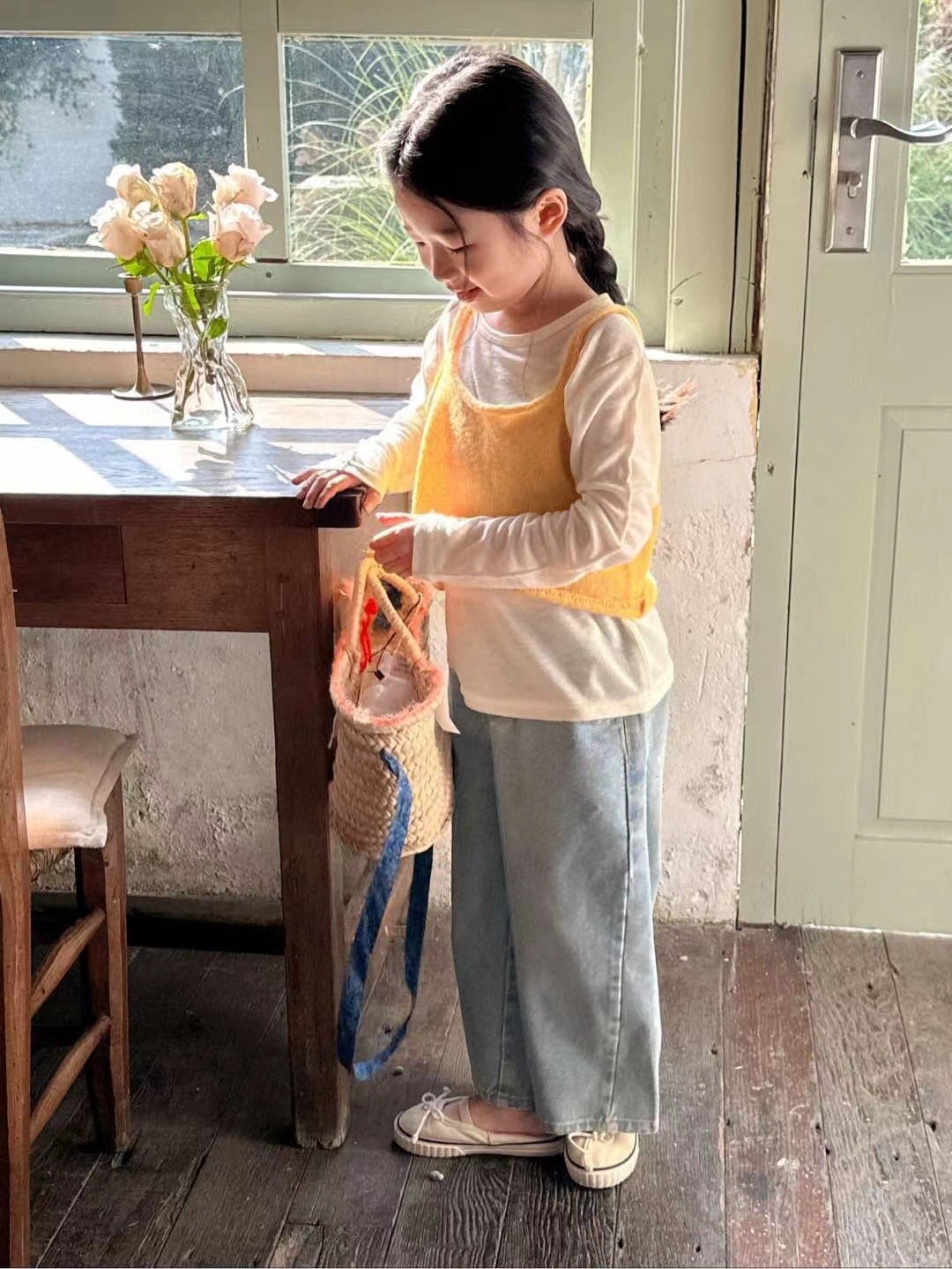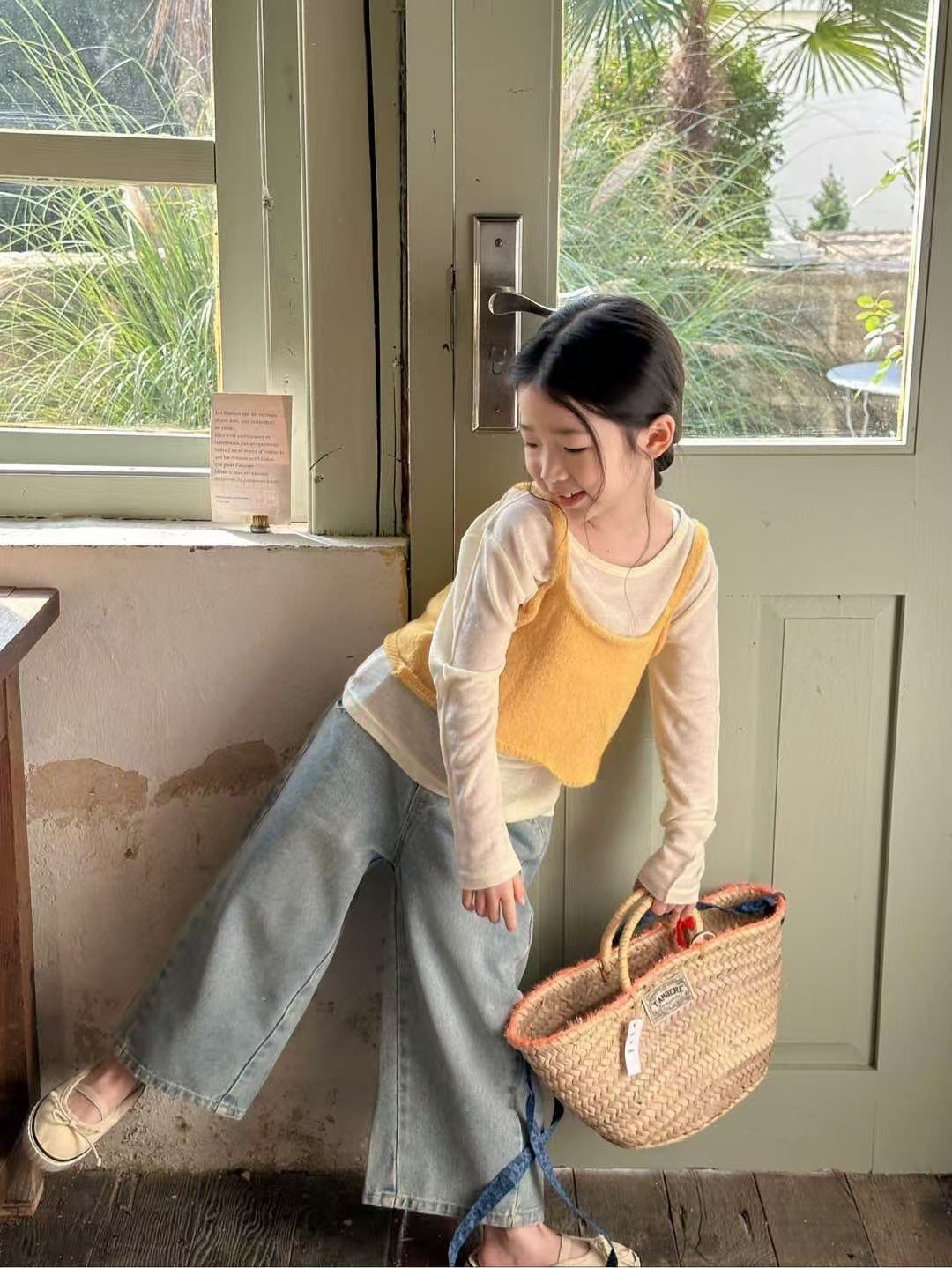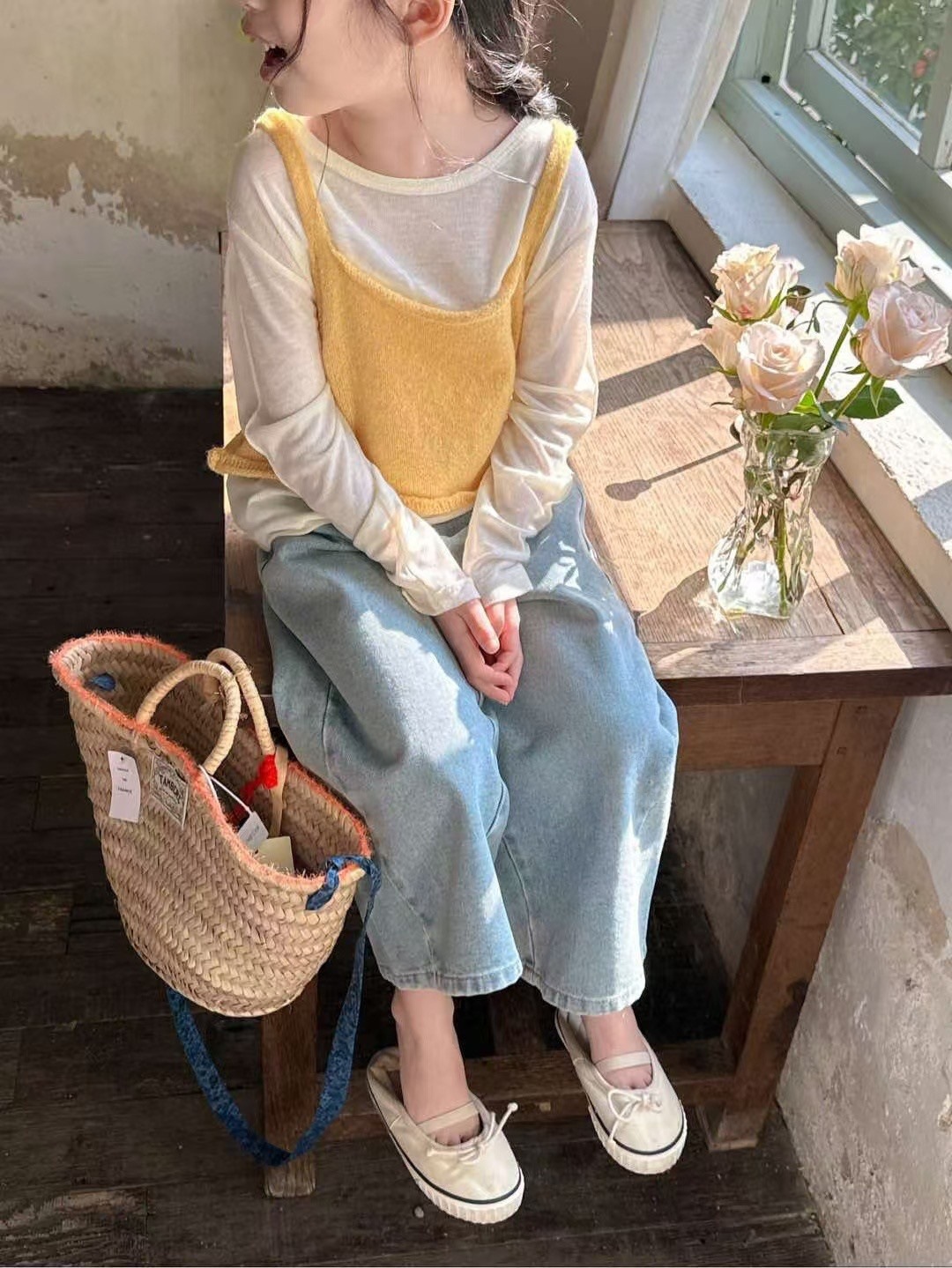 한국 아동복 2025 봄 새 소년과 소녀 한국 스타일 느슨한 청바지 어린이 편안한 스트레이트 라이트 컬러 바지스토어 가기